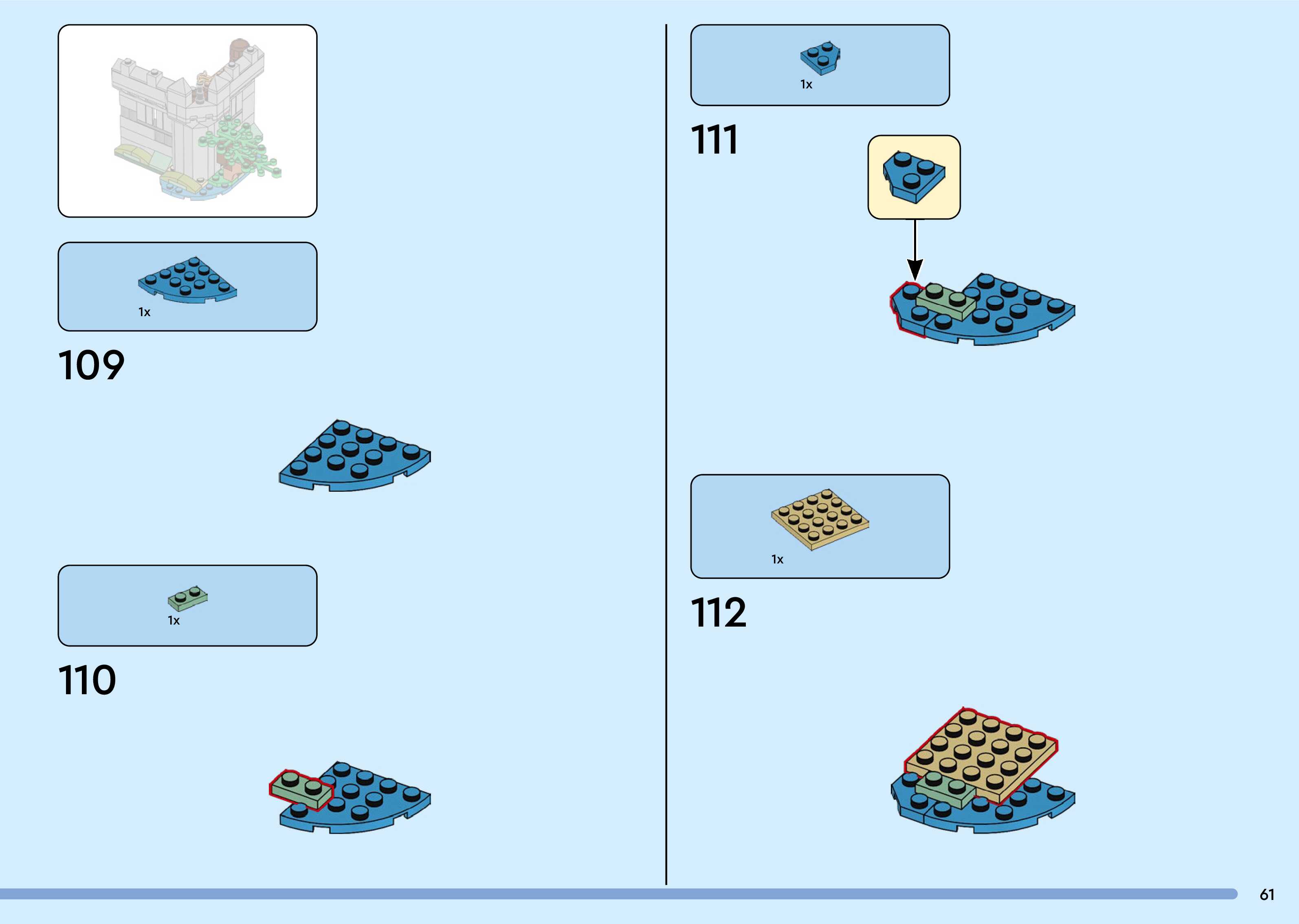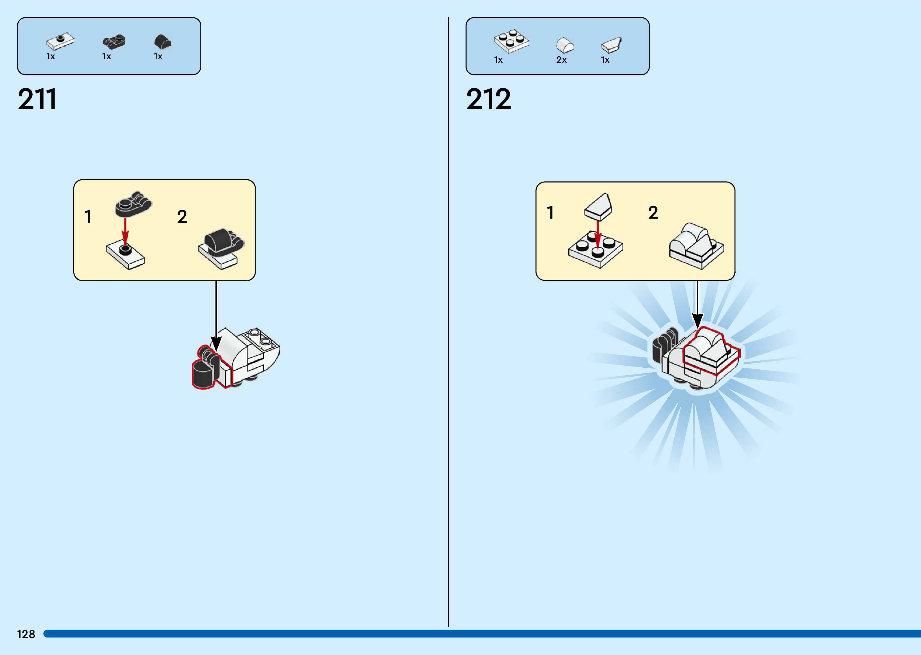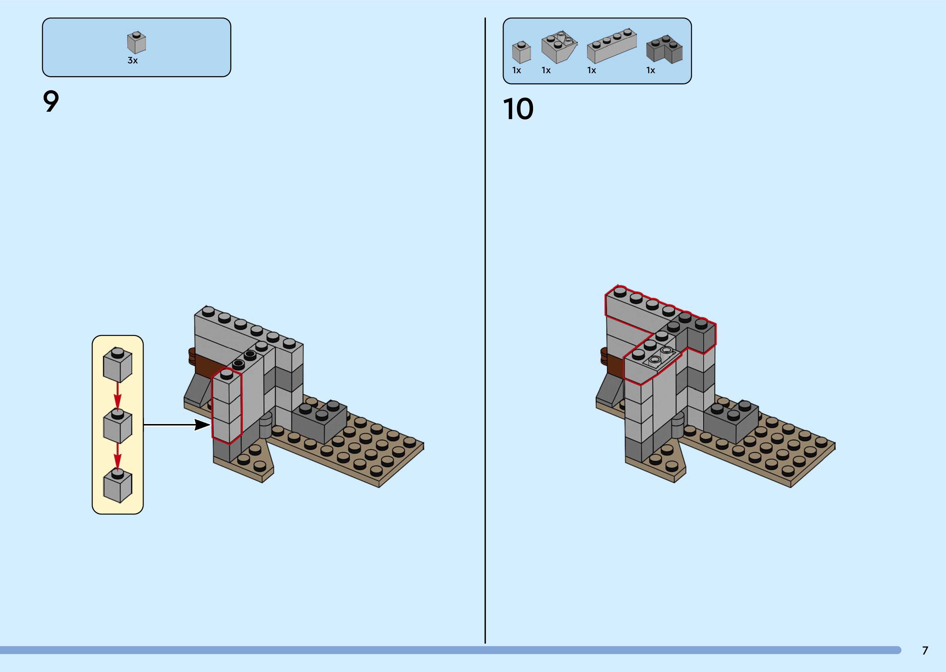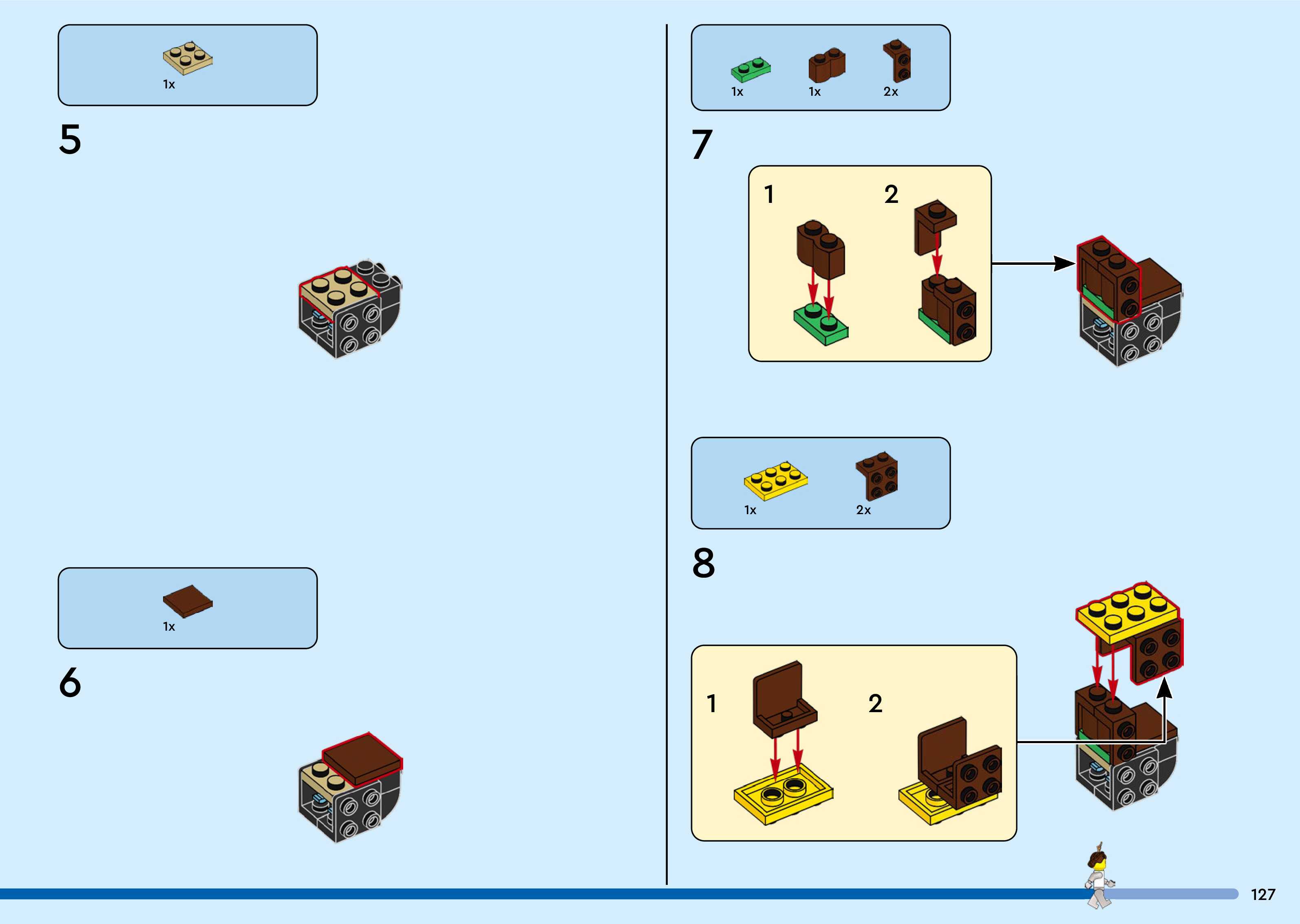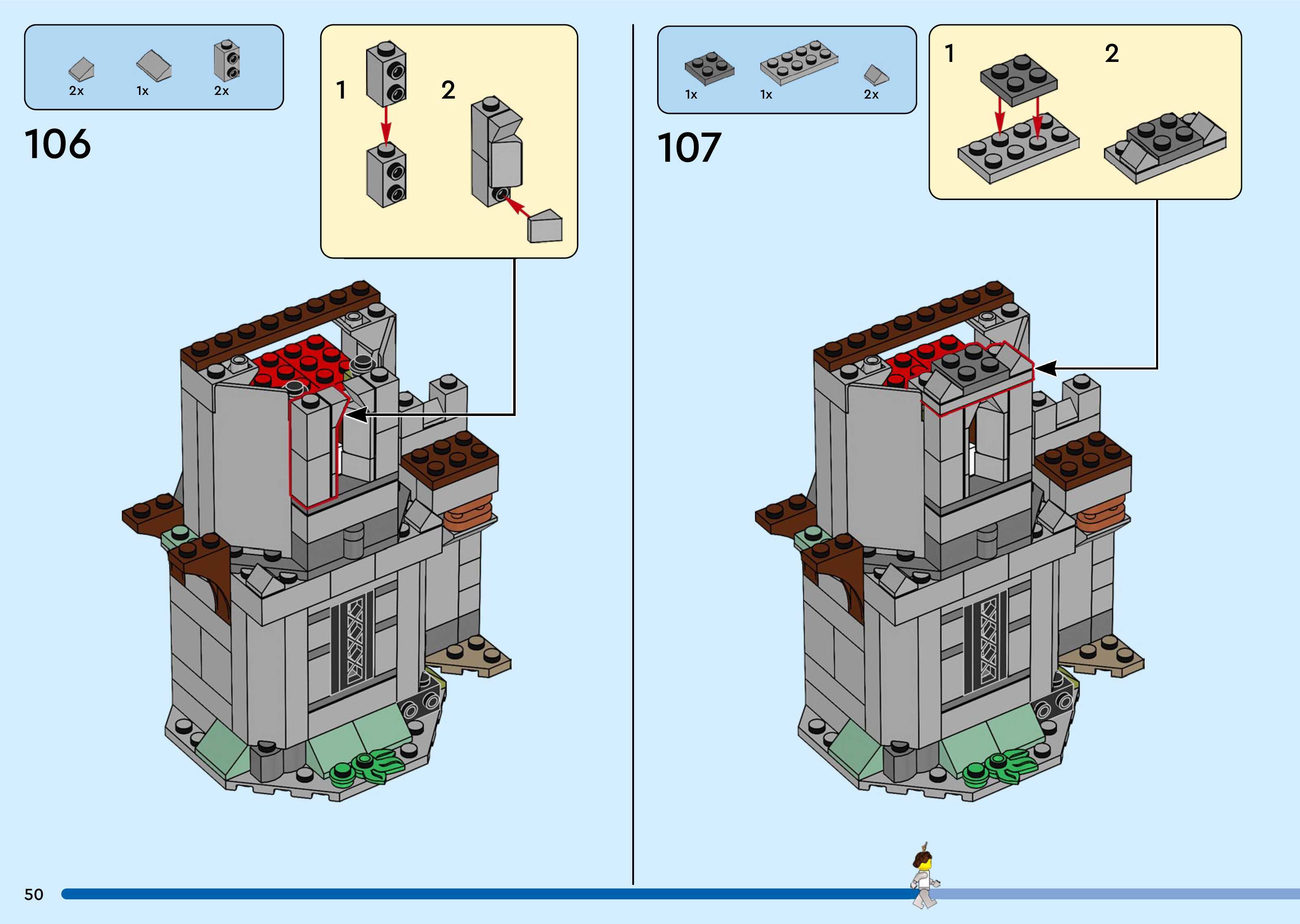 The assembly guide is prepared in a very understandable way for children and adult LEGO enthusiasts. A total of 532 picture galleries are shown, explaining the step-by-step construction stages for 3 different structures.