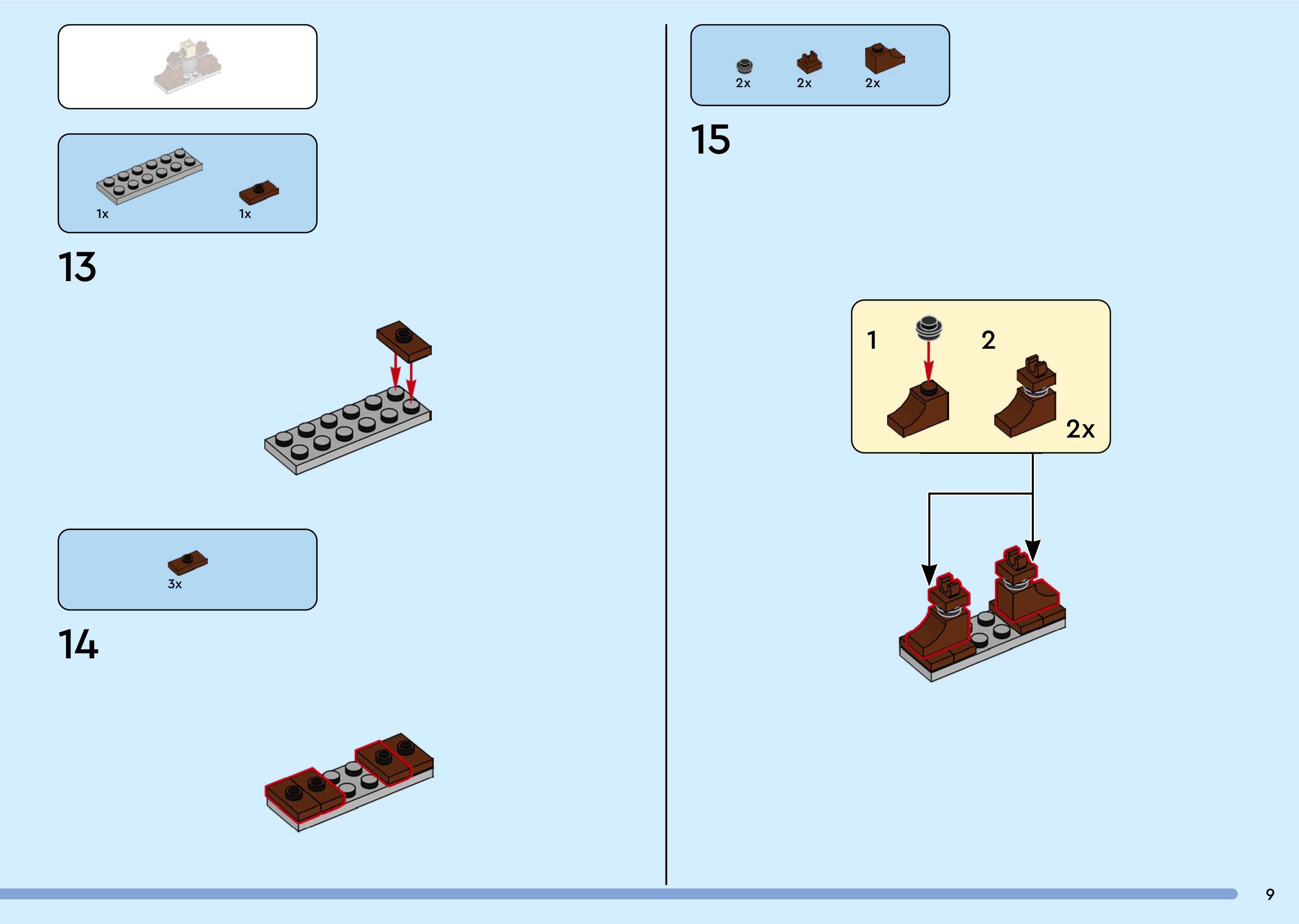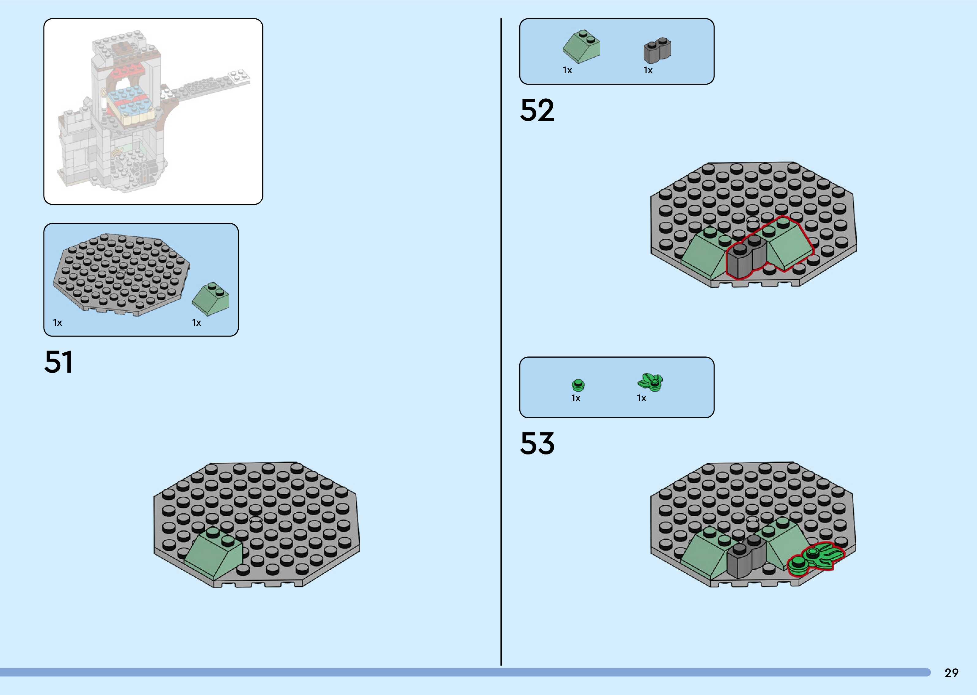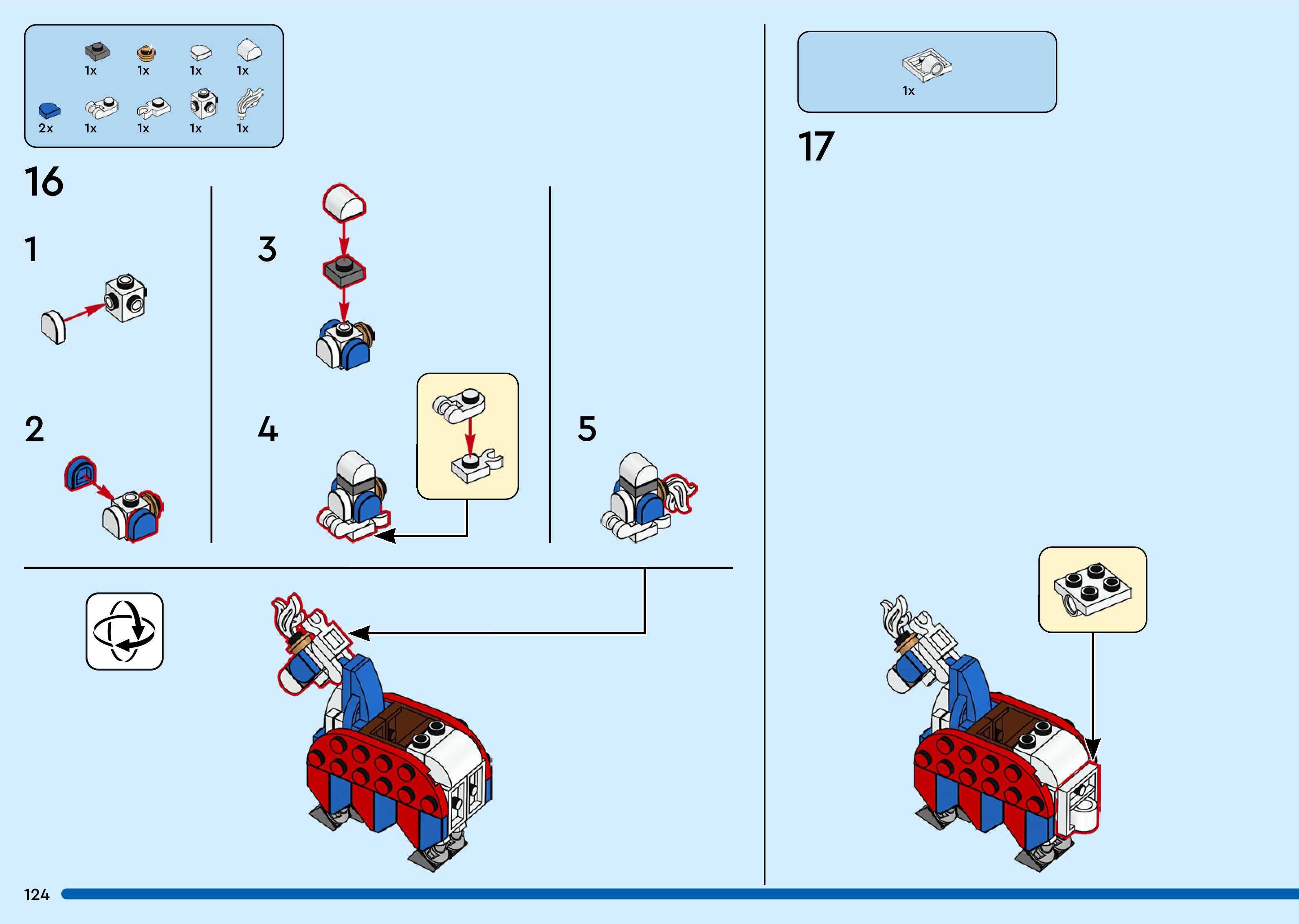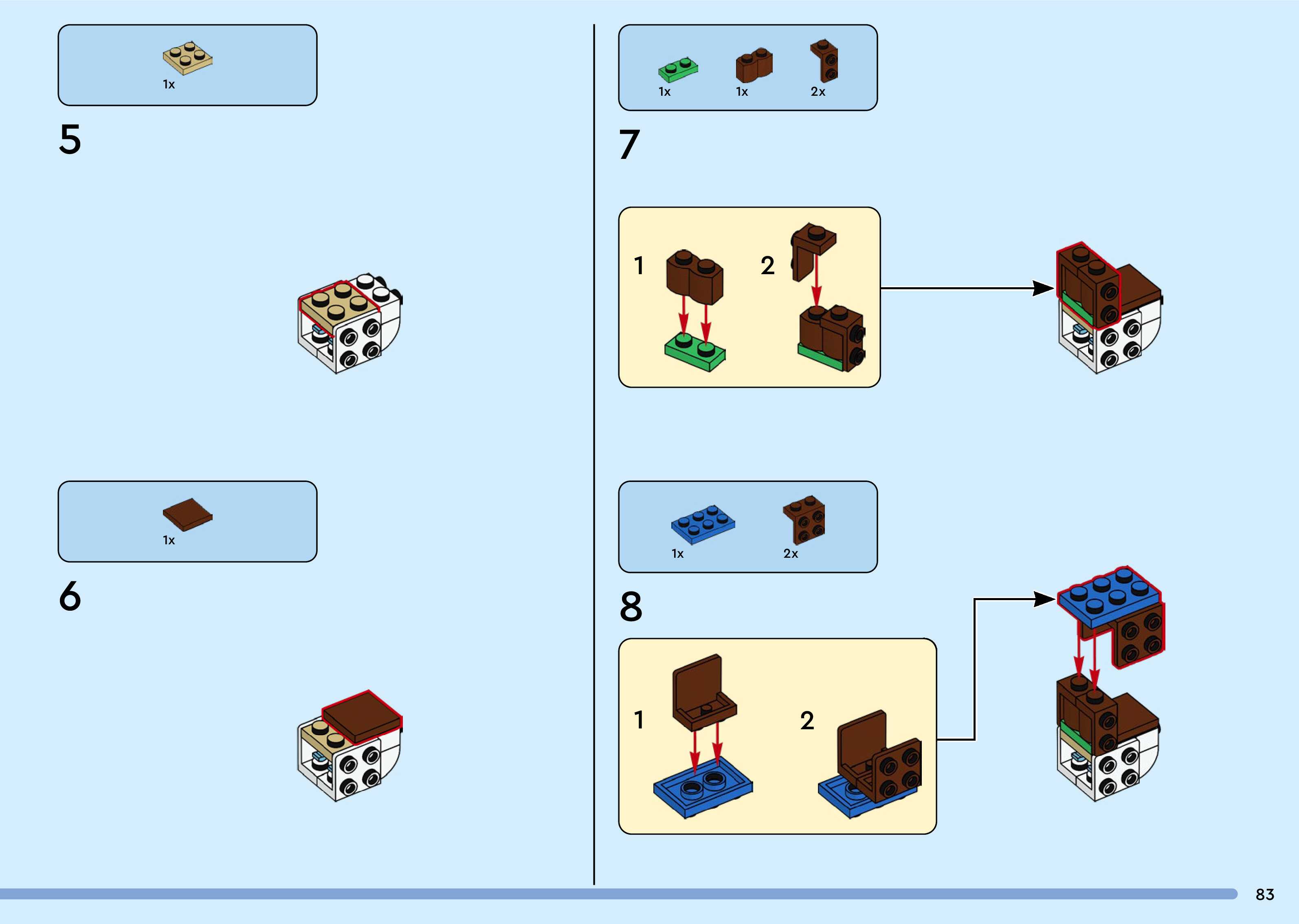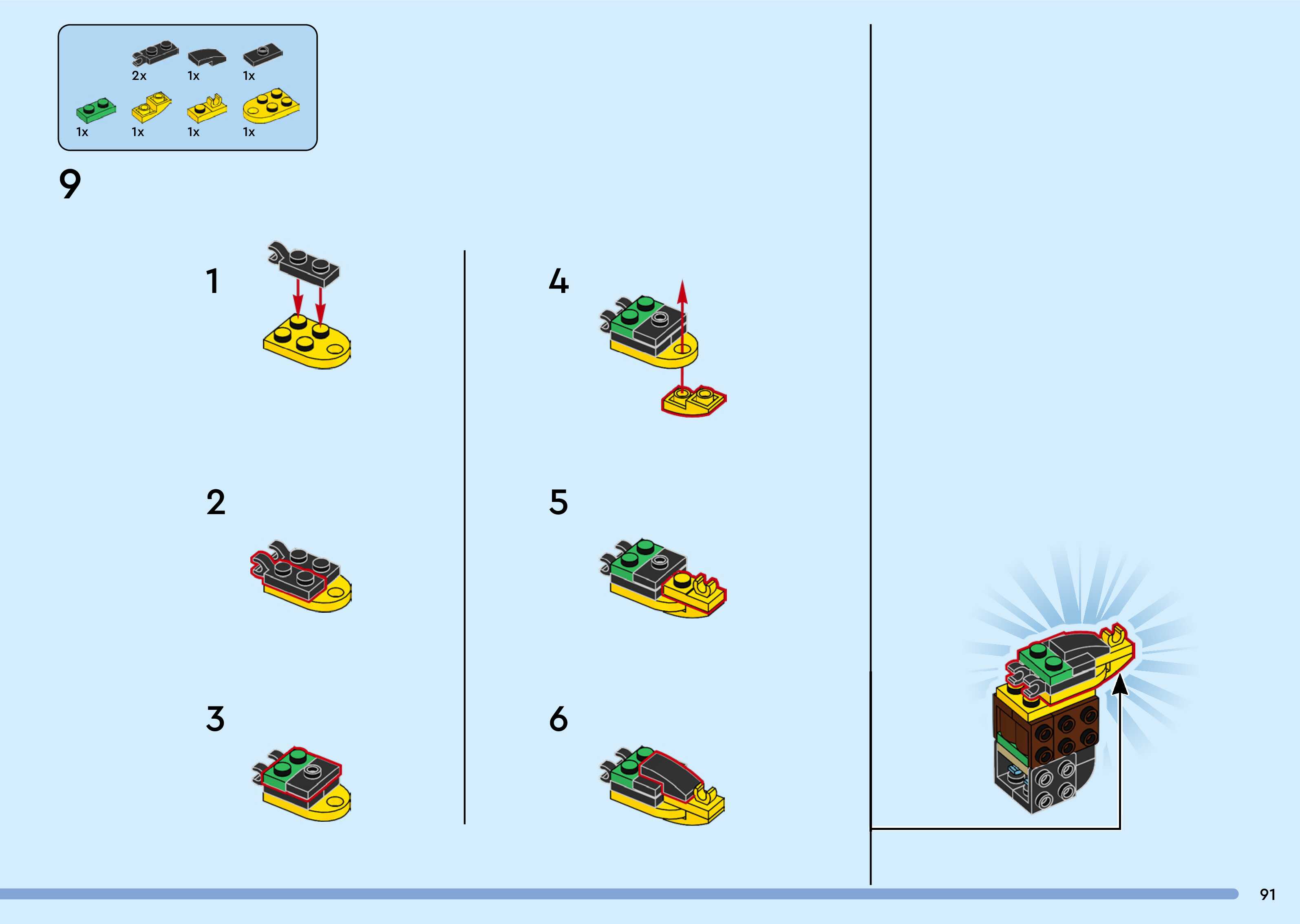 The assembly guide is prepared in a very understandable way for children and adult LEGO enthusiasts. A total of 532 picture galleries are shown, explaining the step-by-step construction stages for 3 different structures.