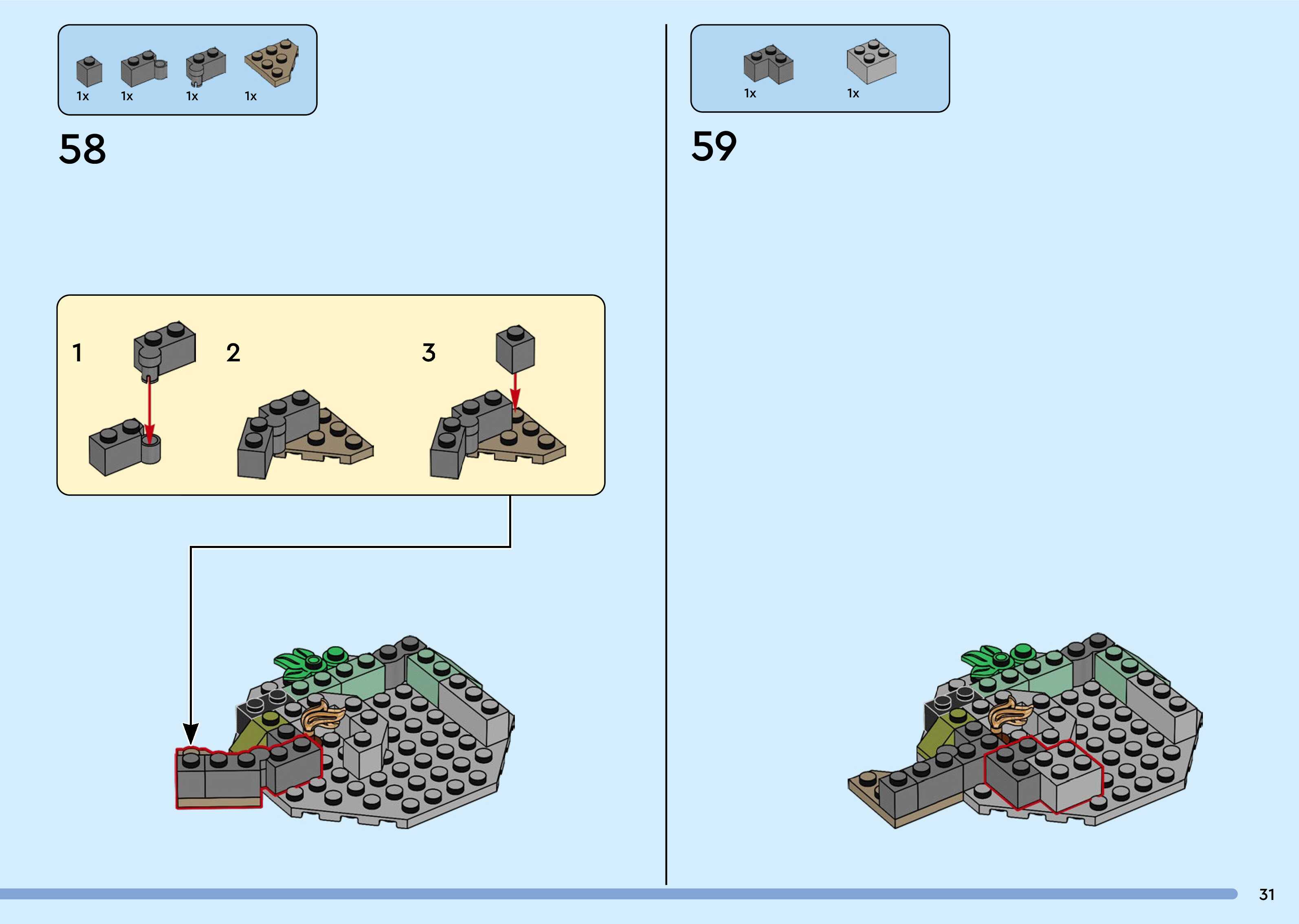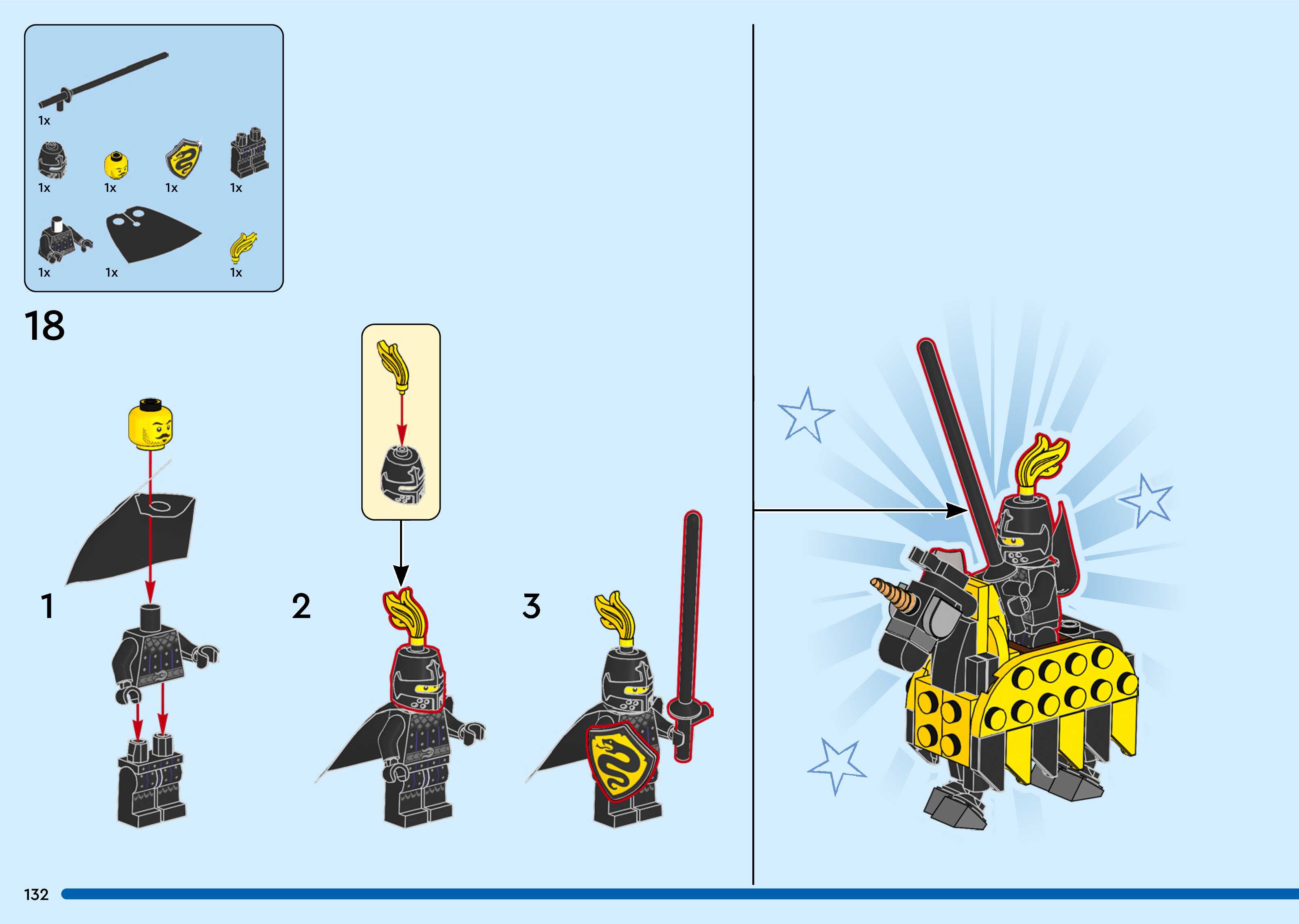 On this page you can find the original construction manual for the LEGO 31168 set. With the assembly manual you can easily learn how to build the Medieval Horse Knight Castle step by step. The set was released in 2025.
