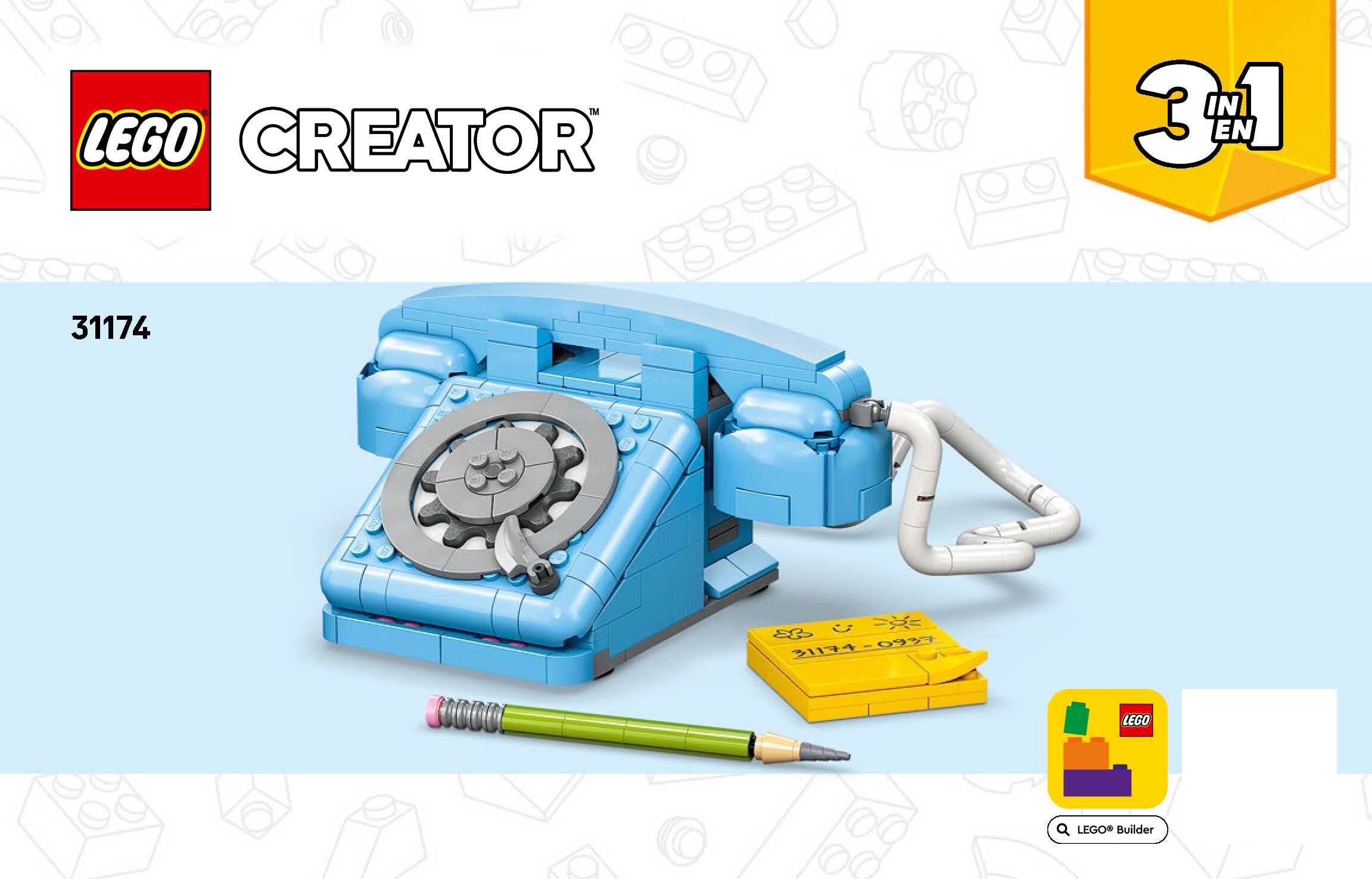 On this page you can find the original construction manual for the LEGO 31174 set. With the assembly manual you can easily learn how to build the Retro Telephone step by step. The set was released in 2025.