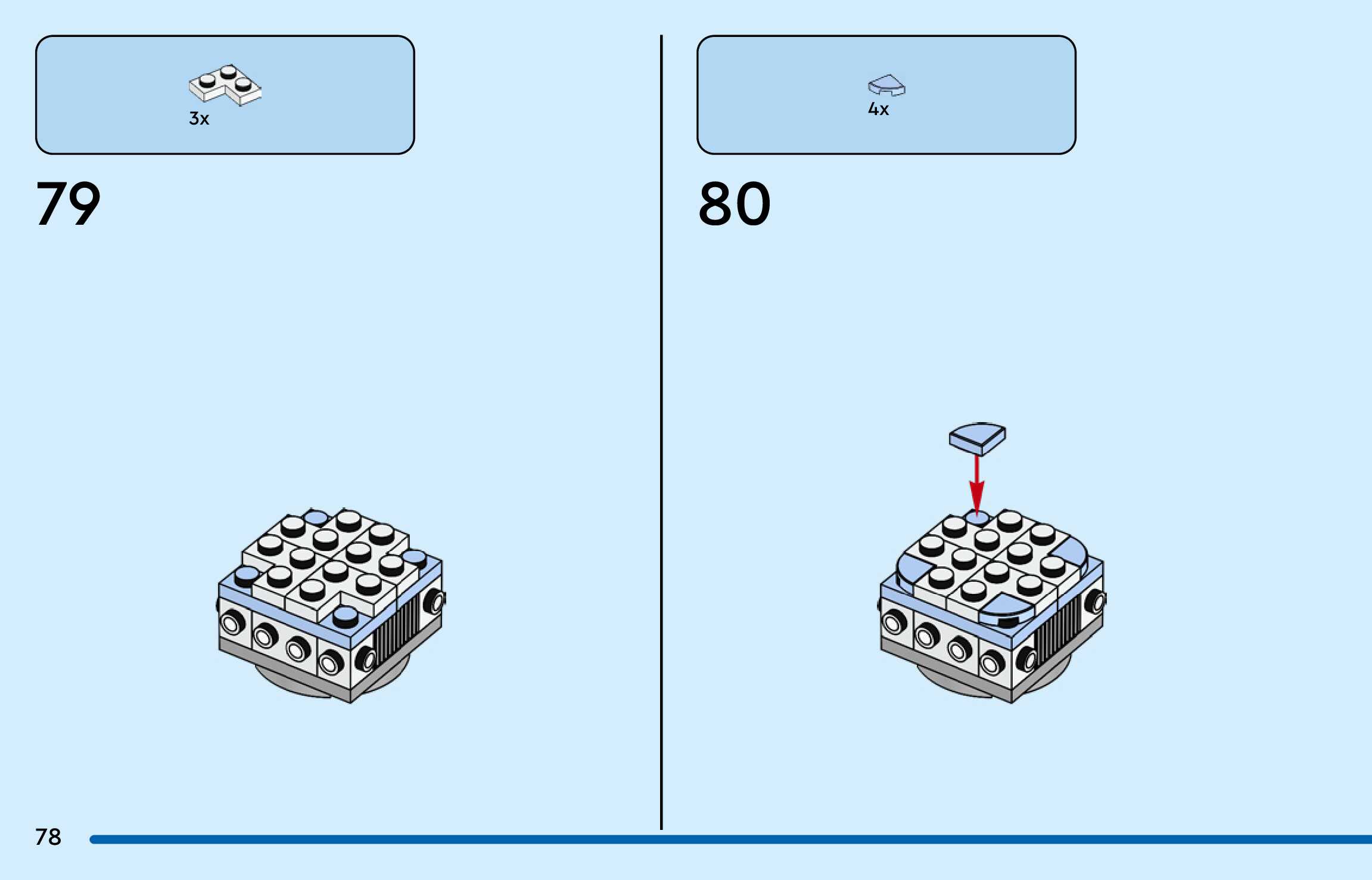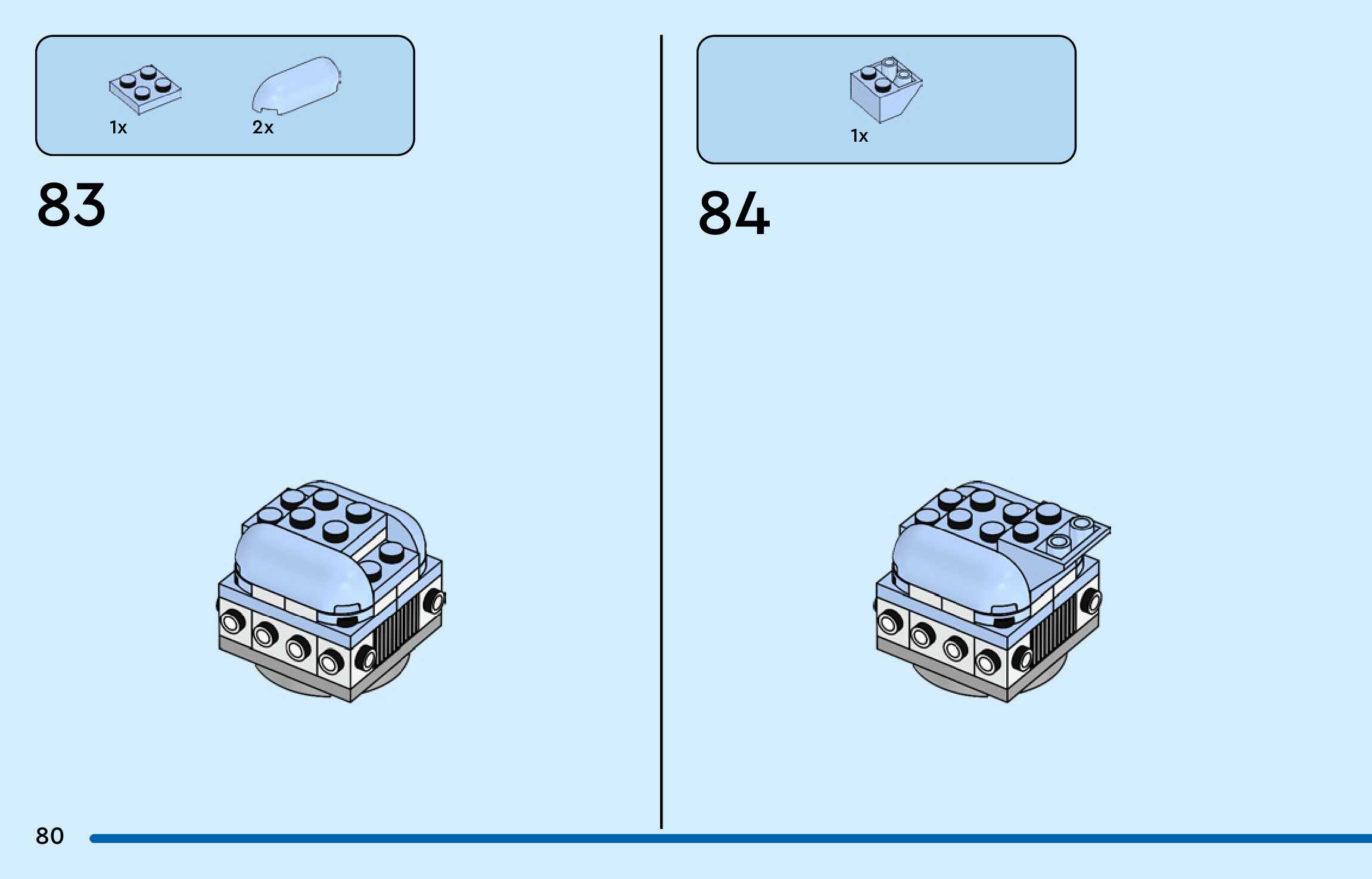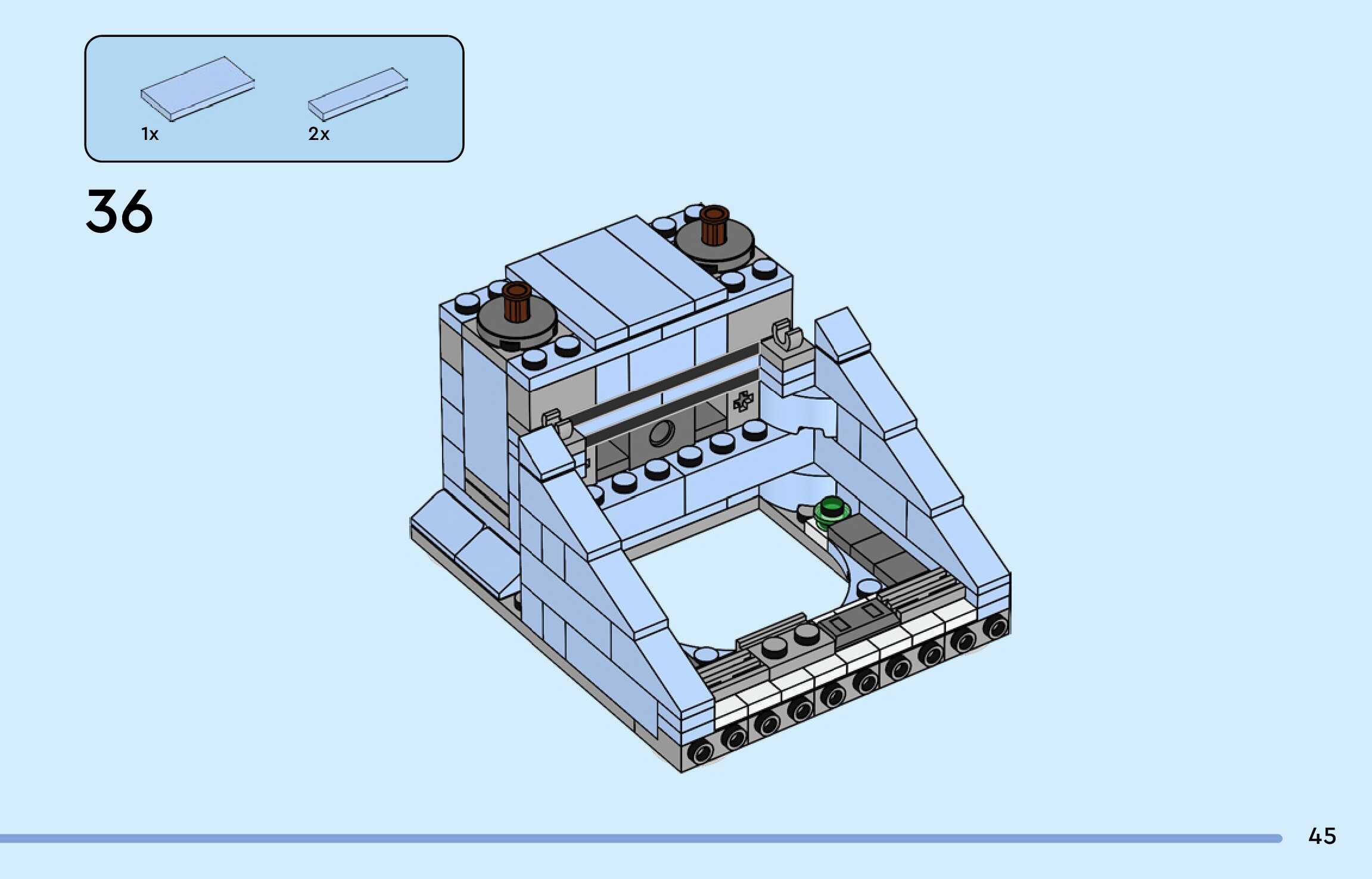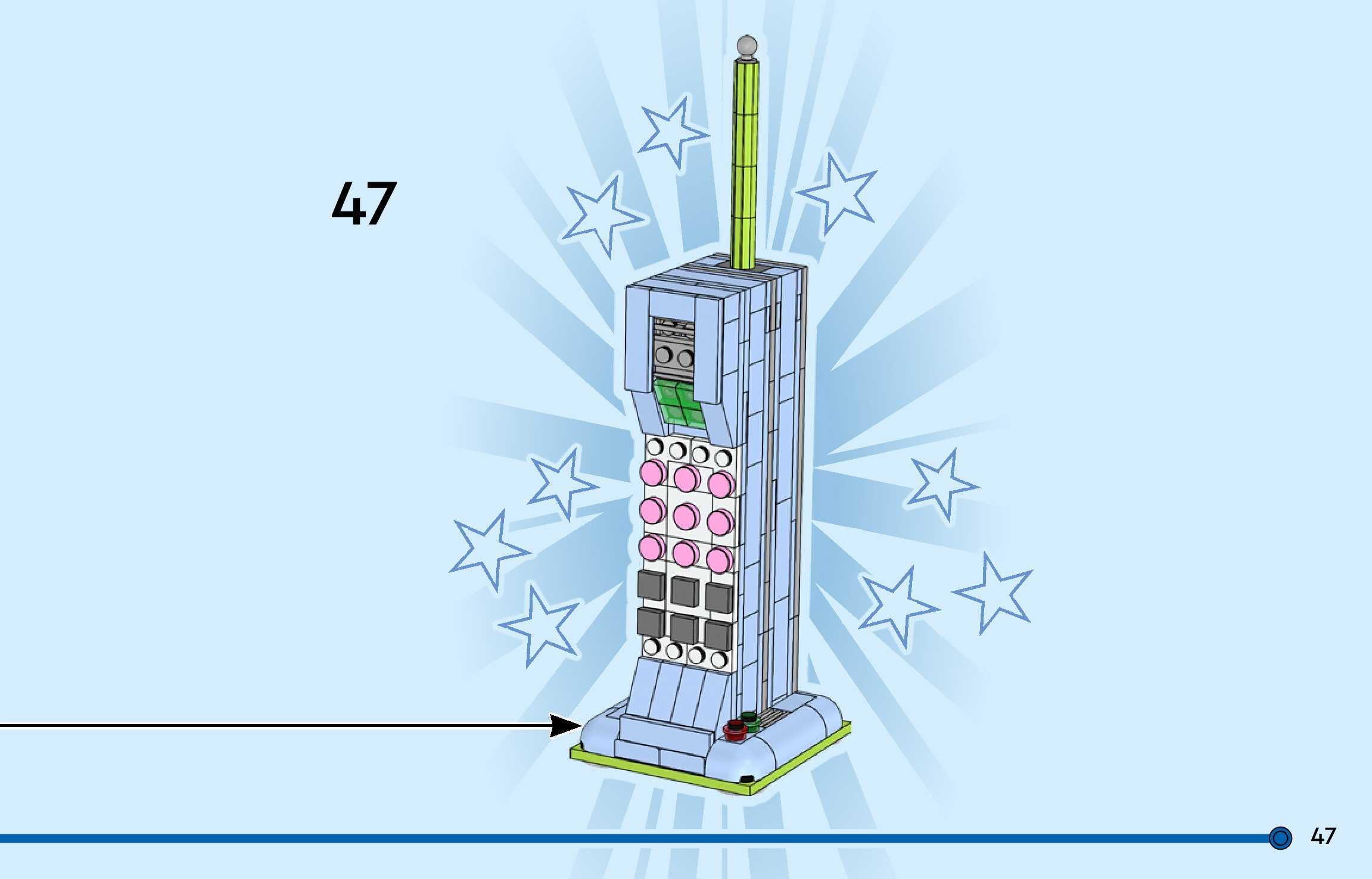 The assembly guide is prepared in a very understandable way for children and adult LEGO enthusiasts. A total of 188 picture galleries are shown, explaining the step-by-step construction stages for 3 different structures.