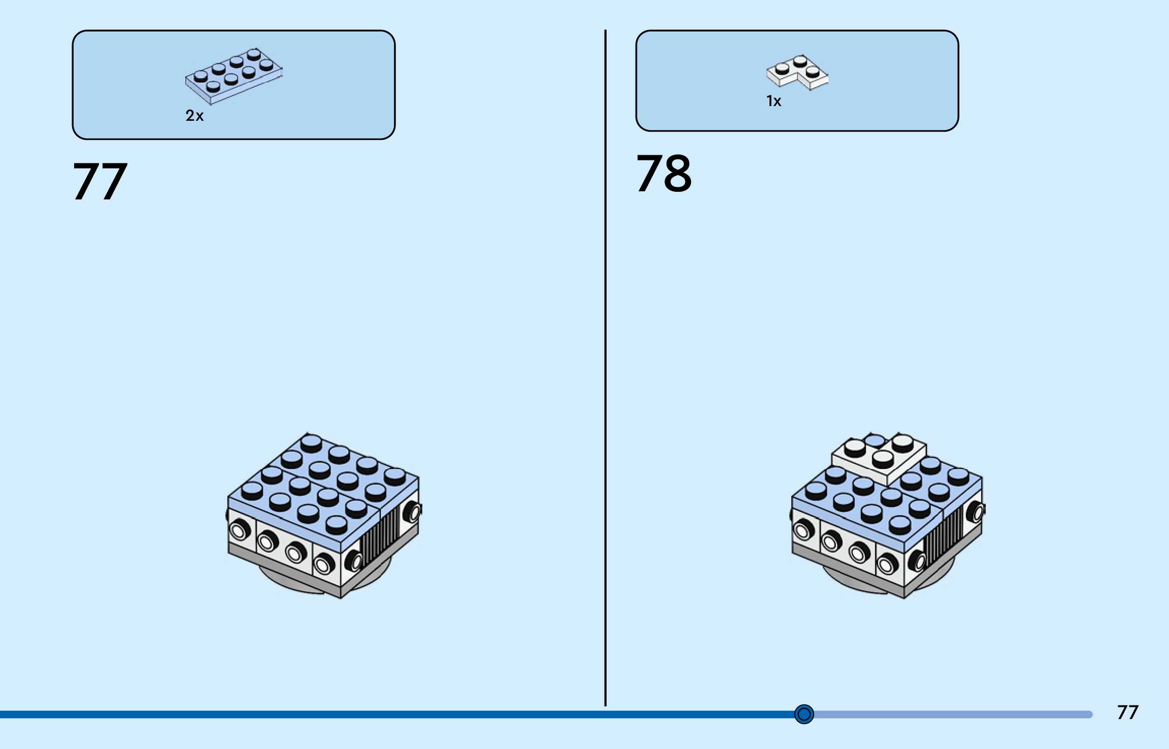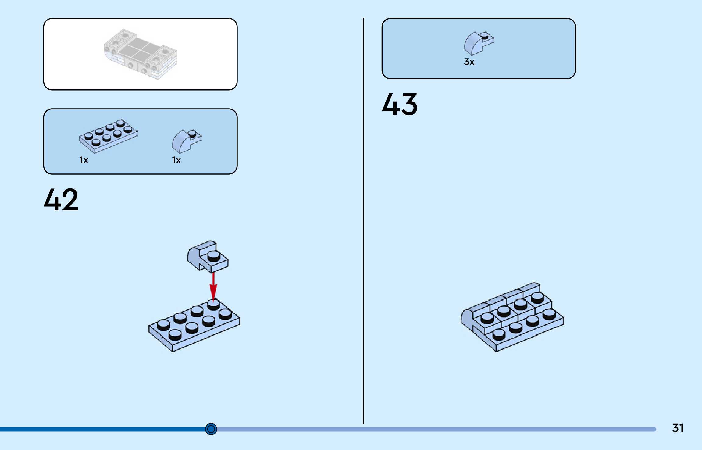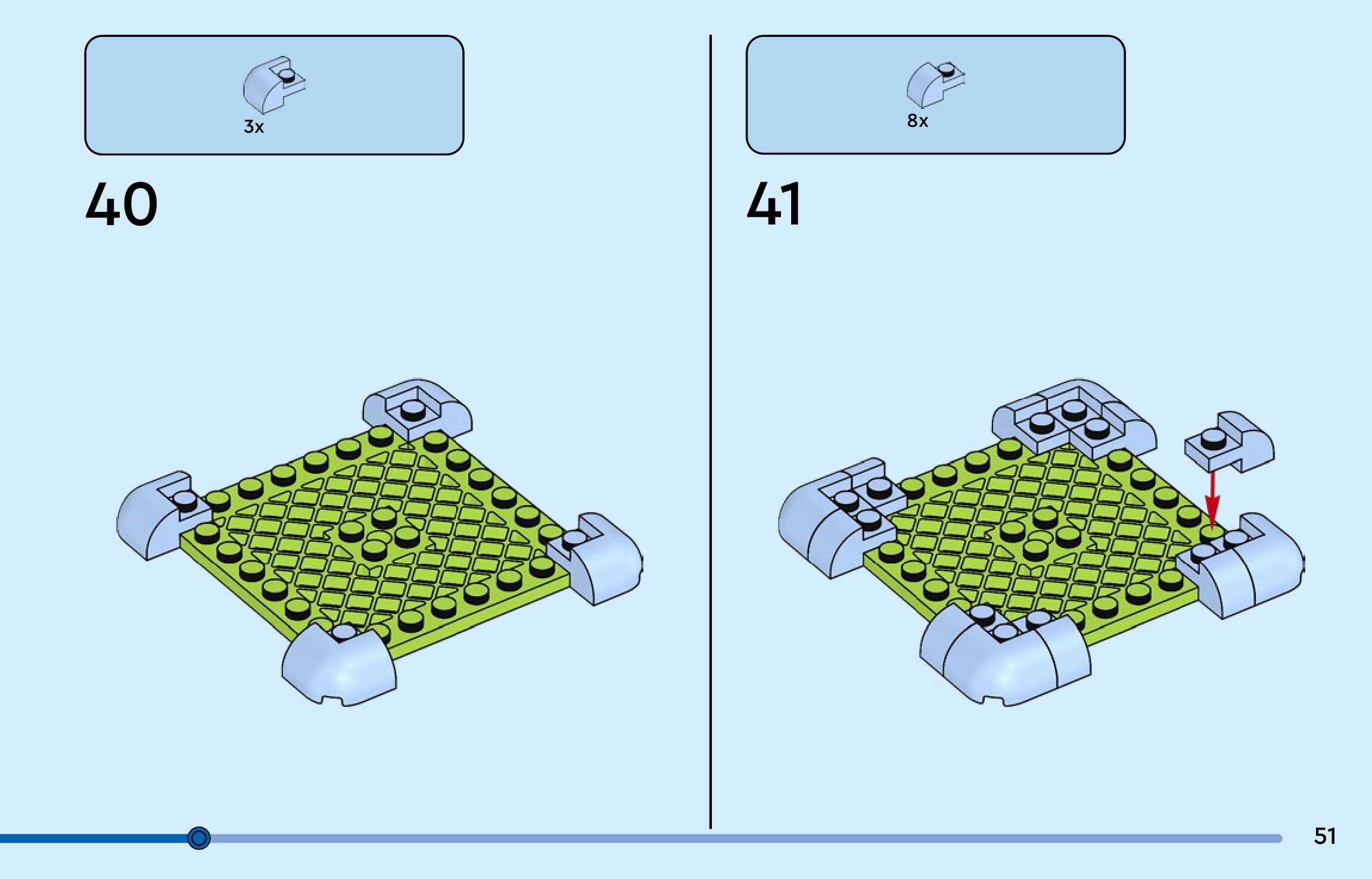 The assembly guide is prepared in a very understandable way for children and adult LEGO enthusiasts. A total of 188 picture galleries are shown, explaining the step-by-step construction stages for 3 different structures.