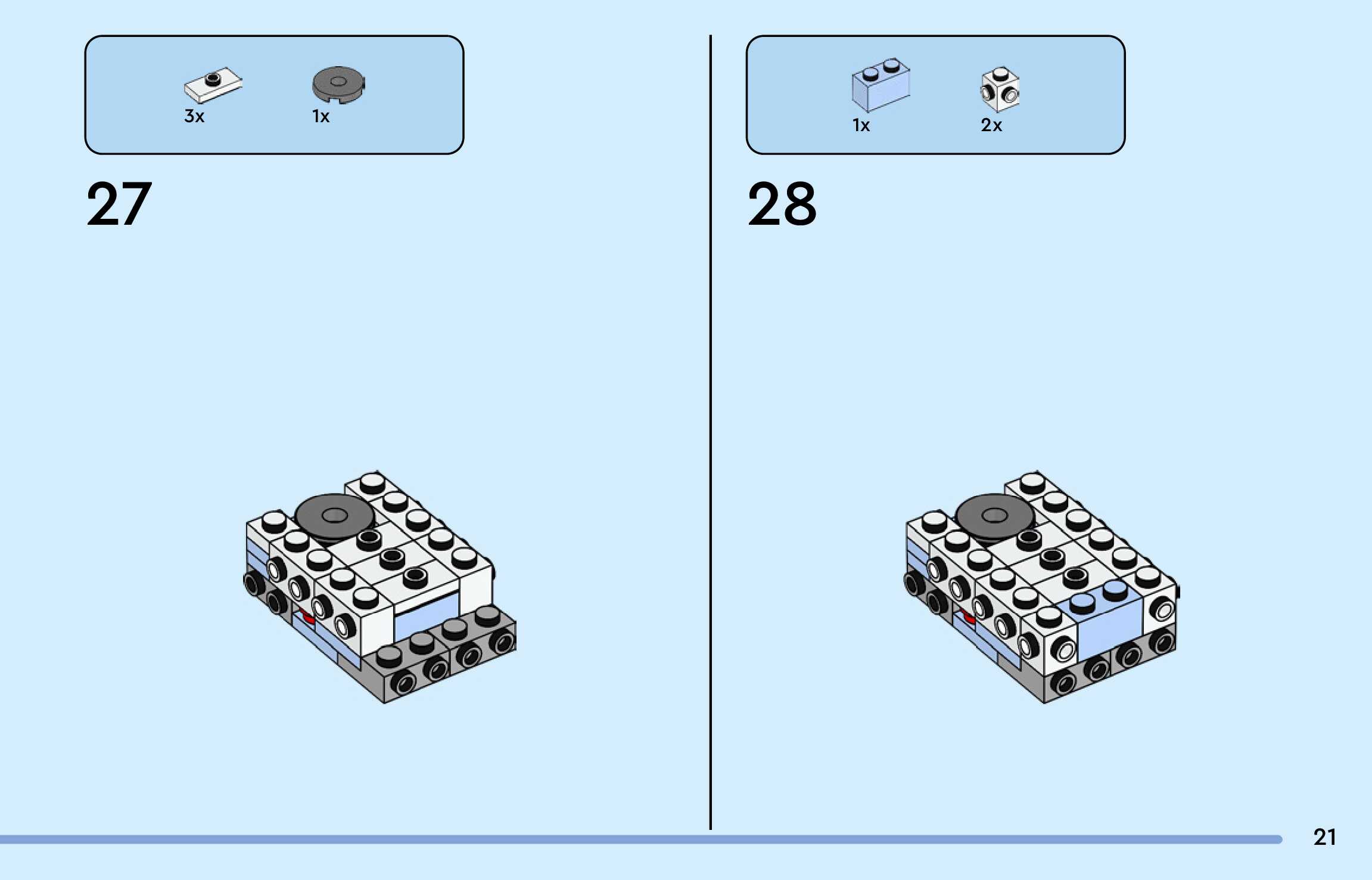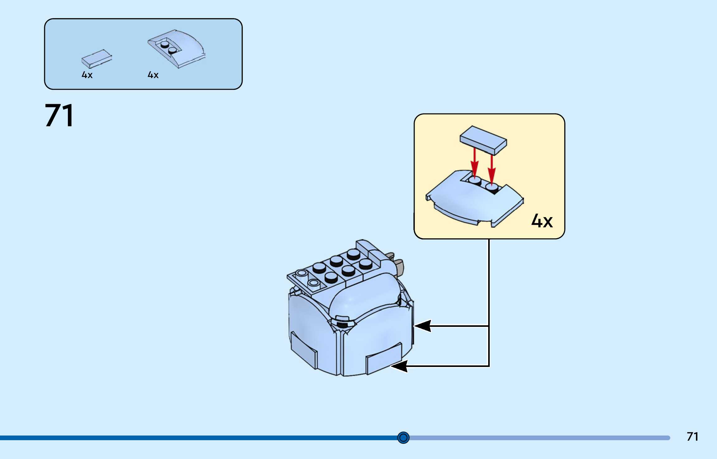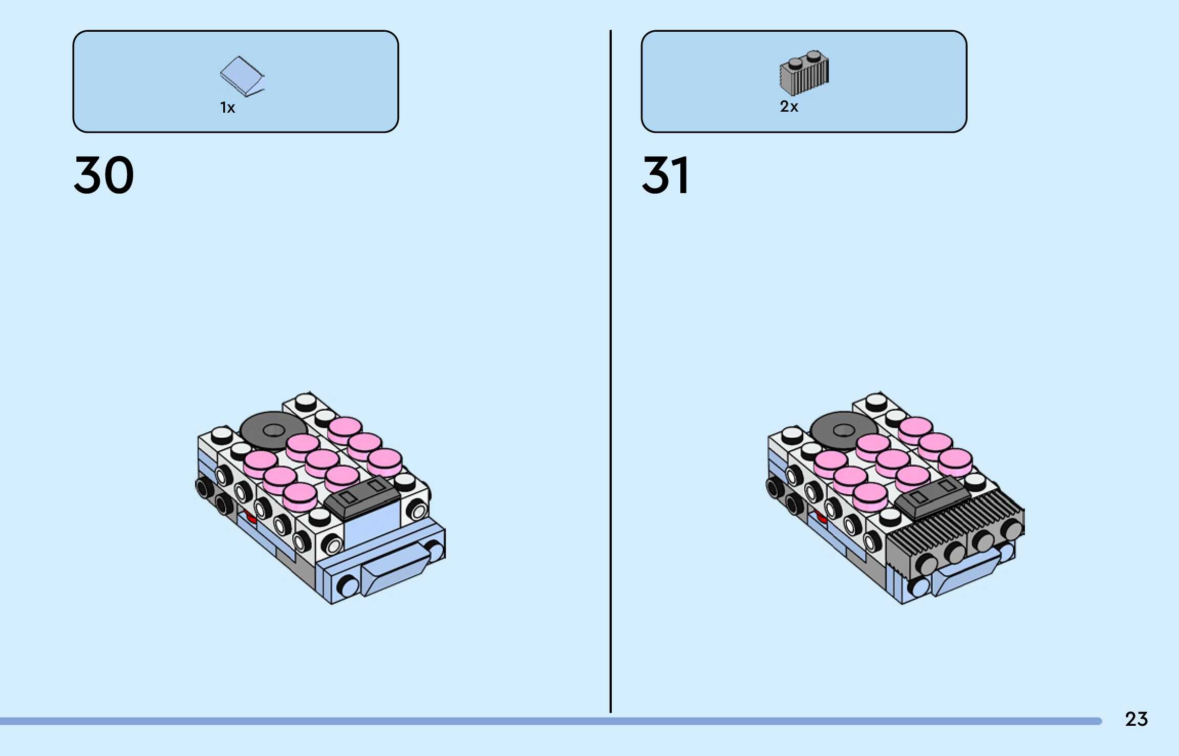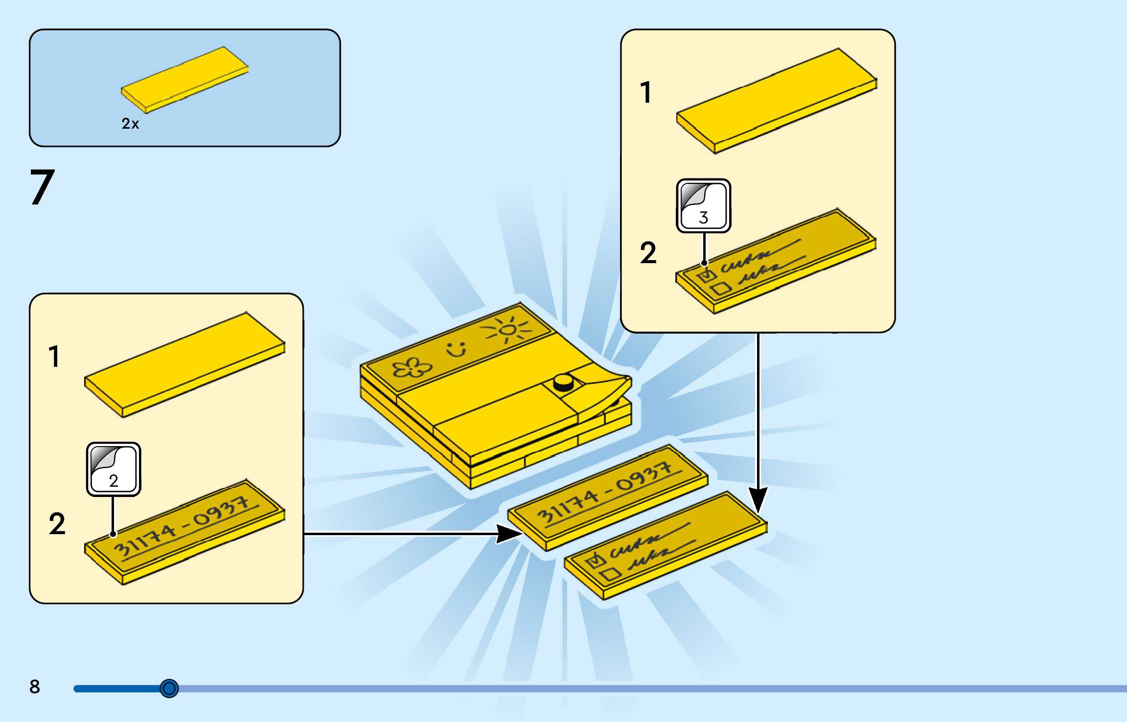 The assembly guide is prepared in a very understandable way for children and adult LEGO enthusiasts. A total of 188 picture galleries are shown, explaining the step-by-step construction stages for 3 different structures.