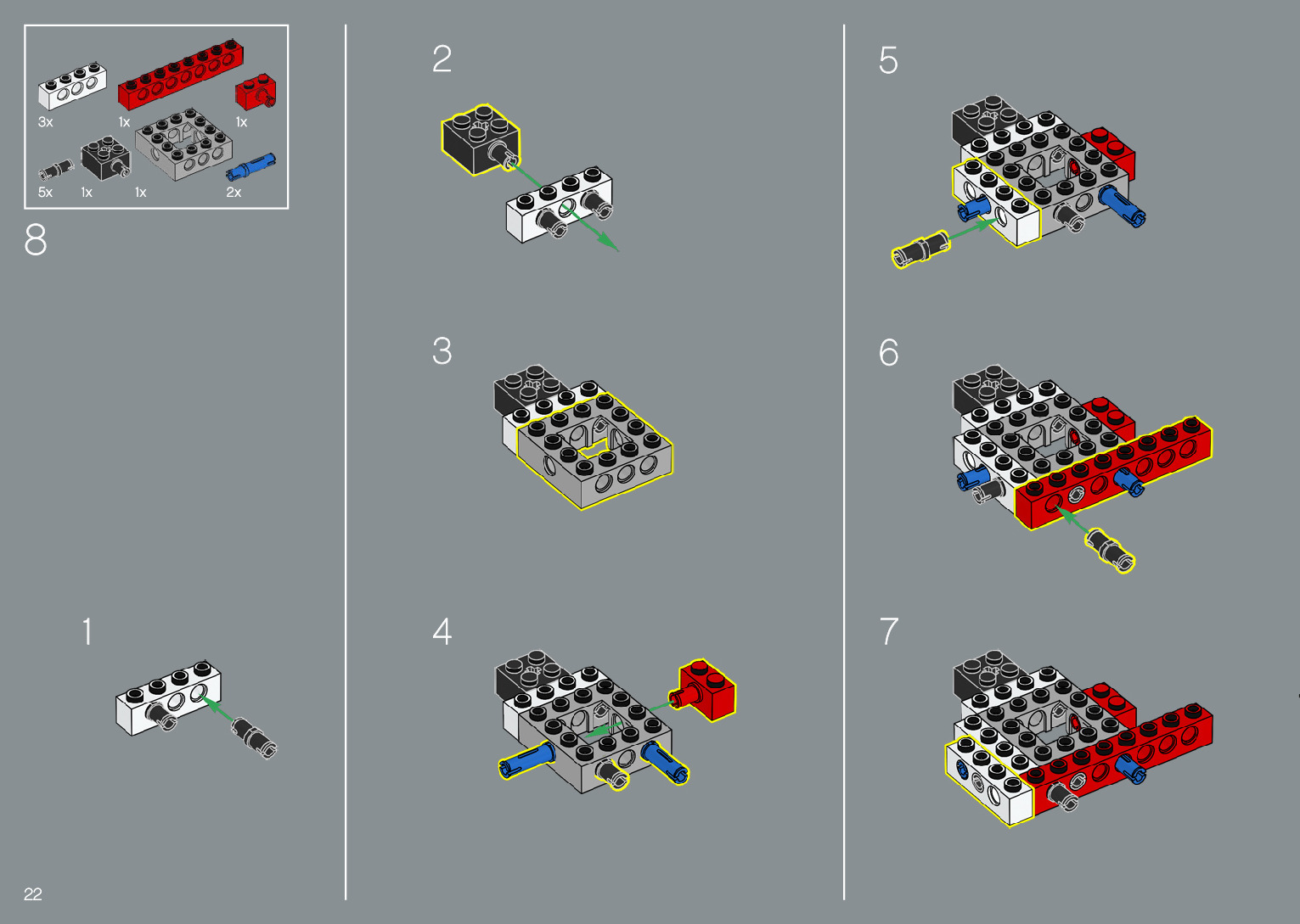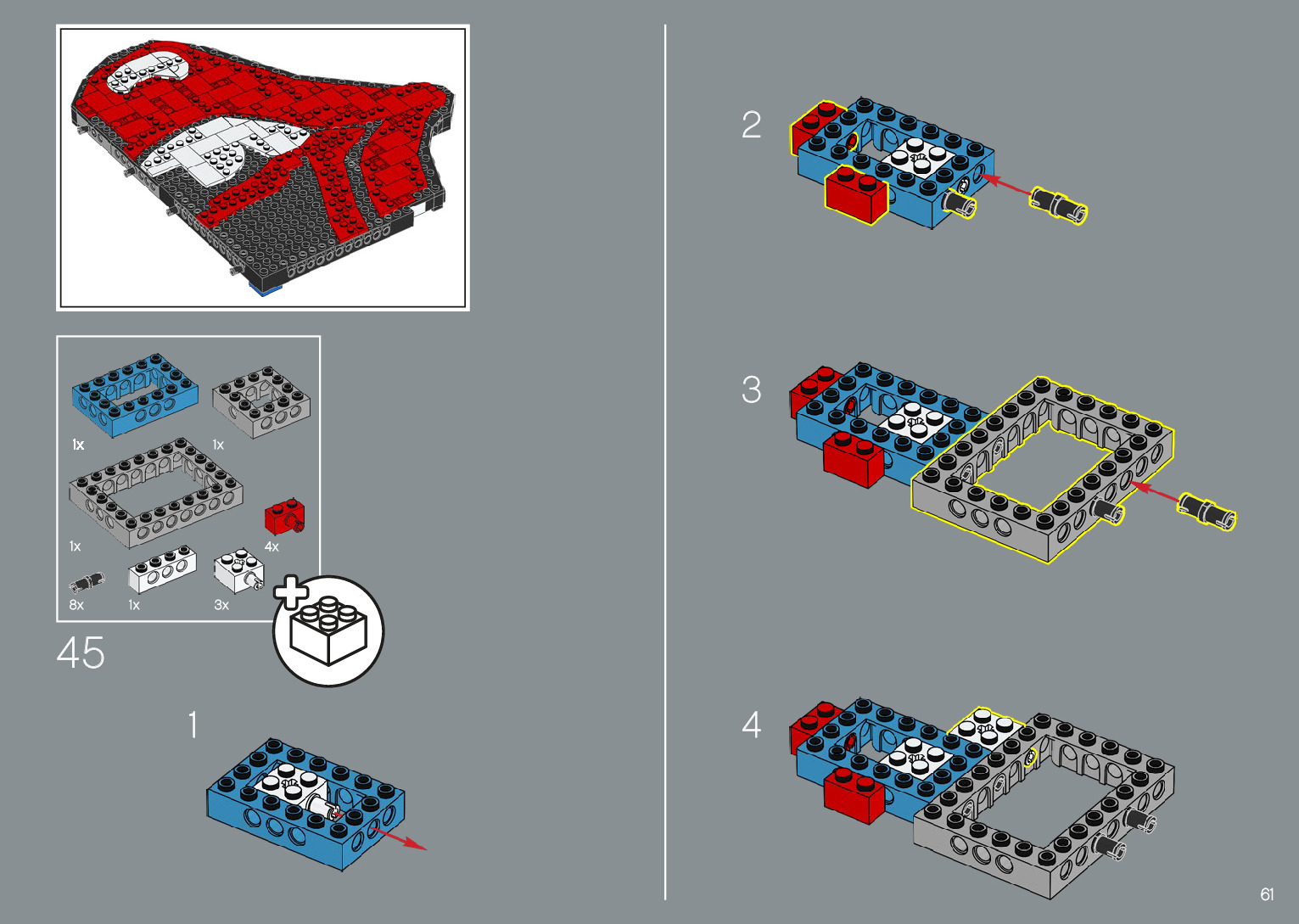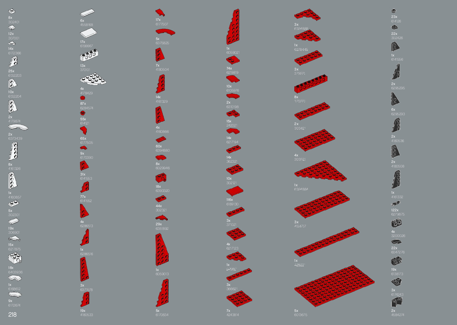 The assembly guide is prepared in a very understandable way for children and adult LEGO enthusiasts. A total of 220 picture galleries are shown, explaining the step-by-step construction stages for 1 different structures.