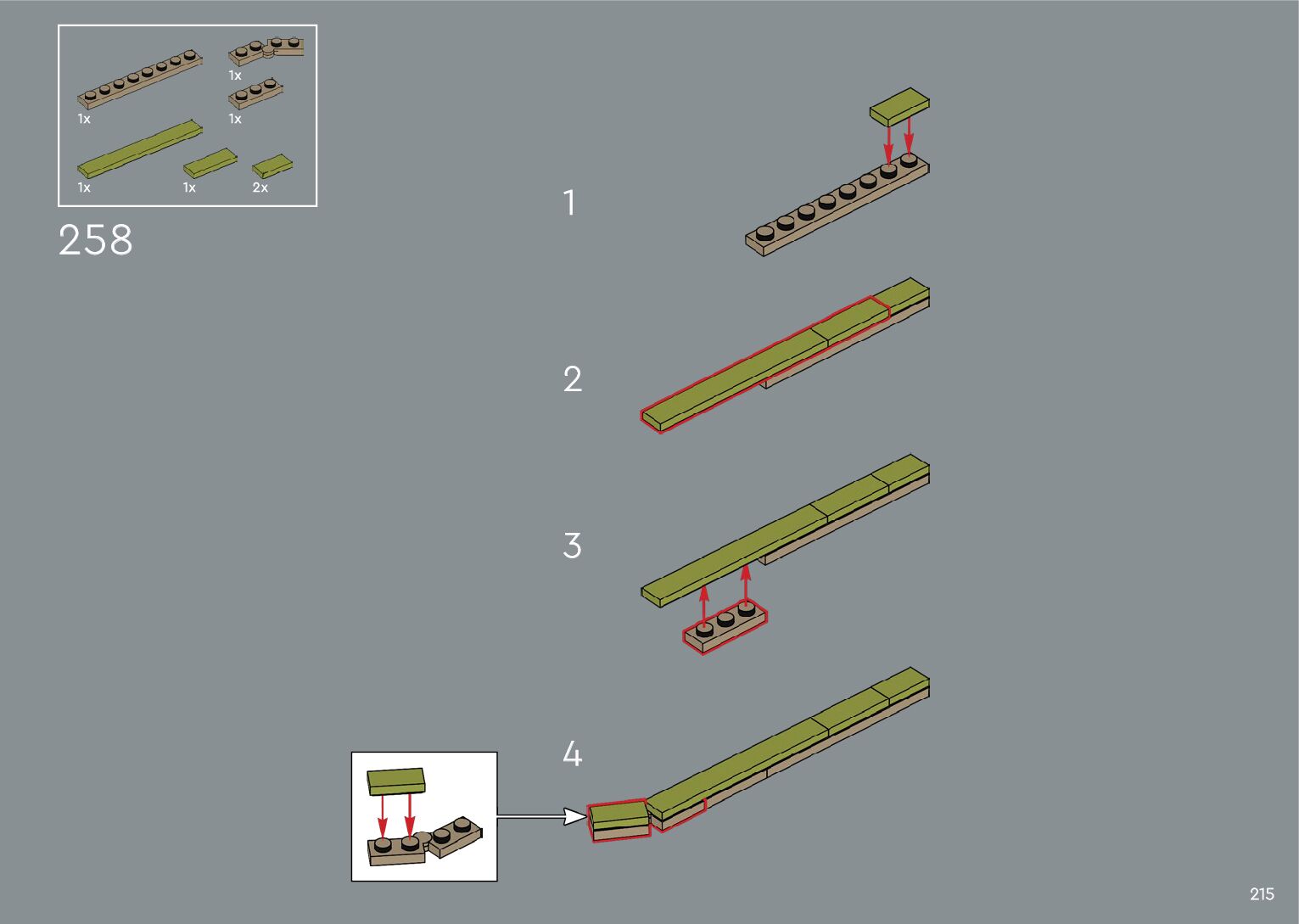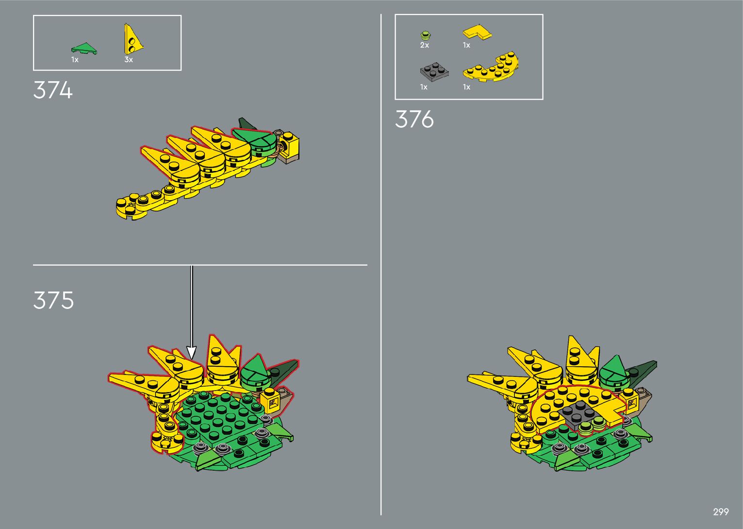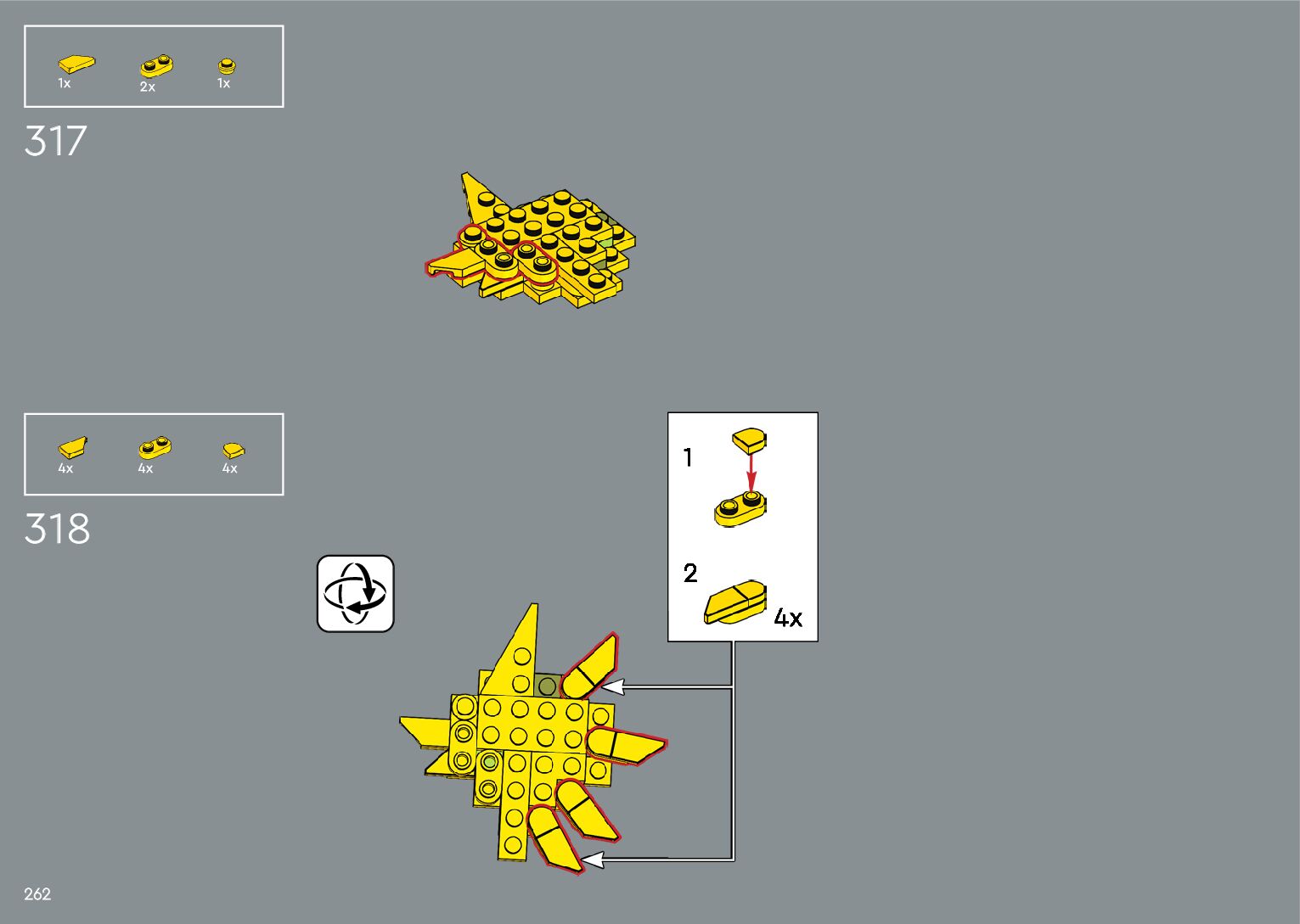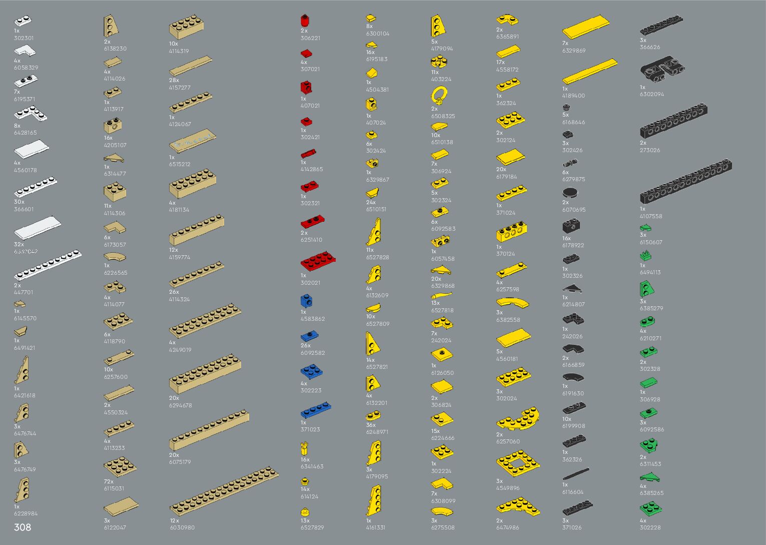 The assembly guide is prepared in a very understandable way for children and adult LEGO enthusiasts. A total of 312 picture galleries are shown, explaining the step-by-step construction stages for 1 different structures.
