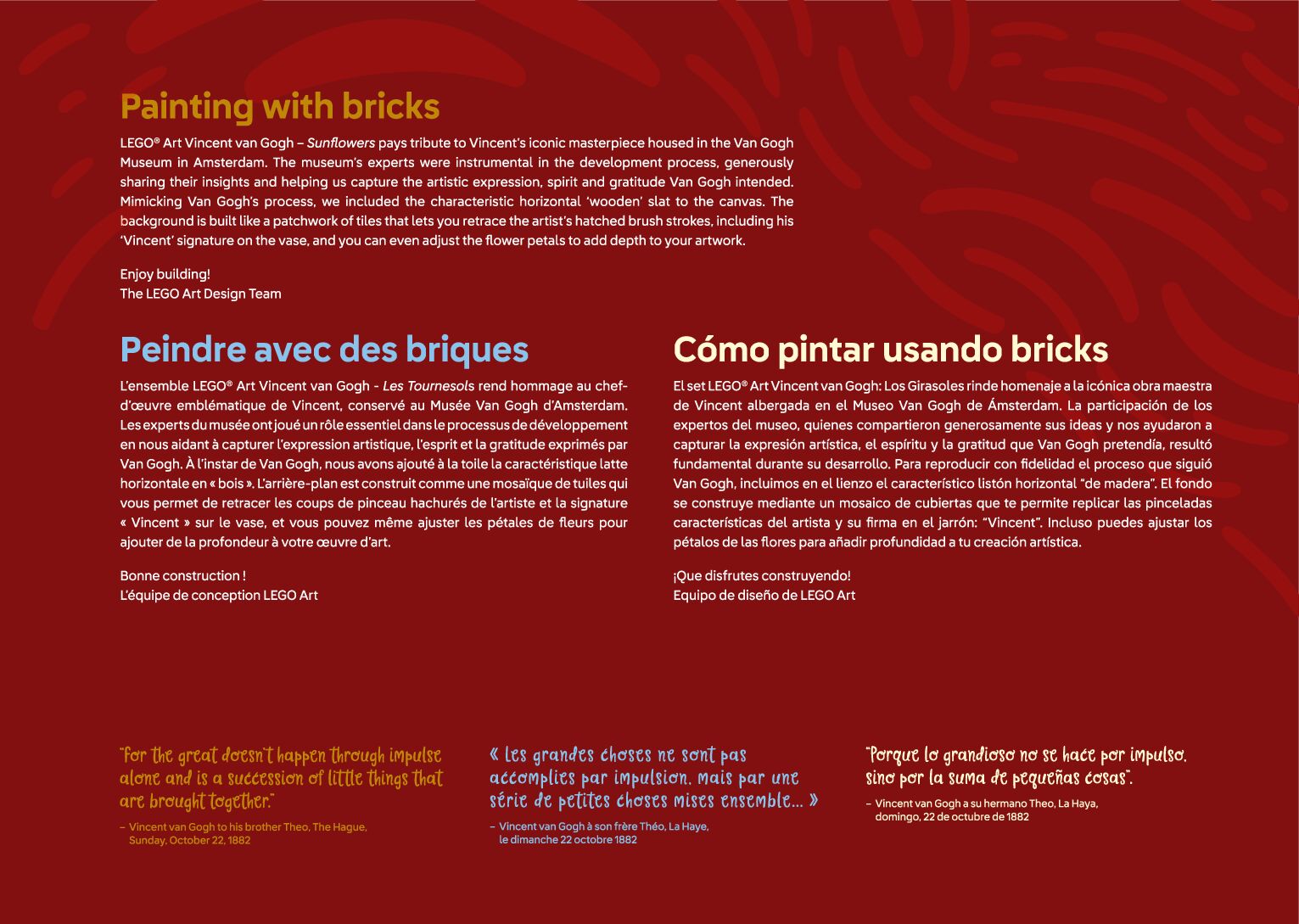 This page shares information about LEGO Vincent van Gogh – Sunflowers manual, LEGO 31215 PDF instructions, LEGO Vincent van Gogh – Sunflowers building guide online, How to build Vincent van Gogh – Sunflowers LEGO.