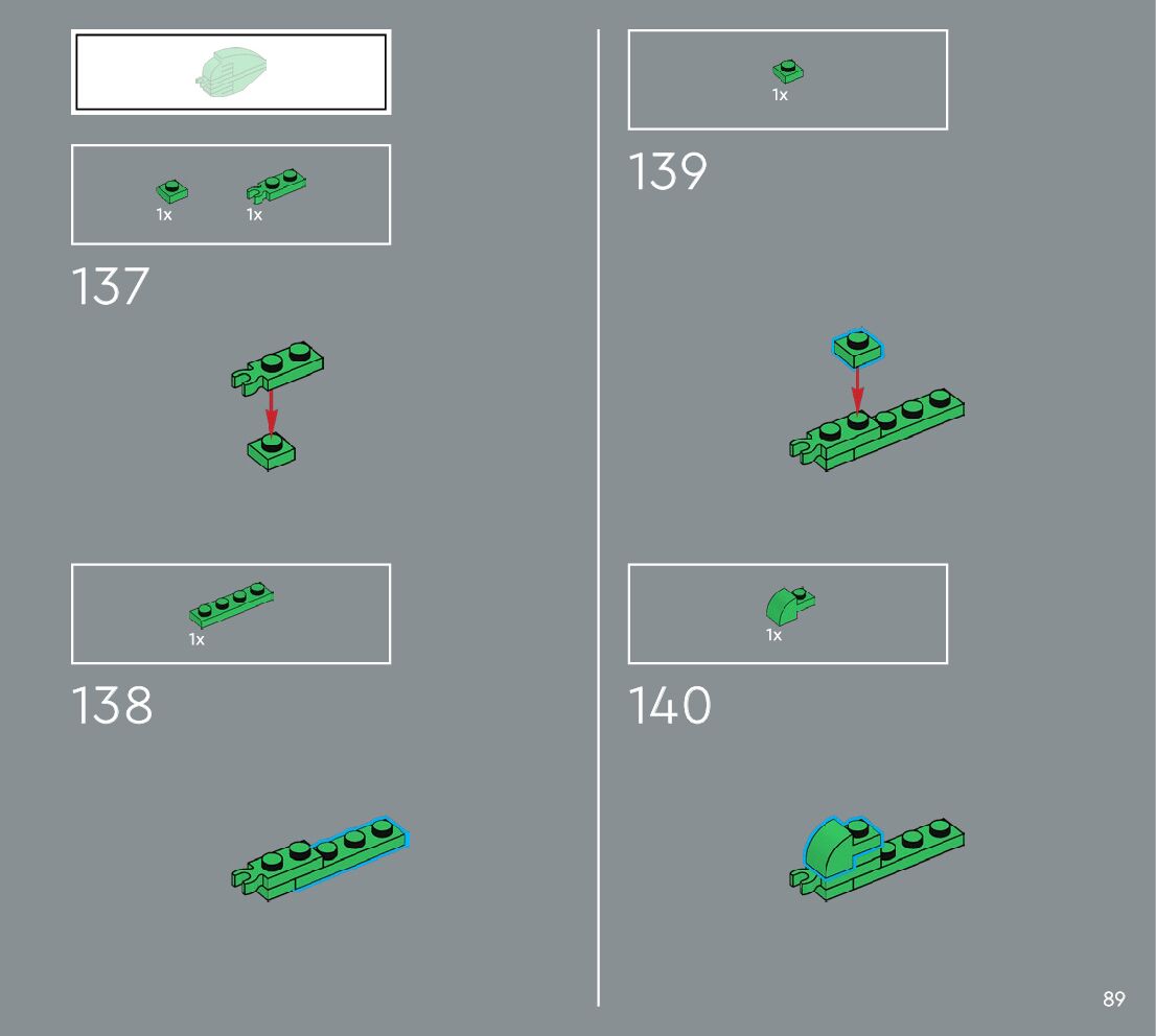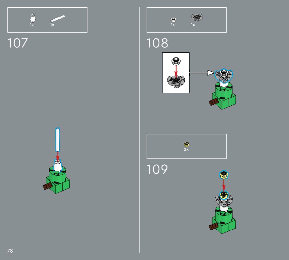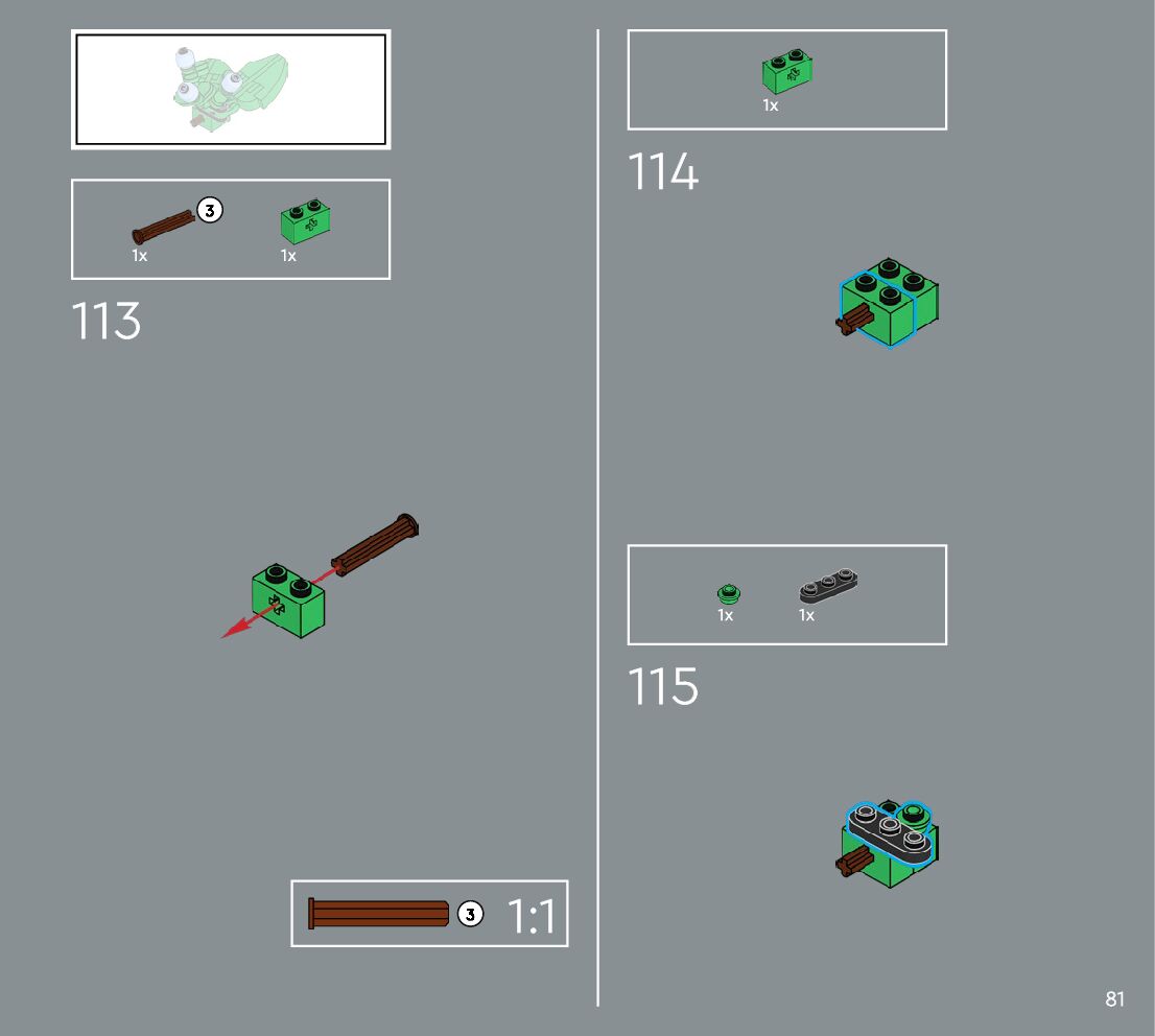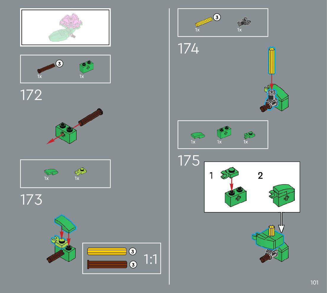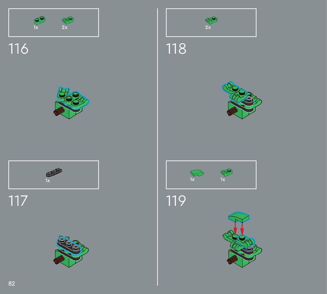 The assembly guide is prepared in a very understandable way for children and adult LEGO enthusiasts. A total of 112 picture galleries are shown, explaining the step-by-step construction stages for 1 different structures.