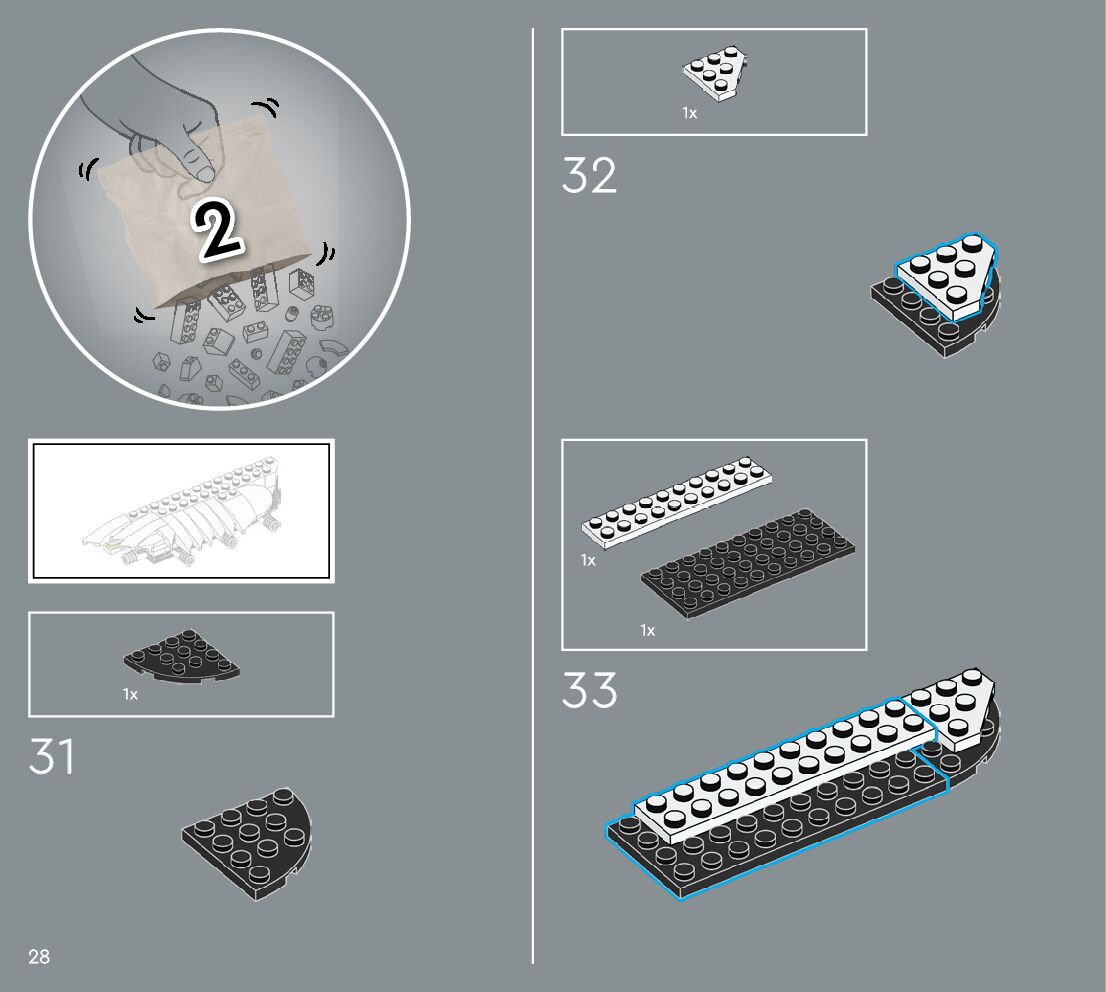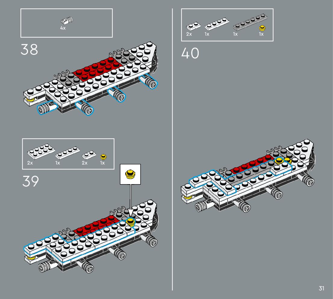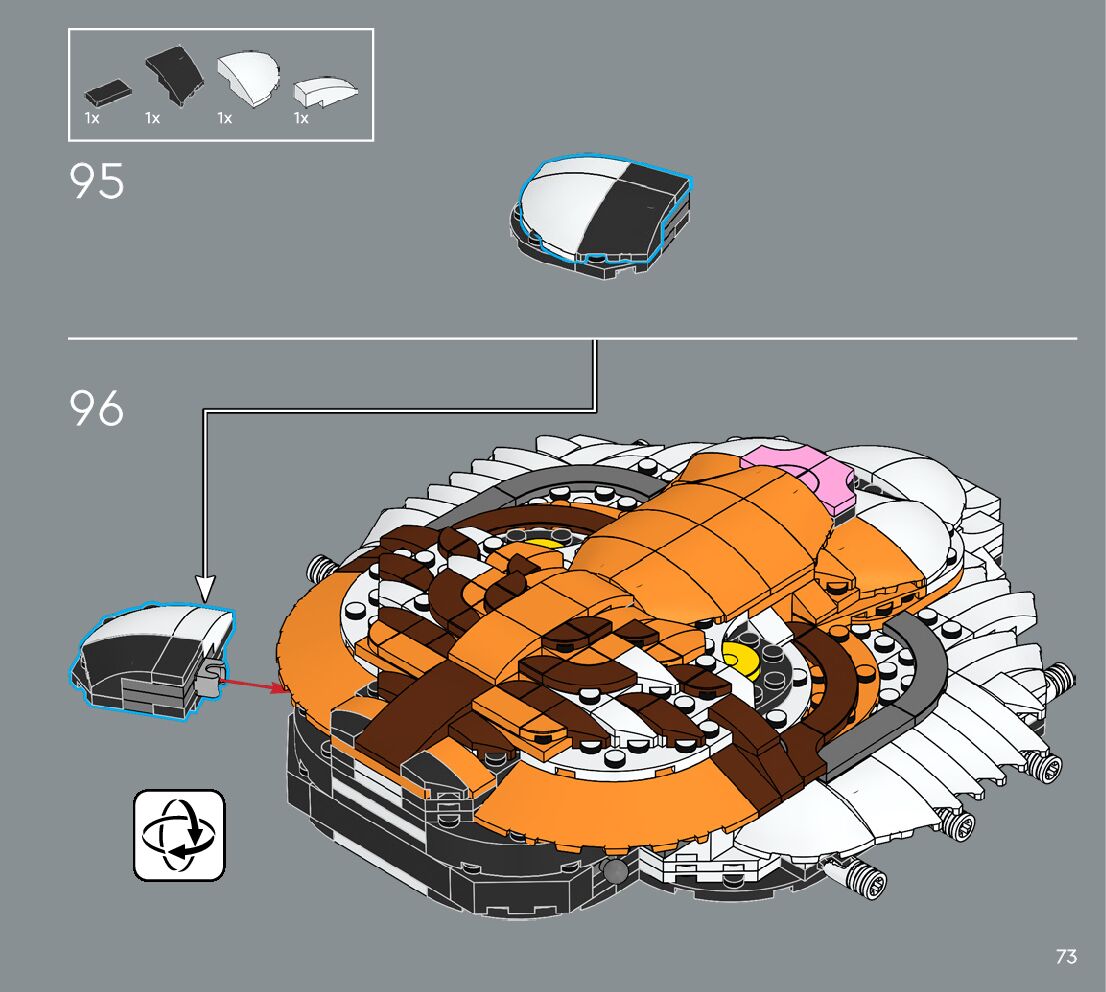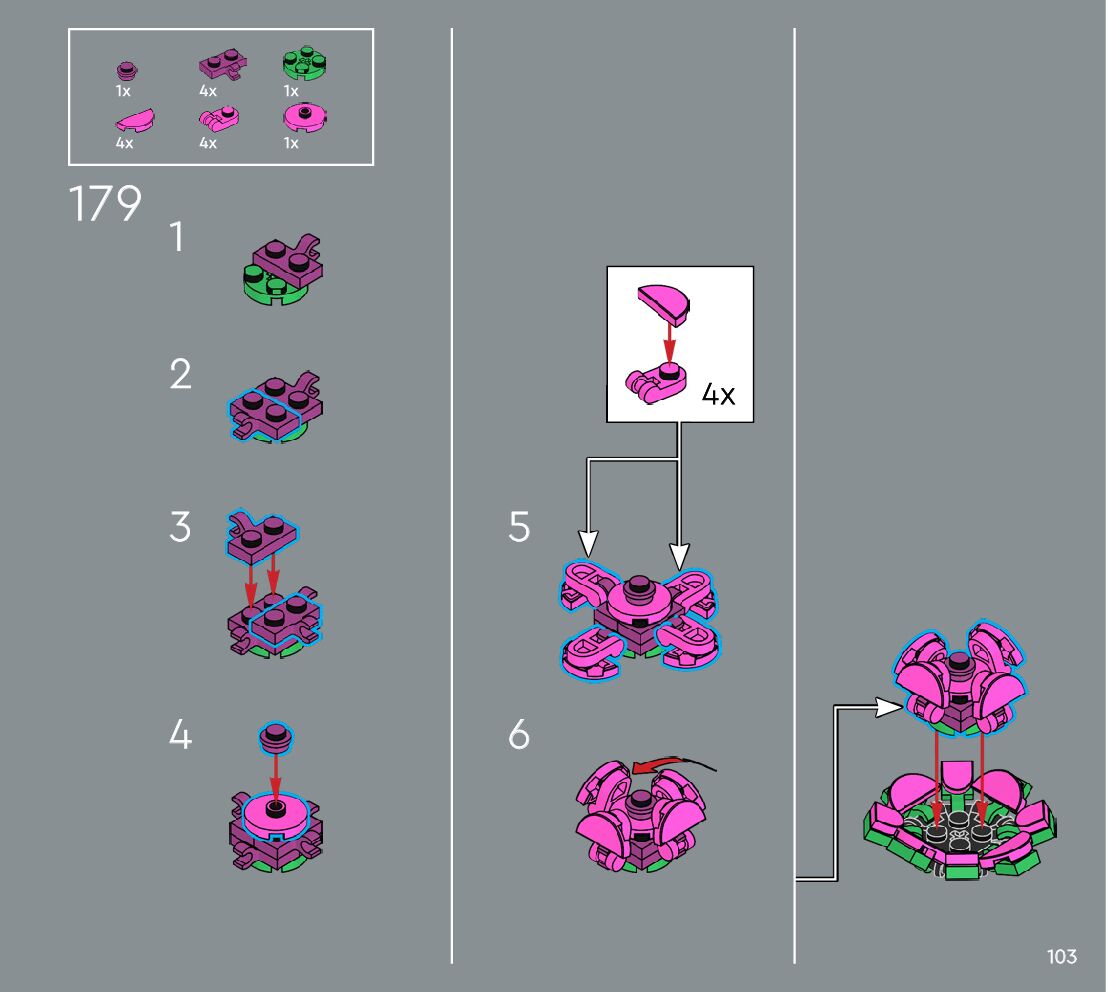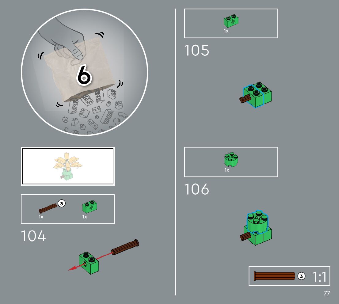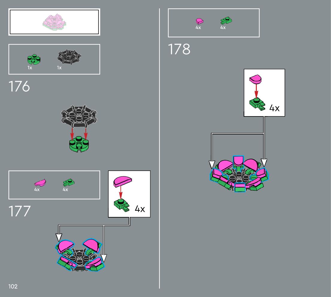 The assembly guide is prepared in a very understandable way for children and adult LEGO enthusiasts. A total of 112 picture galleries are shown, explaining the step-by-step construction stages for 1 different structures.
