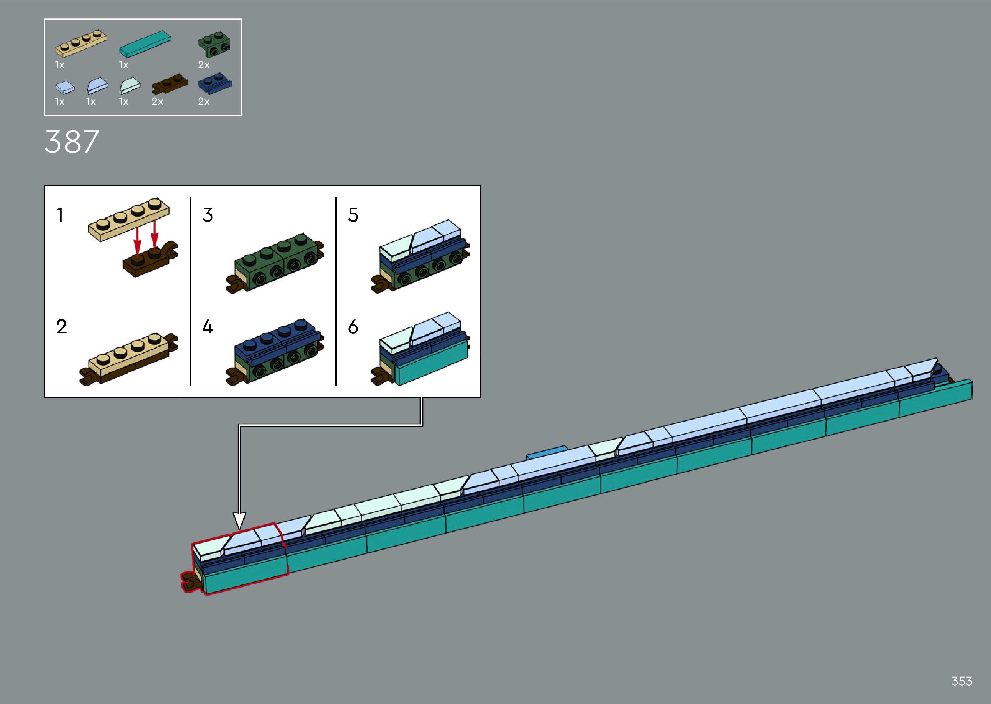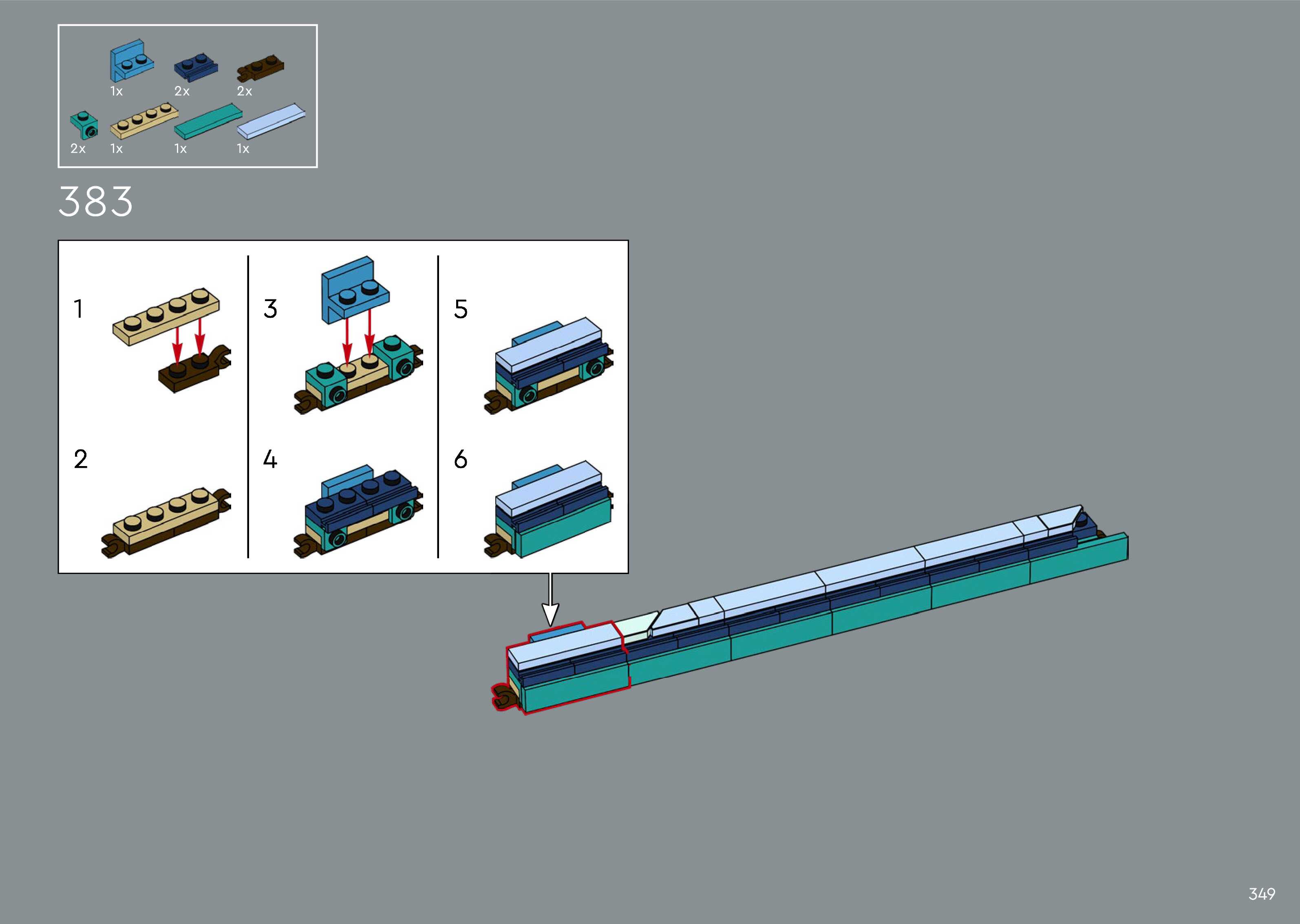 The assembly guide is prepared in a very understandable way for children and adult LEGO enthusiasts. A total of 103 picture galleries are shown, explaining the step-by-step construction stages for 1 different structures.