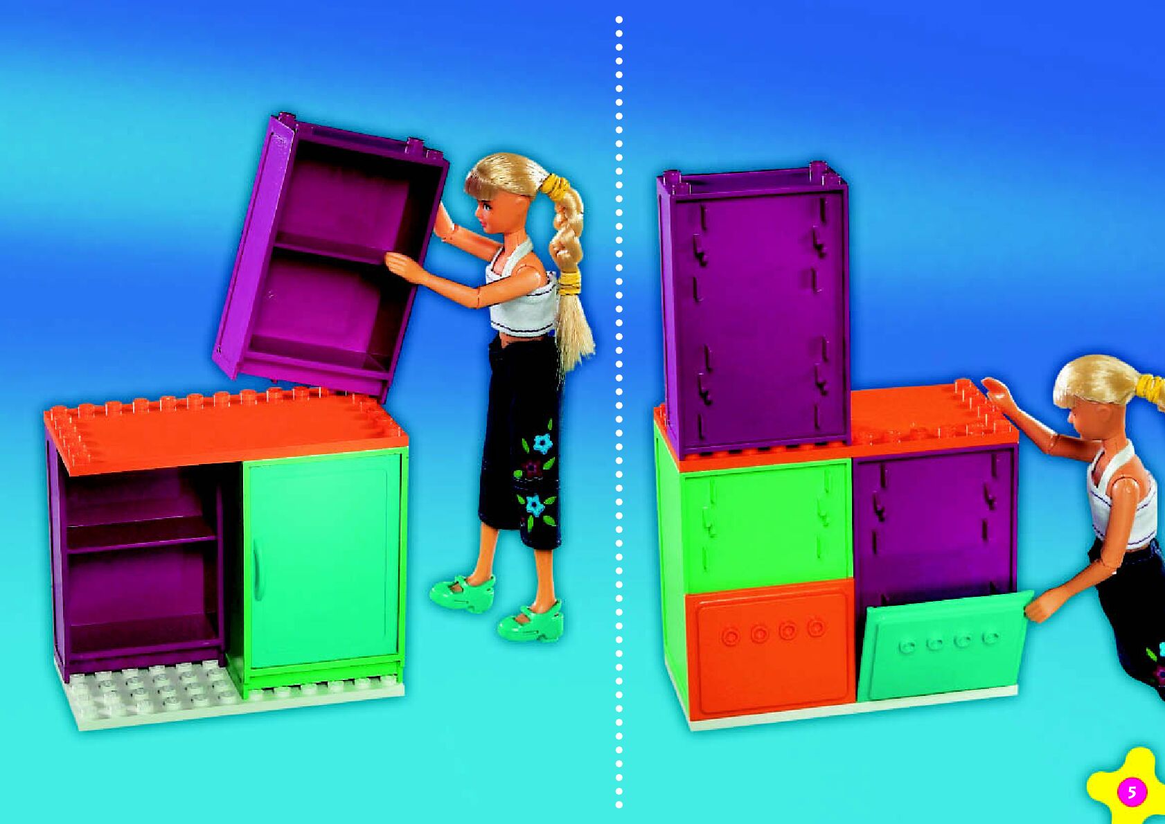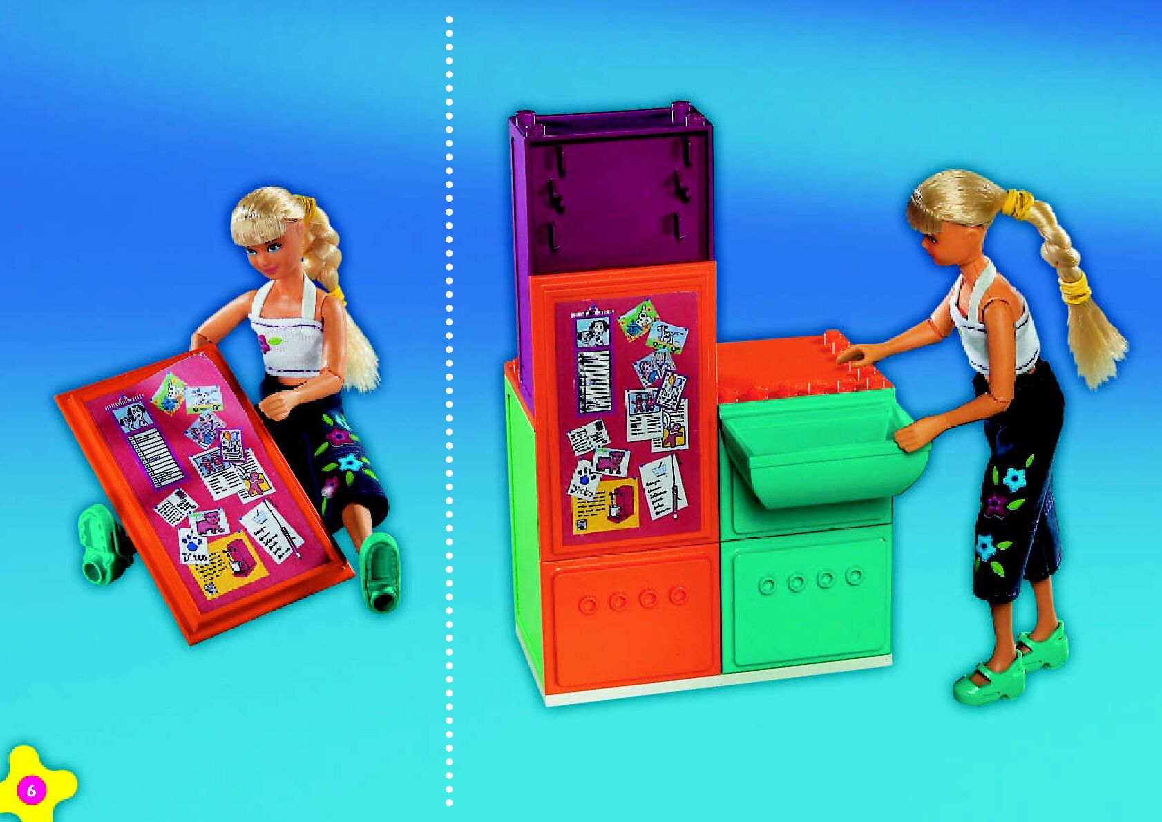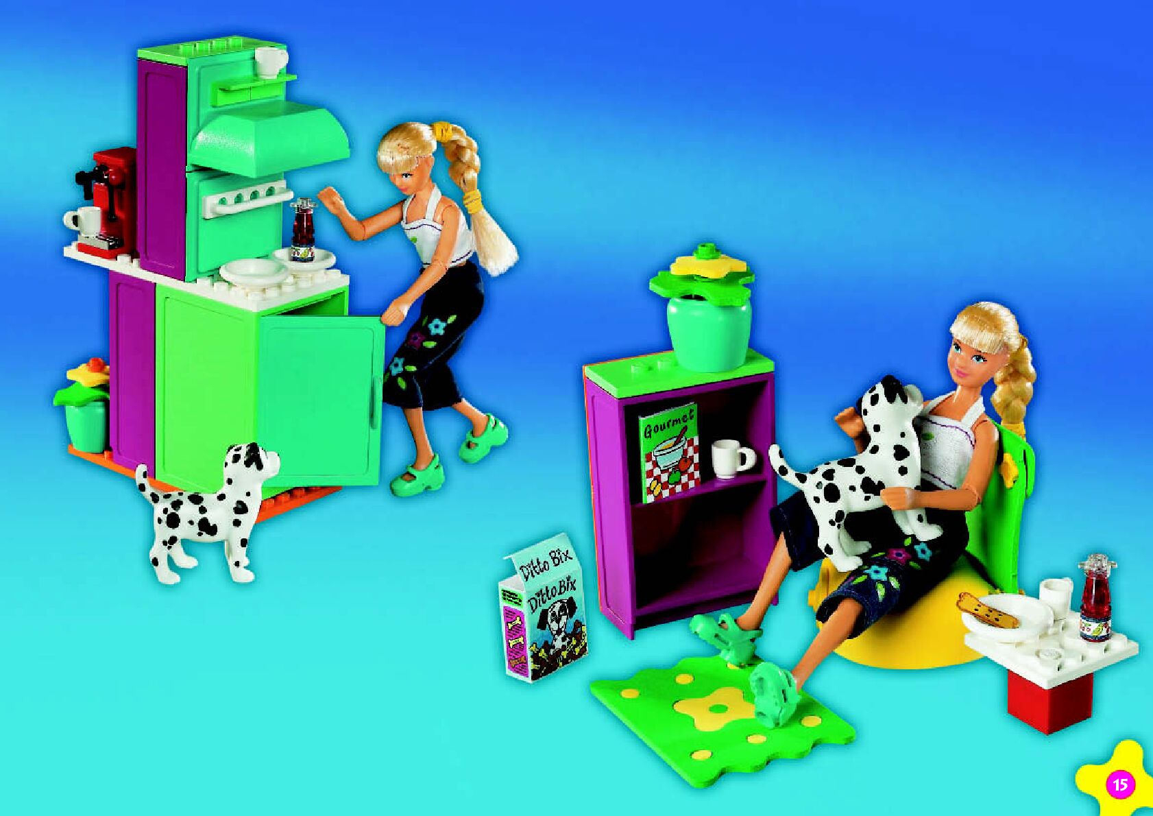 On this page you can find the original construction manual for the LEGO 3123 set. With the assembly manual you can easily learn how to build the 3123 Emma's Chill-out Kitchen step by step. The set was released in 2001.
