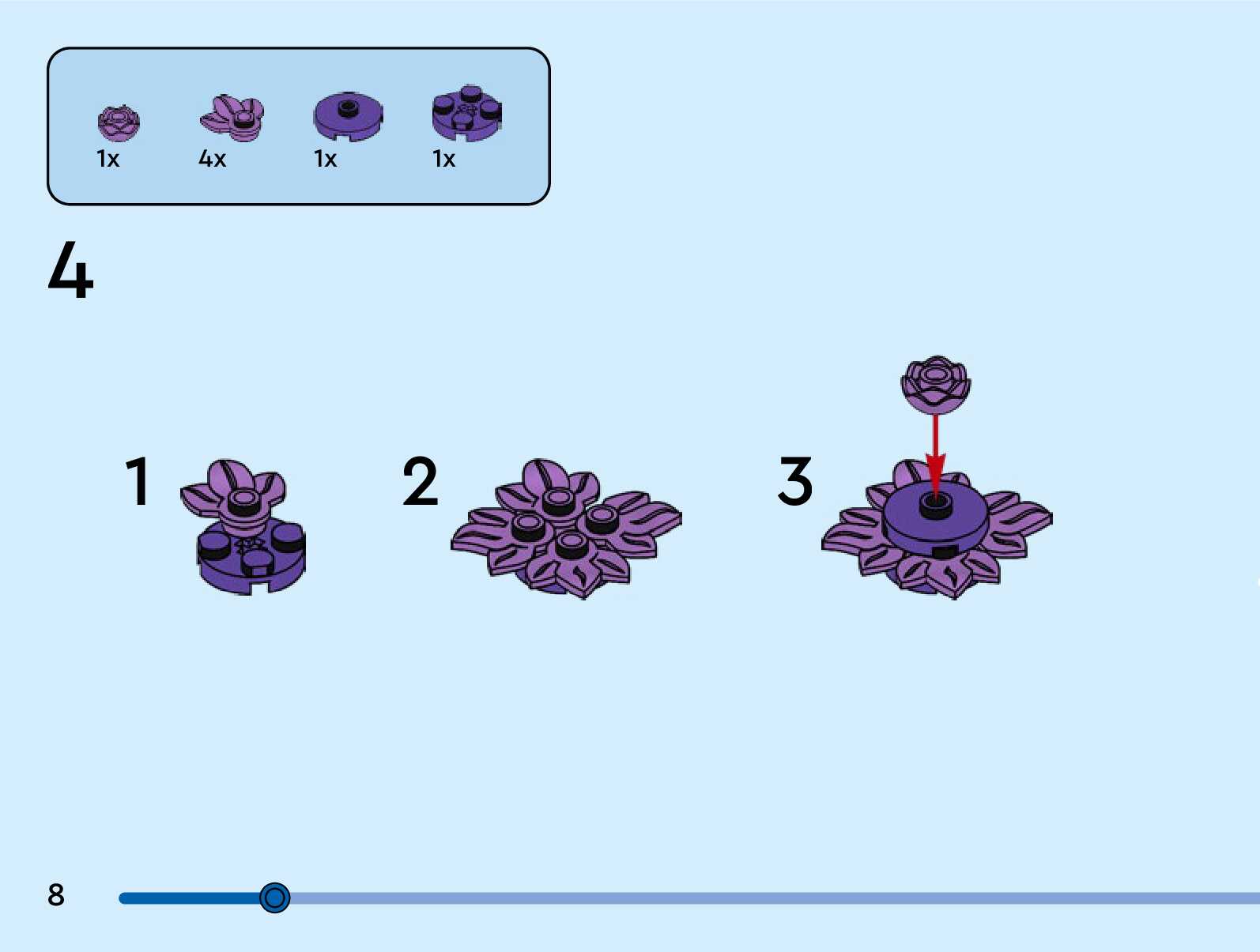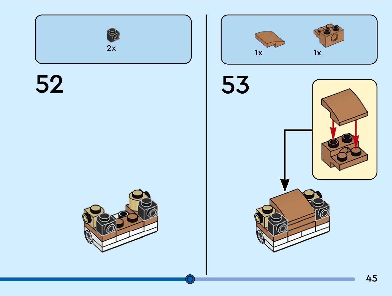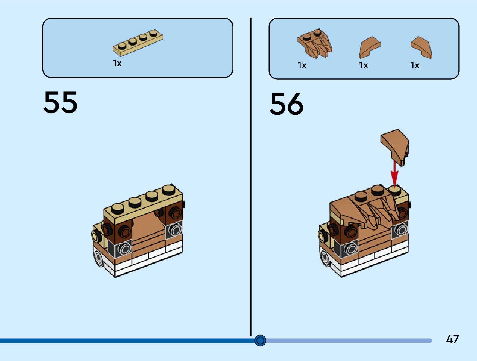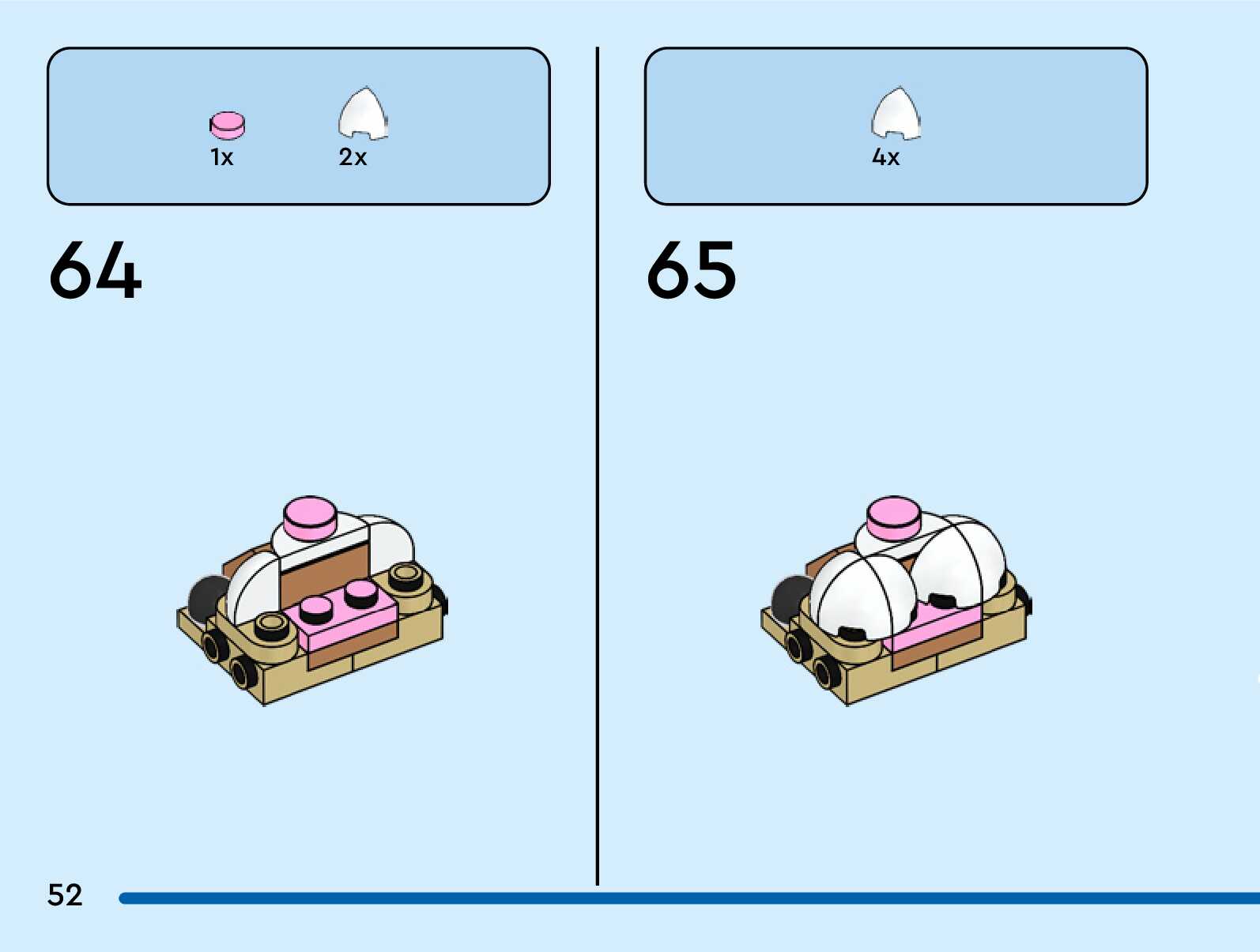 The assembly guide is prepared in a very understandable way for children and adult LEGO enthusiasts. A total of 124 picture galleries are shown, explaining the step-by-step construction stages for 3 different structures.