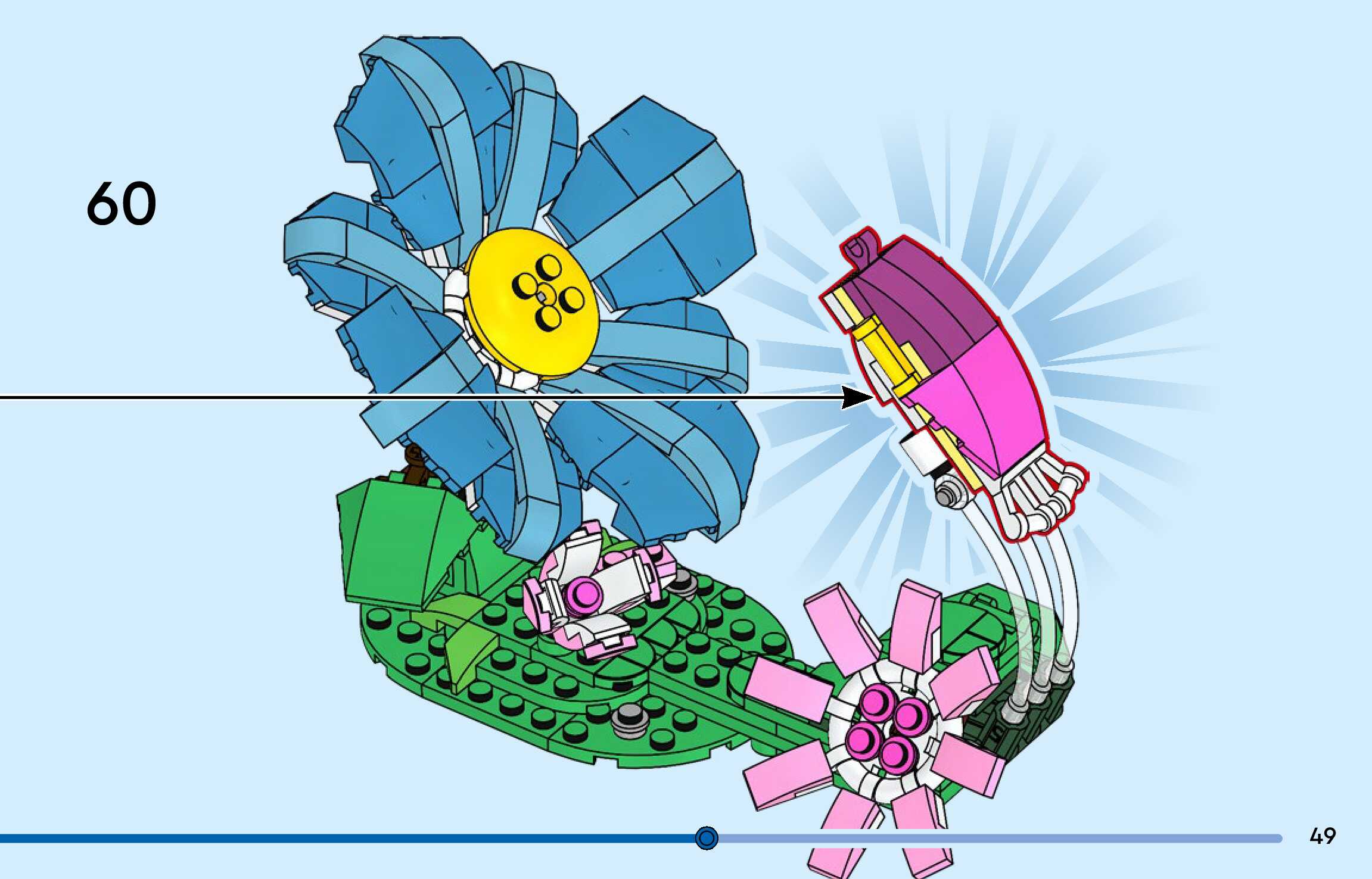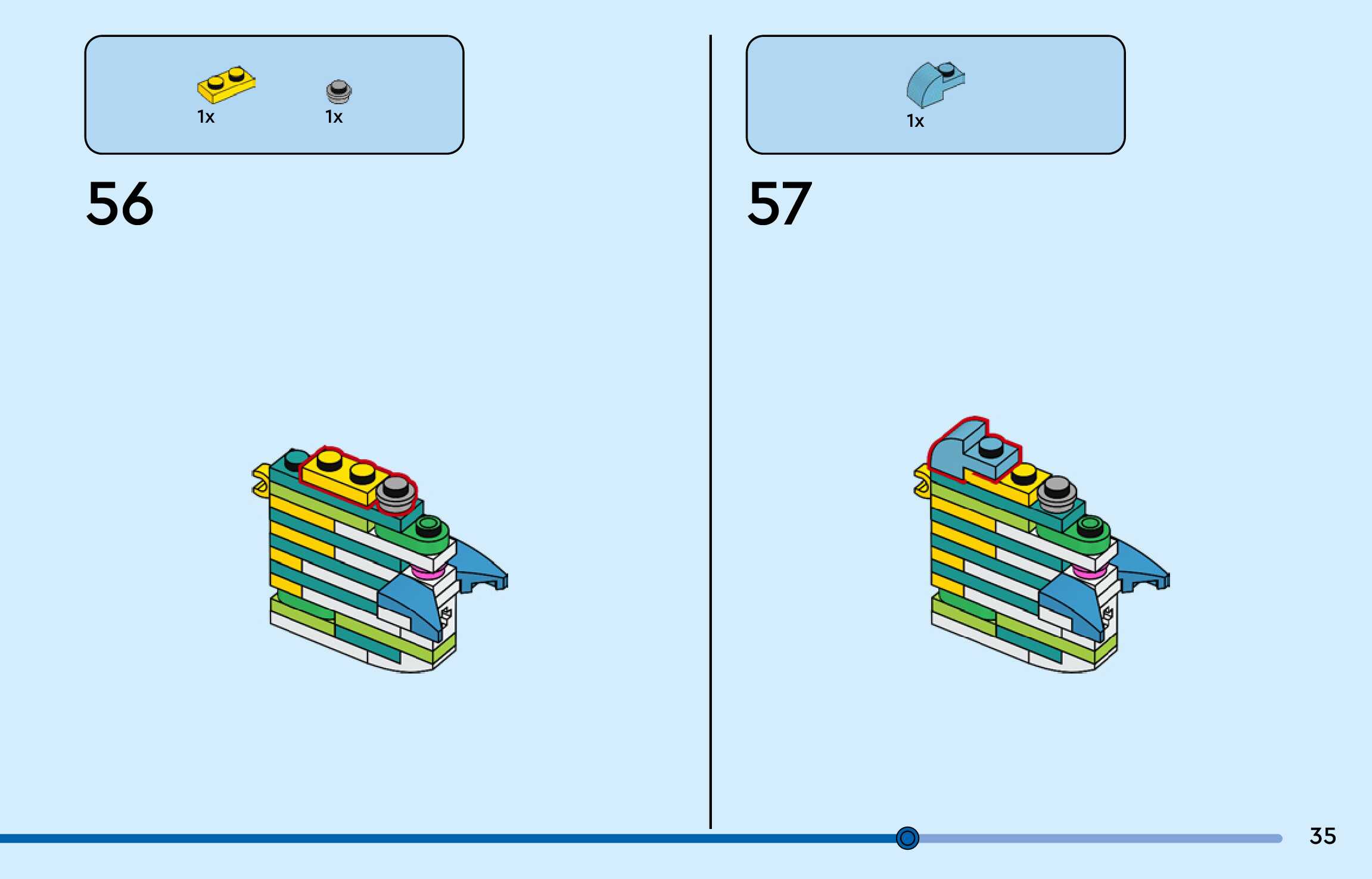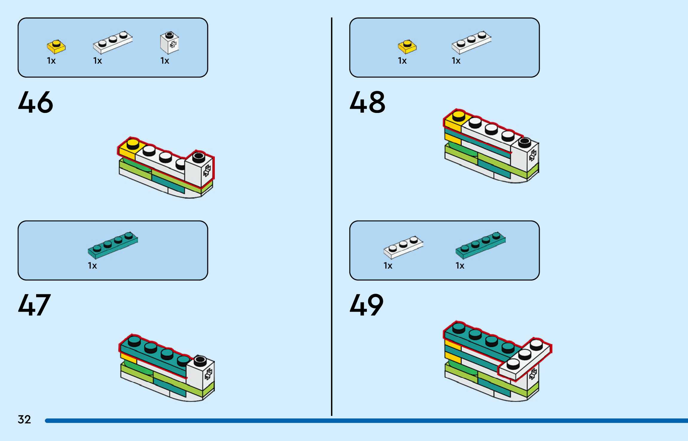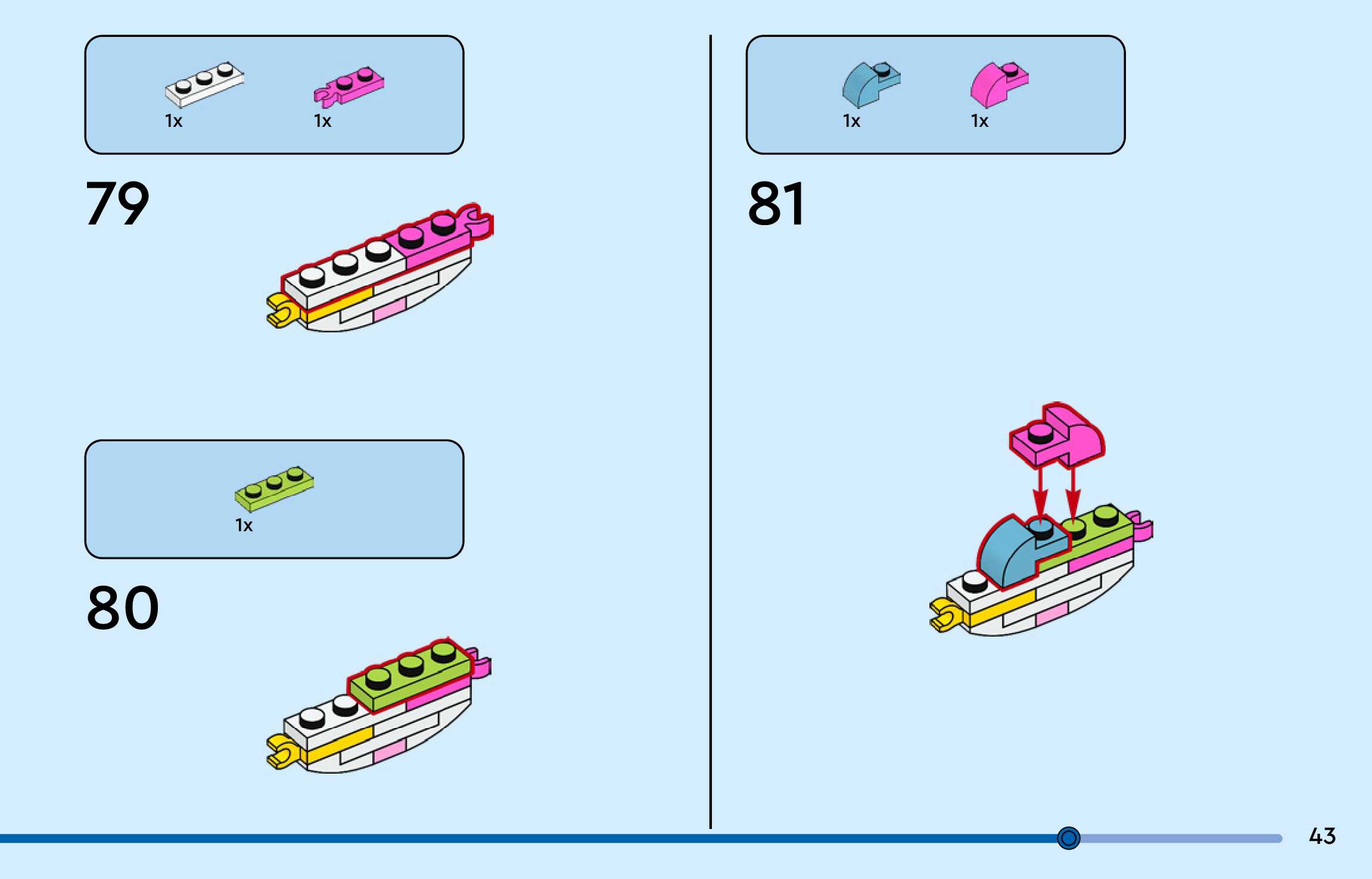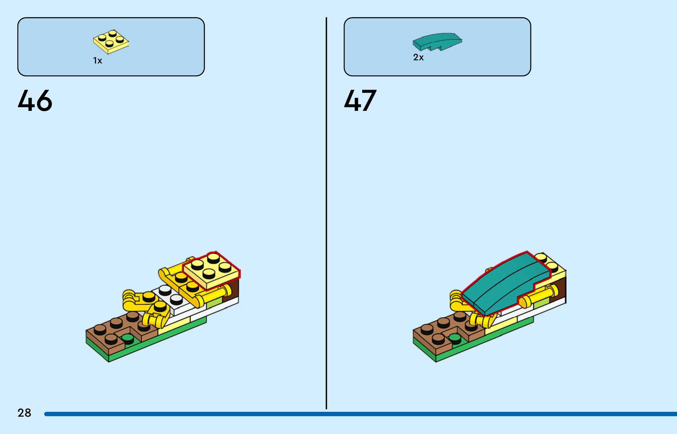 The assembly guide is prepared in a very understandable way for children and adult LEGO enthusiasts. A total of 156 picture galleries are shown, explaining the step-by-step construction stages for 3 different structures.