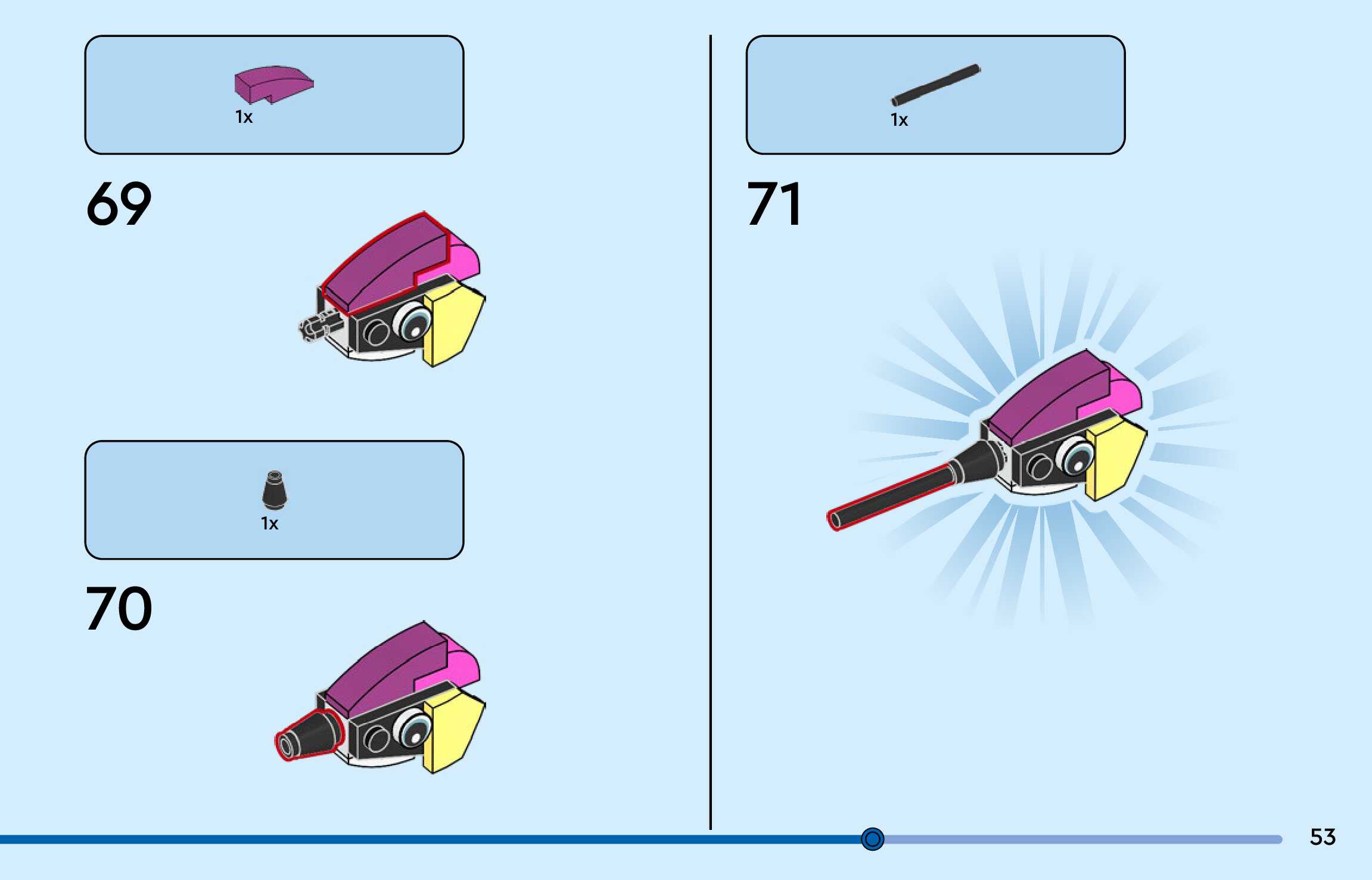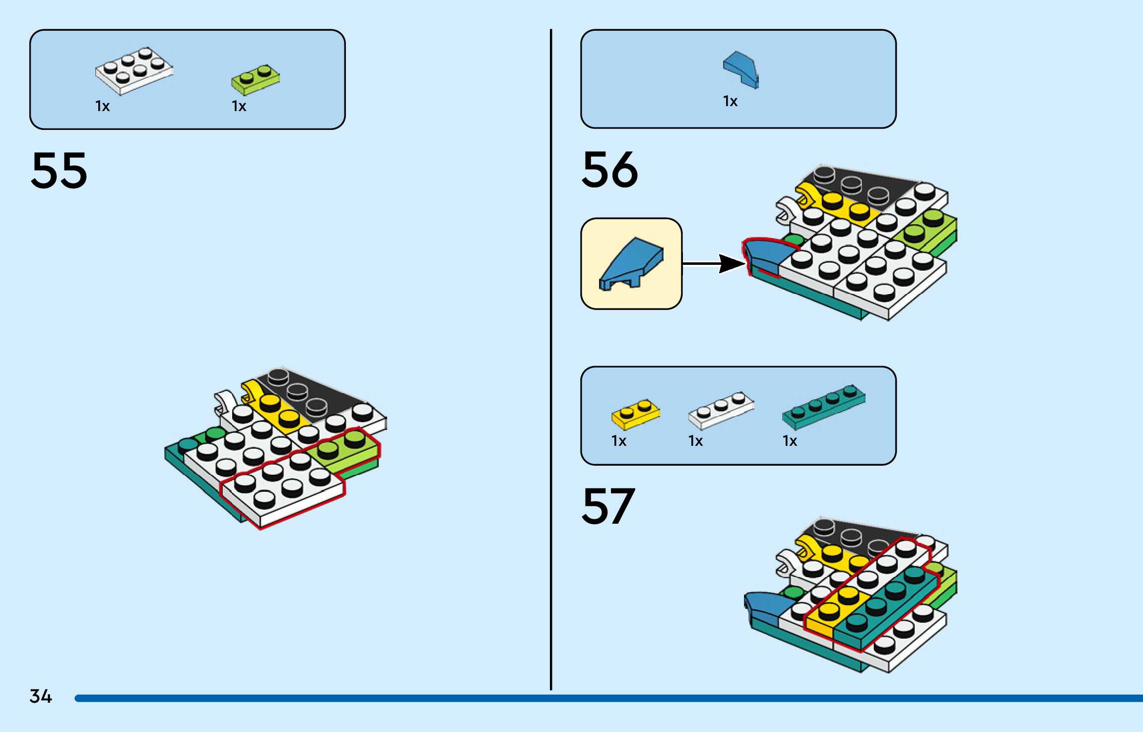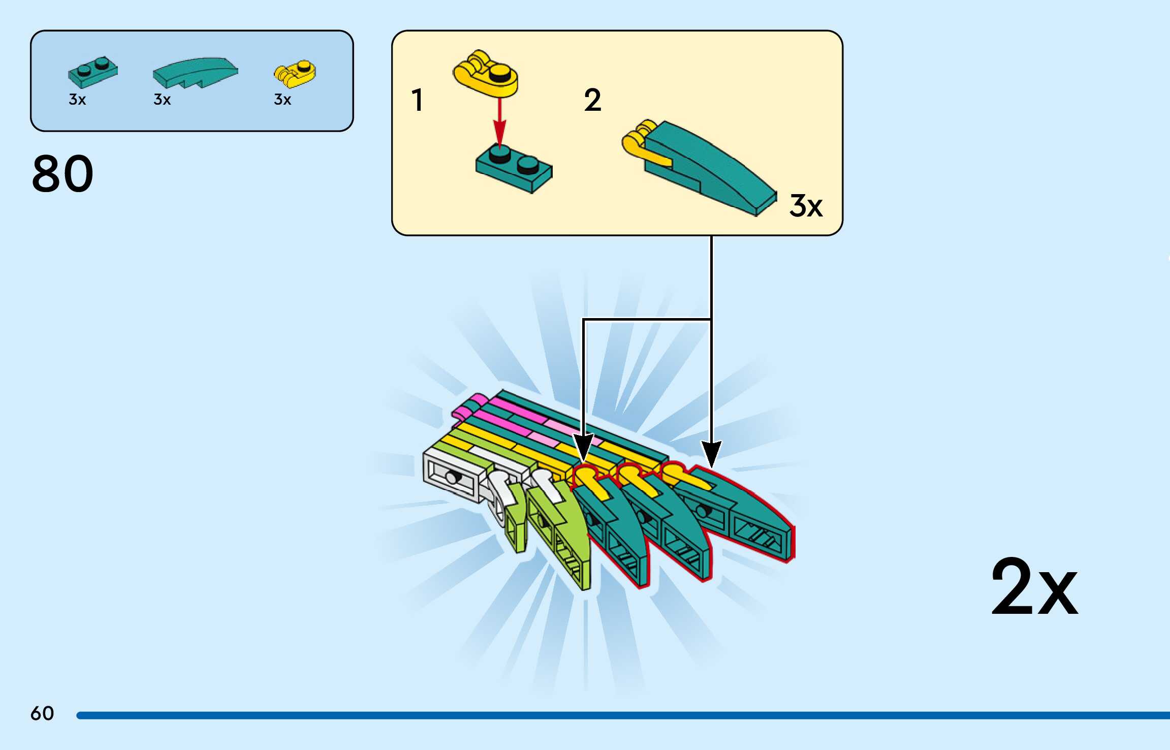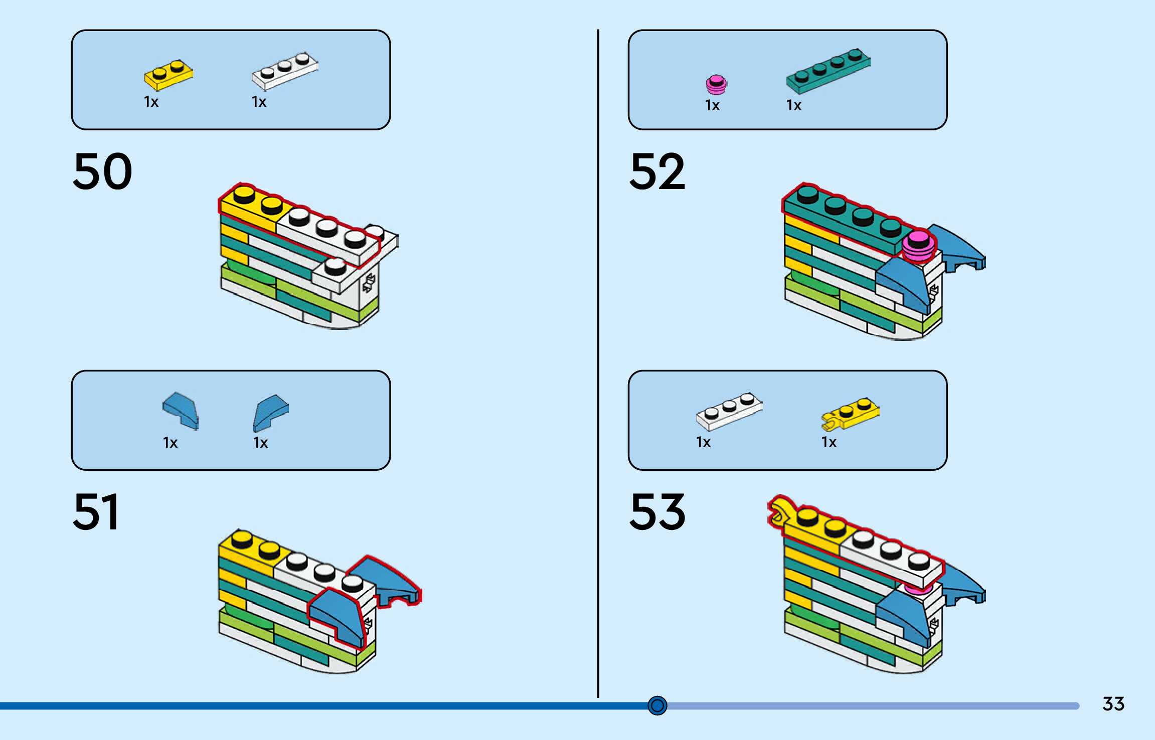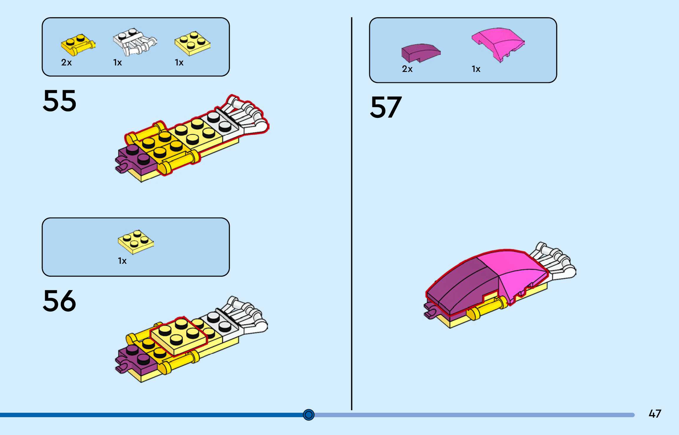 The assembly guide is prepared in a very understandable way for children and adult LEGO enthusiasts. A total of 156 picture galleries are shown, explaining the step-by-step construction stages for 3 different structures.