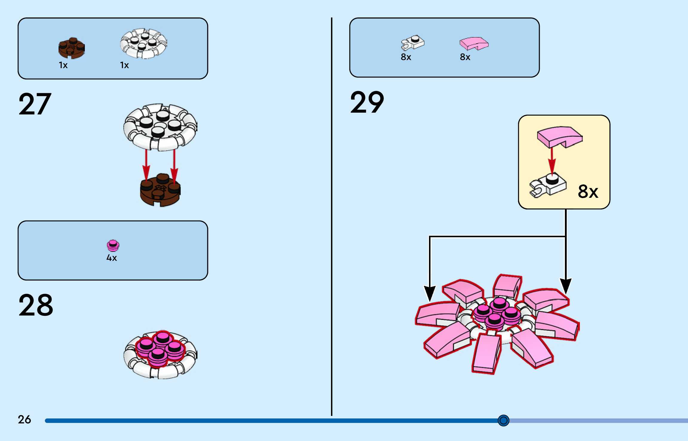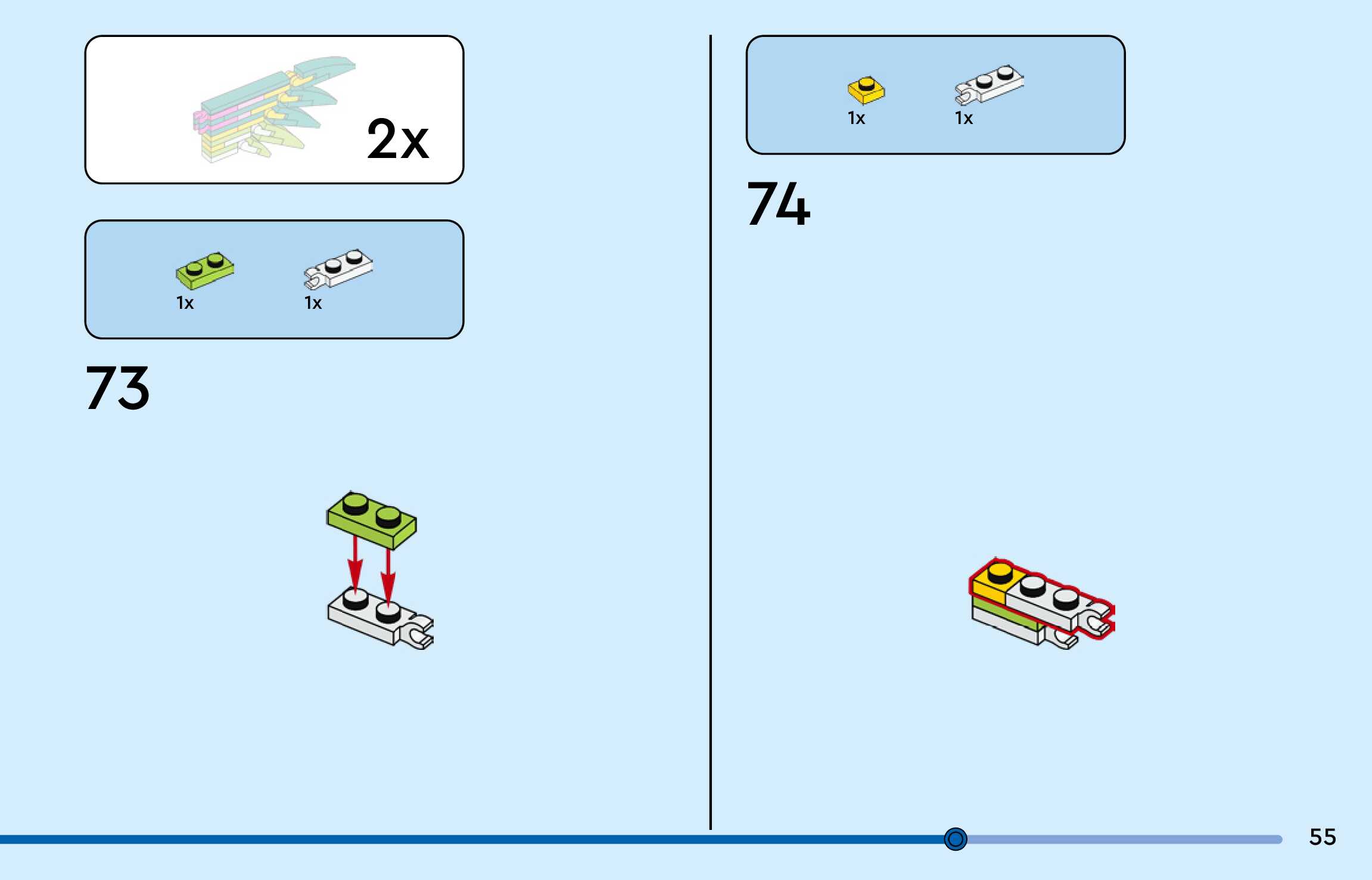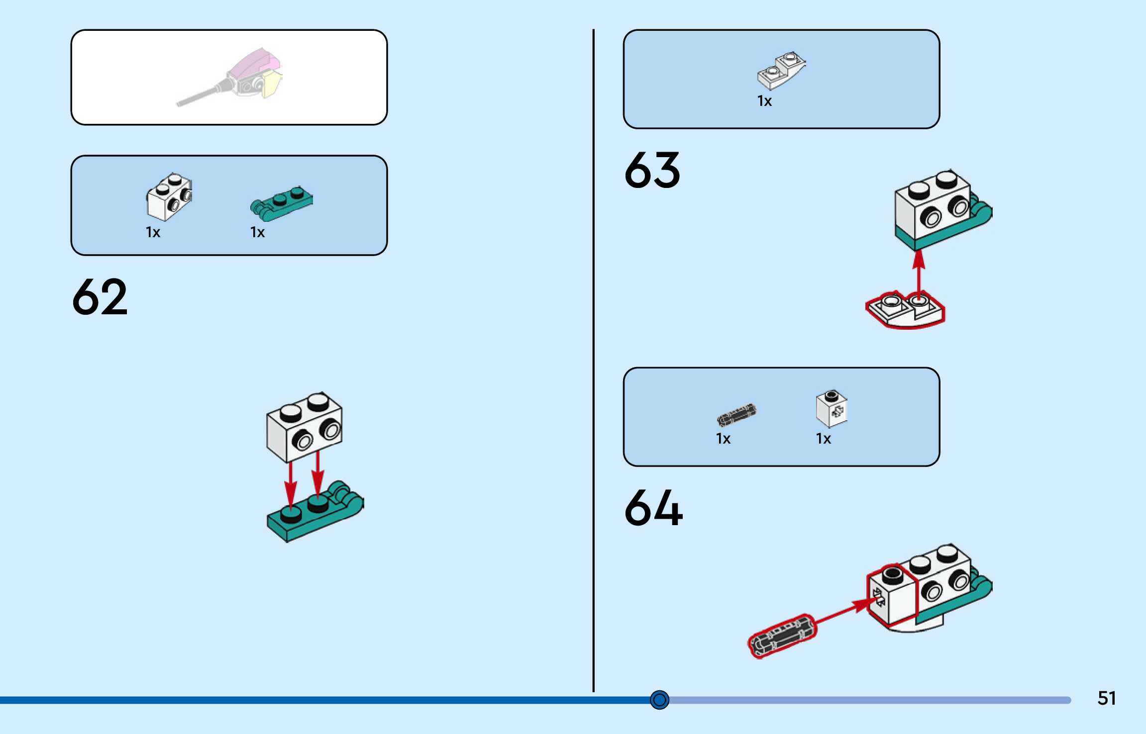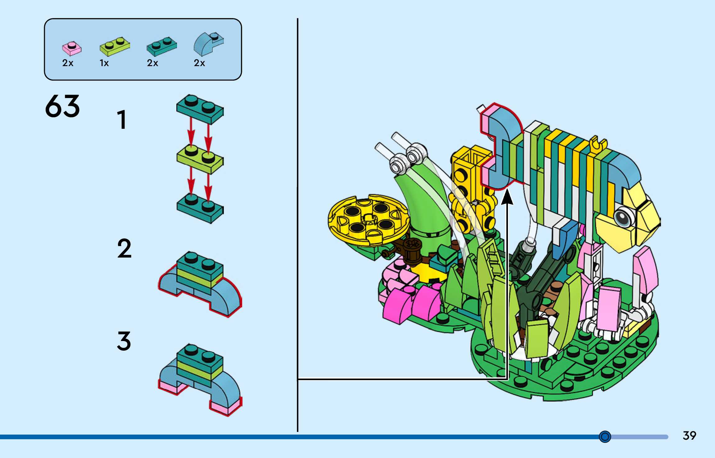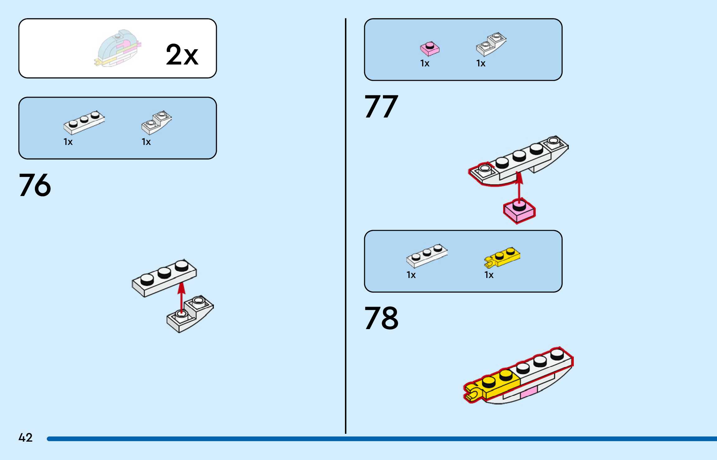 The assembly guide is prepared in a very understandable way for children and adult LEGO enthusiasts. A total of 156 picture galleries are shown, explaining the step-by-step construction stages for 3 different structures.
