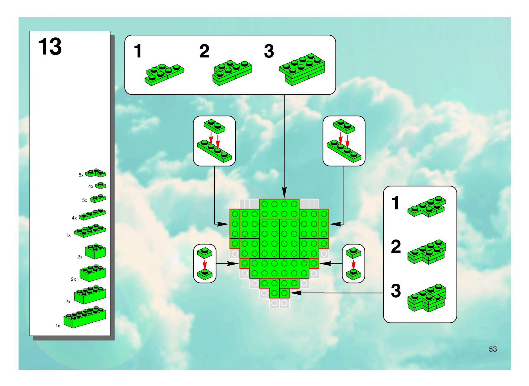 The assembly guide is prepared in a very understandable way for children and adult LEGO enthusiasts. A total of 56 picture galleries are shown, explaining the step-by-step construction stages for 1 different structures.