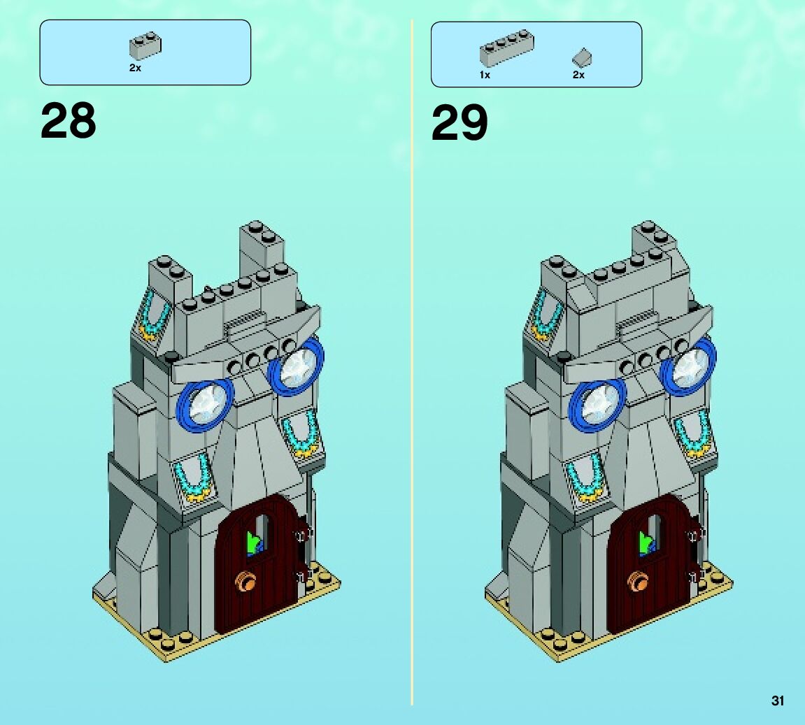 The assembly guide is prepared in a very understandable way for children and adult LEGO enthusiasts. A total of 84 picture galleries are shown, explaining the step-by-step construction stages for 1 different structures.