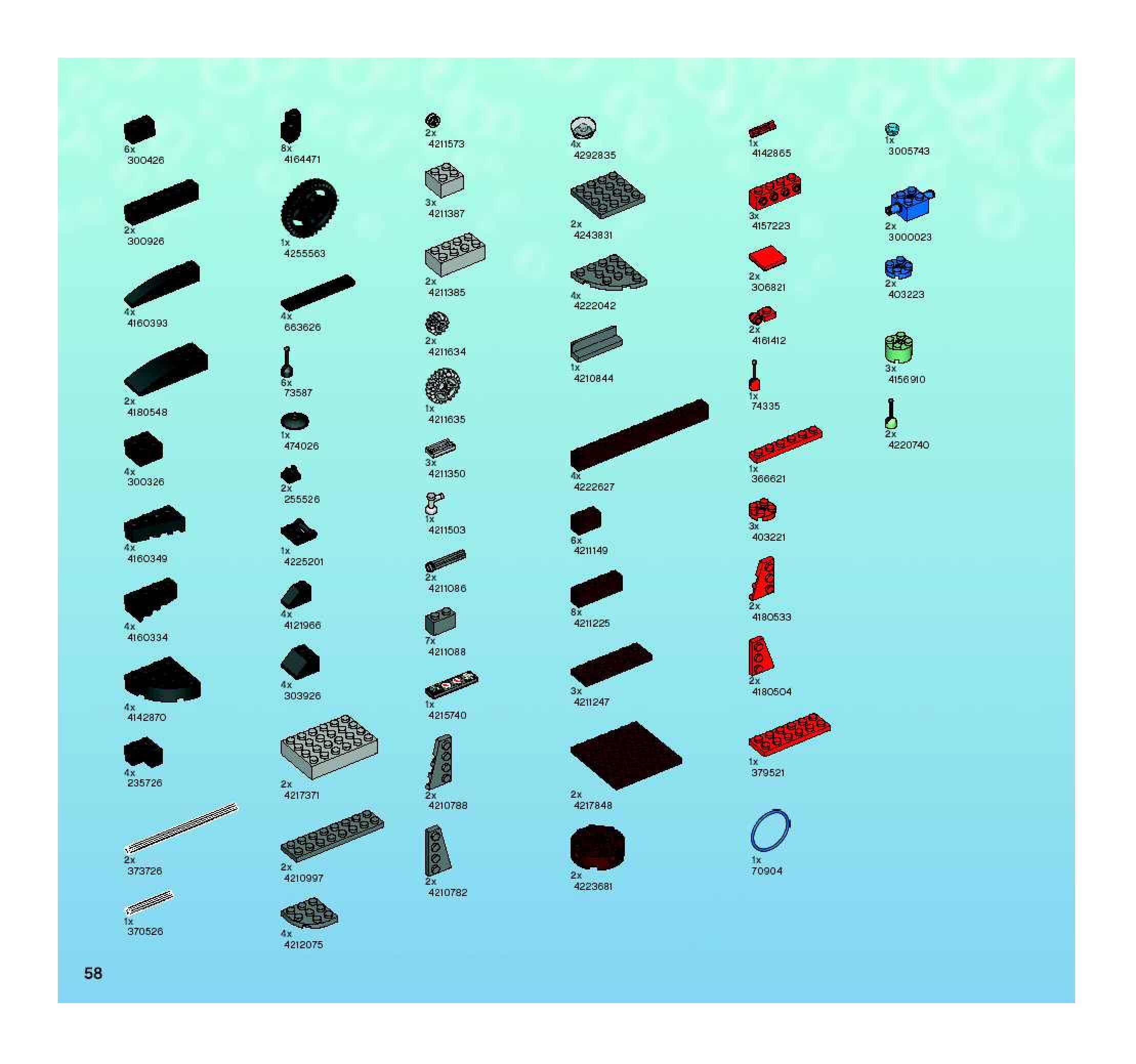 The assembly guide is prepared in a very understandable way for children and adult LEGO enthusiasts. A total of 60 picture galleries are shown, explaining the step-by-step construction stages for 1 different structures.