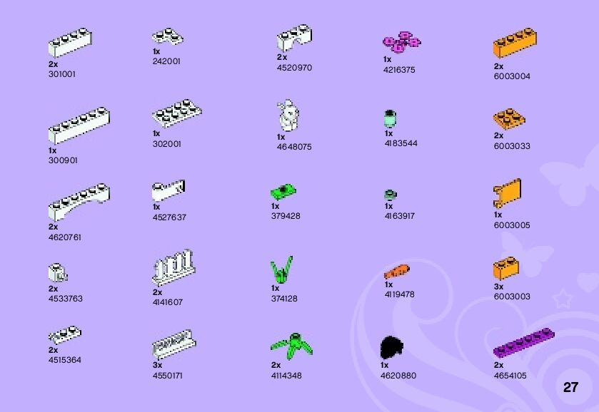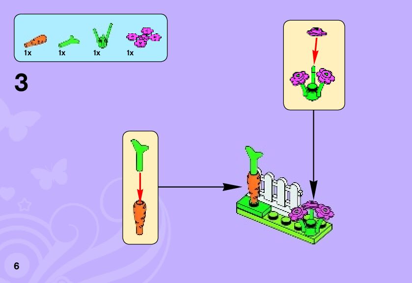 This page shares information about LEGO 3938 Andrea's Bunny House manual, LEGO 3938 PDF instructions, LEGO 3938 Andrea's Bunny House building guide online, How to build 3938 Andrea's Bunny House LEGO.