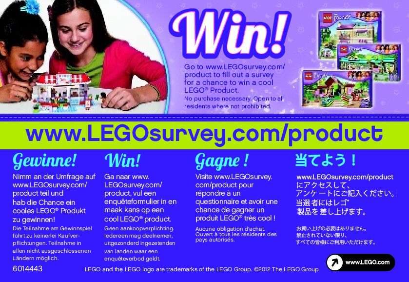On this page you can find the original construction manual for the LEGO 3938 set. With the assembly manual you can easily learn how to build the 3938 Andrea's Bunny House step by step. The set was released in 2012.