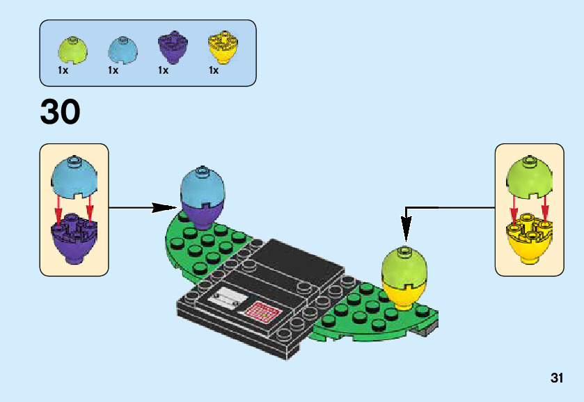 The assembly guide is prepared in a very understandable way for children and adult LEGO enthusiasts. A total of 36 picture galleries are shown, explaining the step-by-step construction stages for 1 different structures.