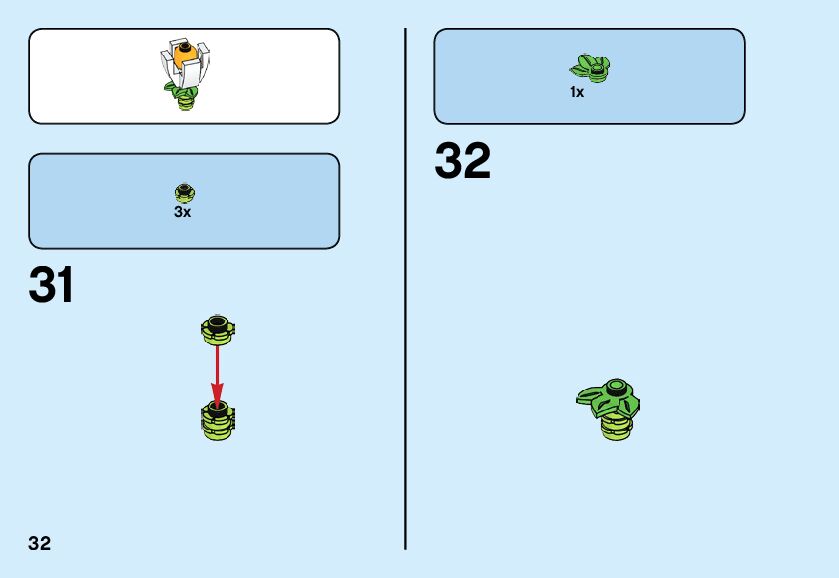 The assembly guide is prepared in a very understandable way for children and adult LEGO enthusiasts. A total of 44 picture galleries are shown, explaining the step-by-step construction stages for 1 different structures.