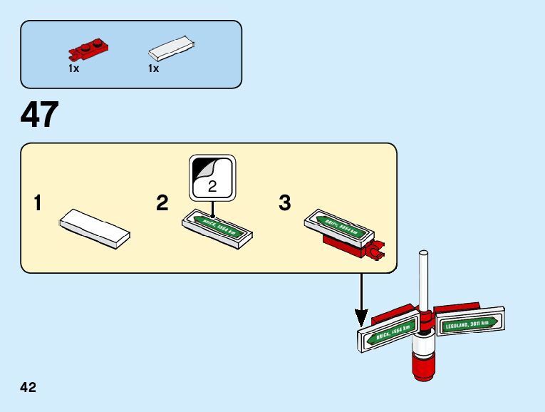 The assembly guide is prepared in a very understandable way for children and adult LEGO enthusiasts. A total of 96 picture galleries are shown, explaining the step-by-step construction stages for 2 different structures.