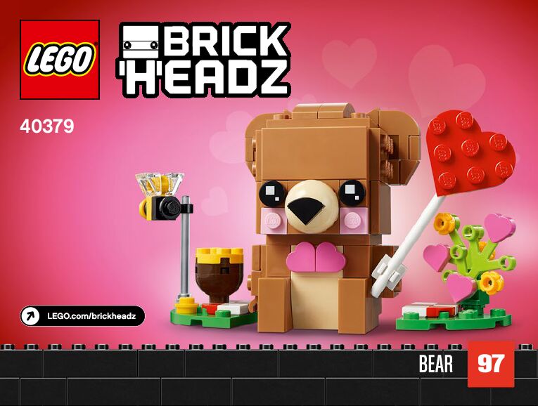 This page shares information about LEGO 40379 Valentine's Bear manual, LEGO 40379 PDF instructions, LEGO 40379 Valentine's Bear building guide online, How to build 40379 Valentine's Bear LEGO.