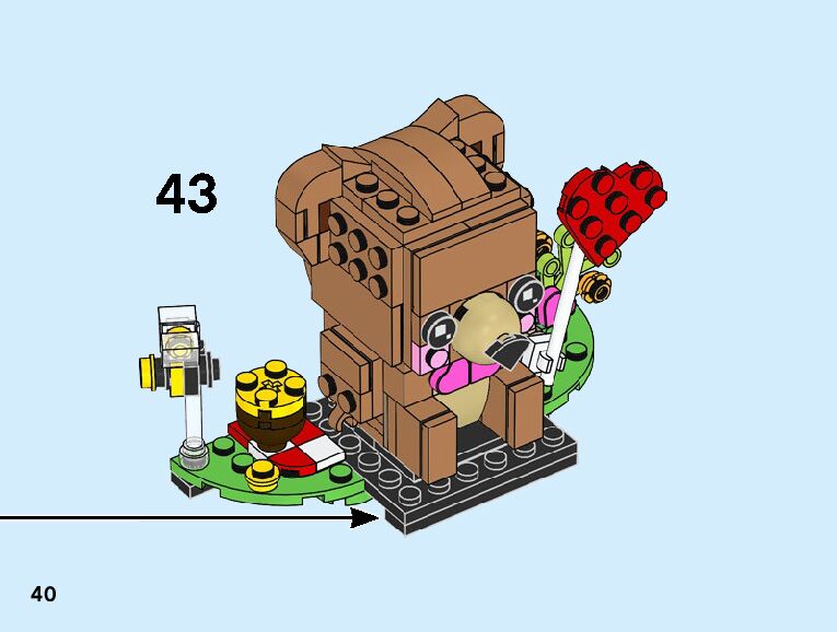 On this page you can find the original construction manual for the LEGO 40379 set. With the assembly manual you can easily learn how to build the 40379 Valentine's Bear step by step. The set was released in 2020.