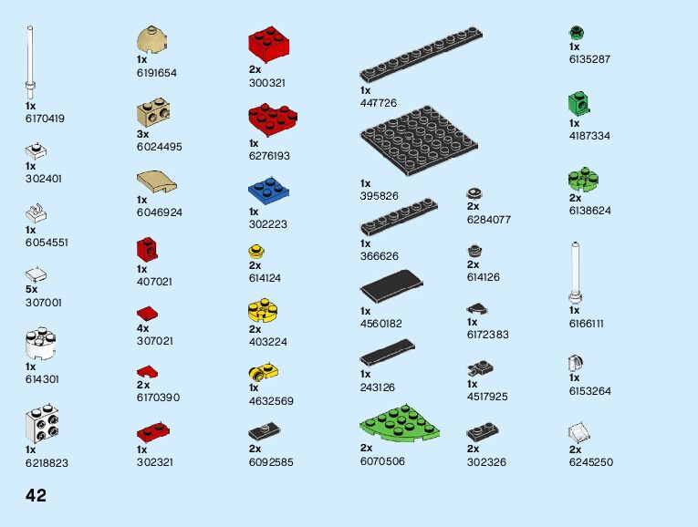 The assembly guide is prepared in a very understandable way for children and adult LEGO enthusiasts. A total of 44 picture galleries are shown, explaining the step-by-step construction stages for 1 different structures.