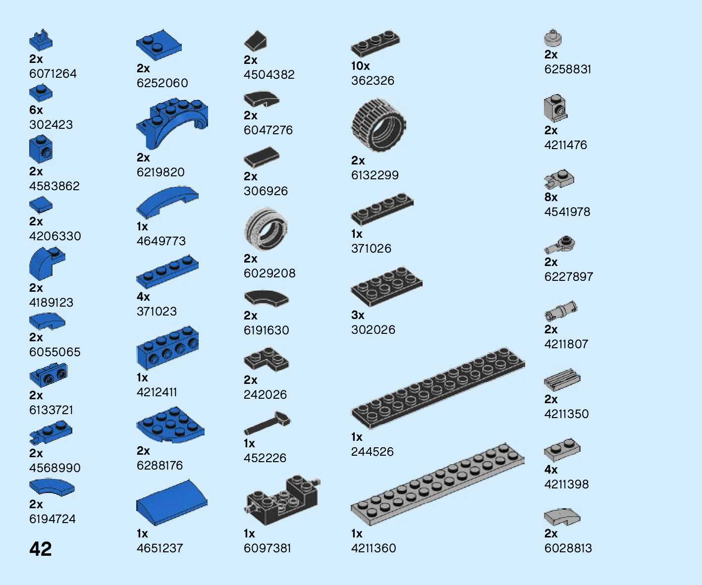 The assembly guide is prepared in a very understandable way for children and adult LEGO enthusiasts. A total of 44 picture galleries are shown, explaining the step-by-step construction stages for 1 different structures.