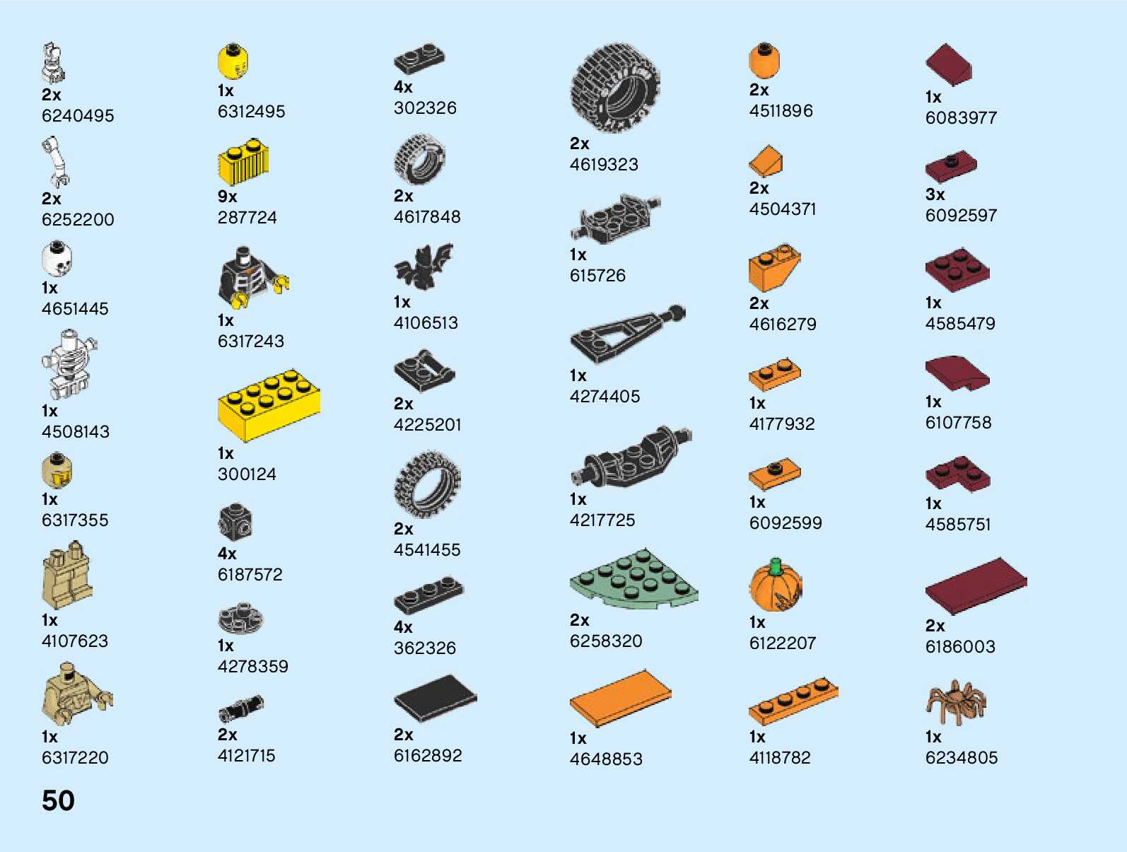 This page shares information about LEGO Halloween Hayride manual, LEGO 40423 PDF instructions, LEGO Halloween Hayride building guide online, How to build Halloween Hayride LEGO.