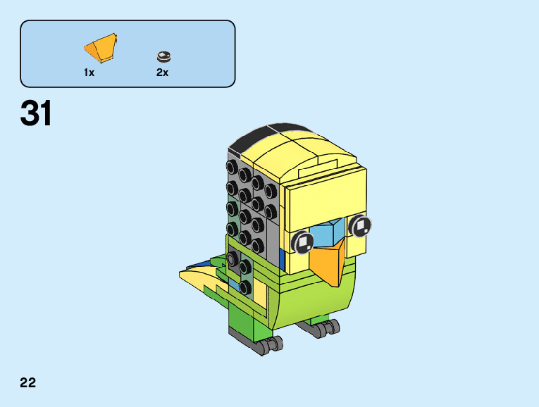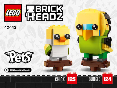 This page shares information about LEGO 40443 Budgie manual, LEGO 40443 PDF instructions, LEGO 40443 Budgie building guide online, How to build 40443 Budgie LEGO.