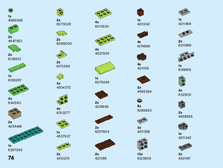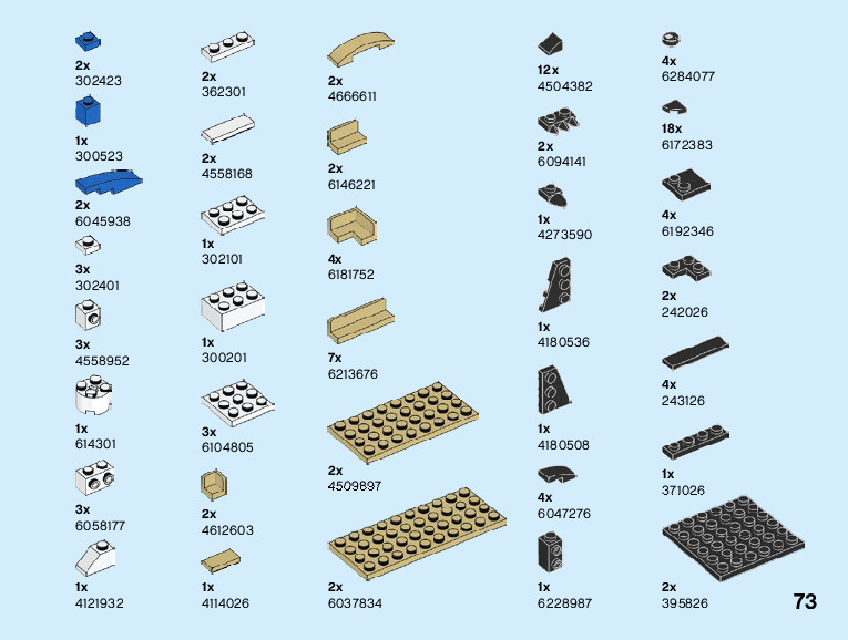 The assembly guide is prepared in a very understandable way for children and adult LEGO enthusiasts. A total of 76 picture galleries are shown, explaining the step-by-step construction stages for 1 different structures.