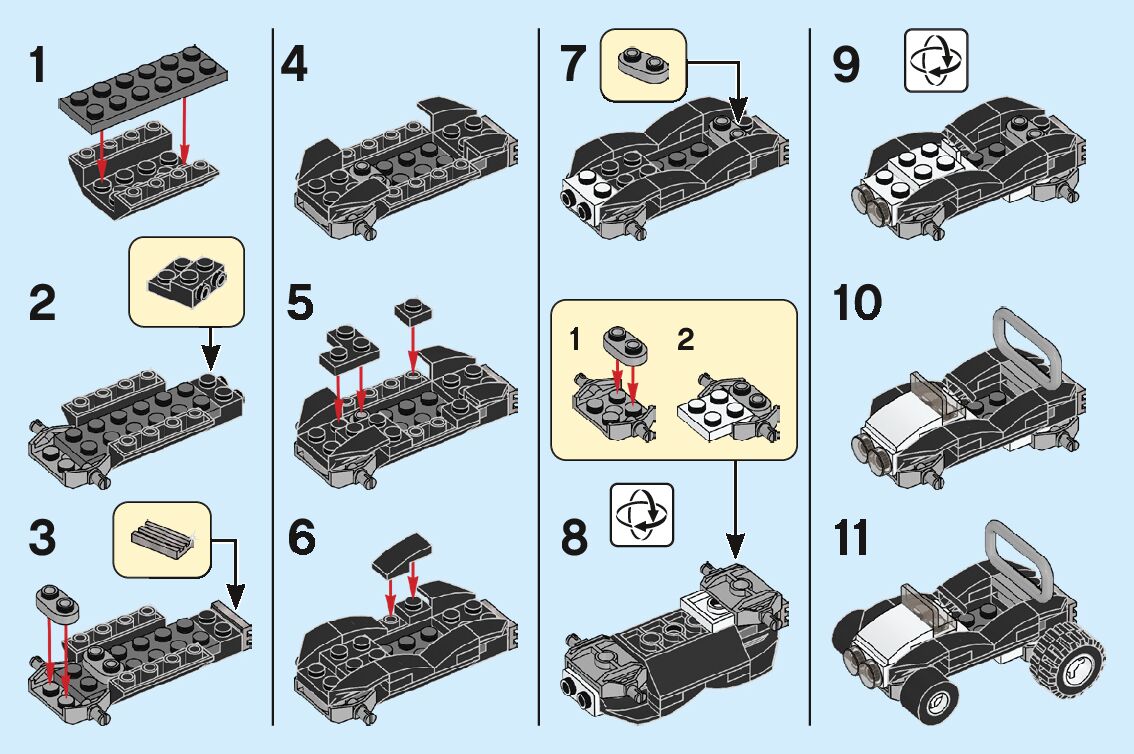 The assembly guide is prepared in a very understandable way for children and adult LEGO enthusiasts. A total of 2 picture galleries are shown, explaining the step-by-step construction stages for 1 different structures.
