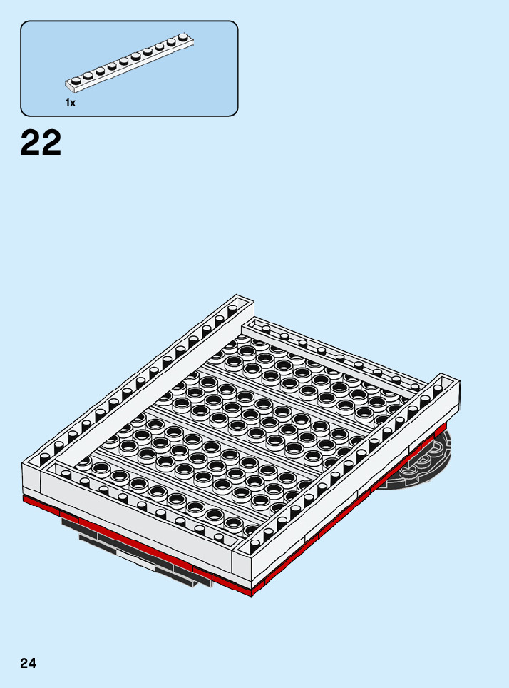 The assembly guide is prepared in a very understandable way for children and adult LEGO enthusiasts. A total of 44 picture galleries are shown, explaining the step-by-step construction stages for 1 different structures.