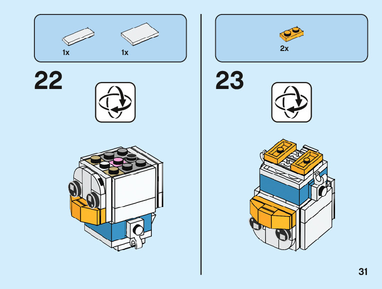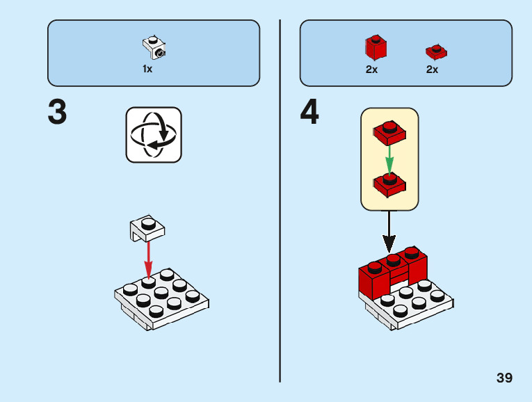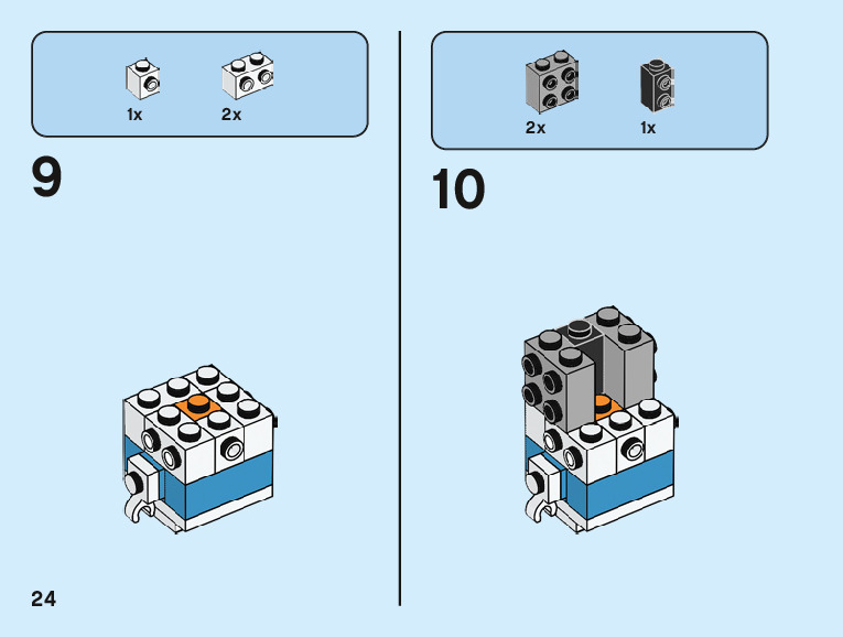 The assembly guide is prepared in a very understandable way for children and adult LEGO enthusiasts. A total of 96 picture galleries are shown, explaining the step-by-step construction stages for 2 different structures.