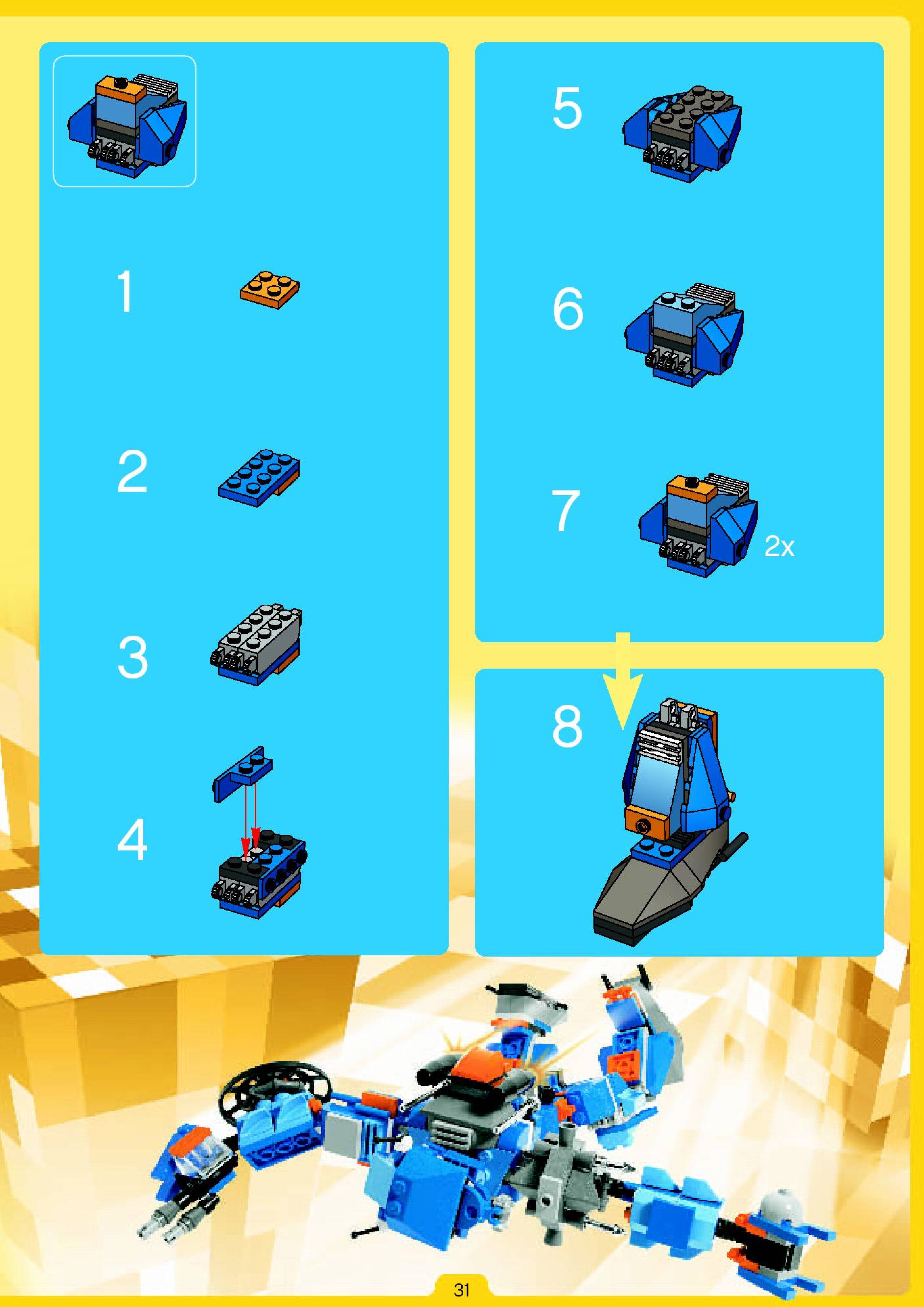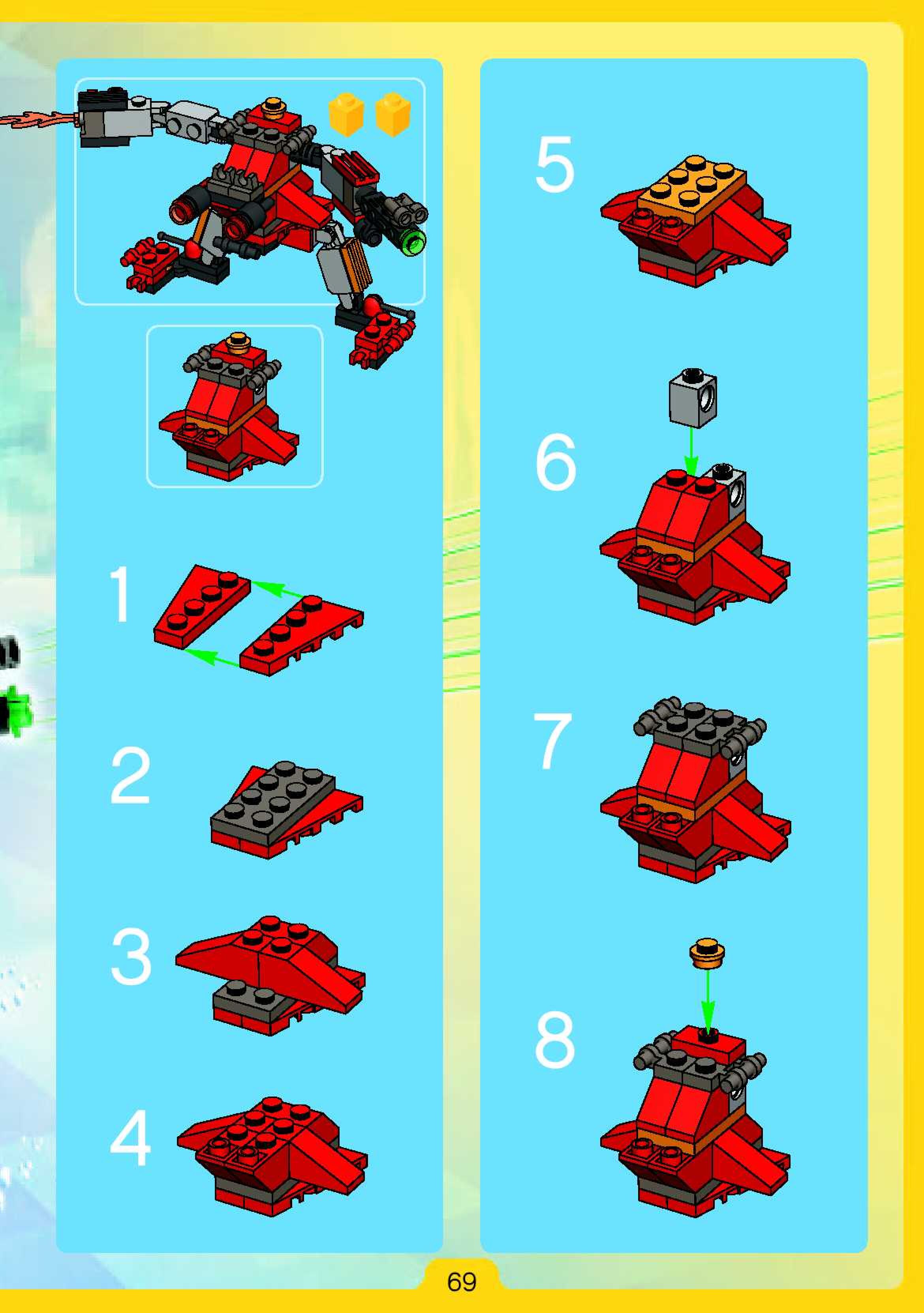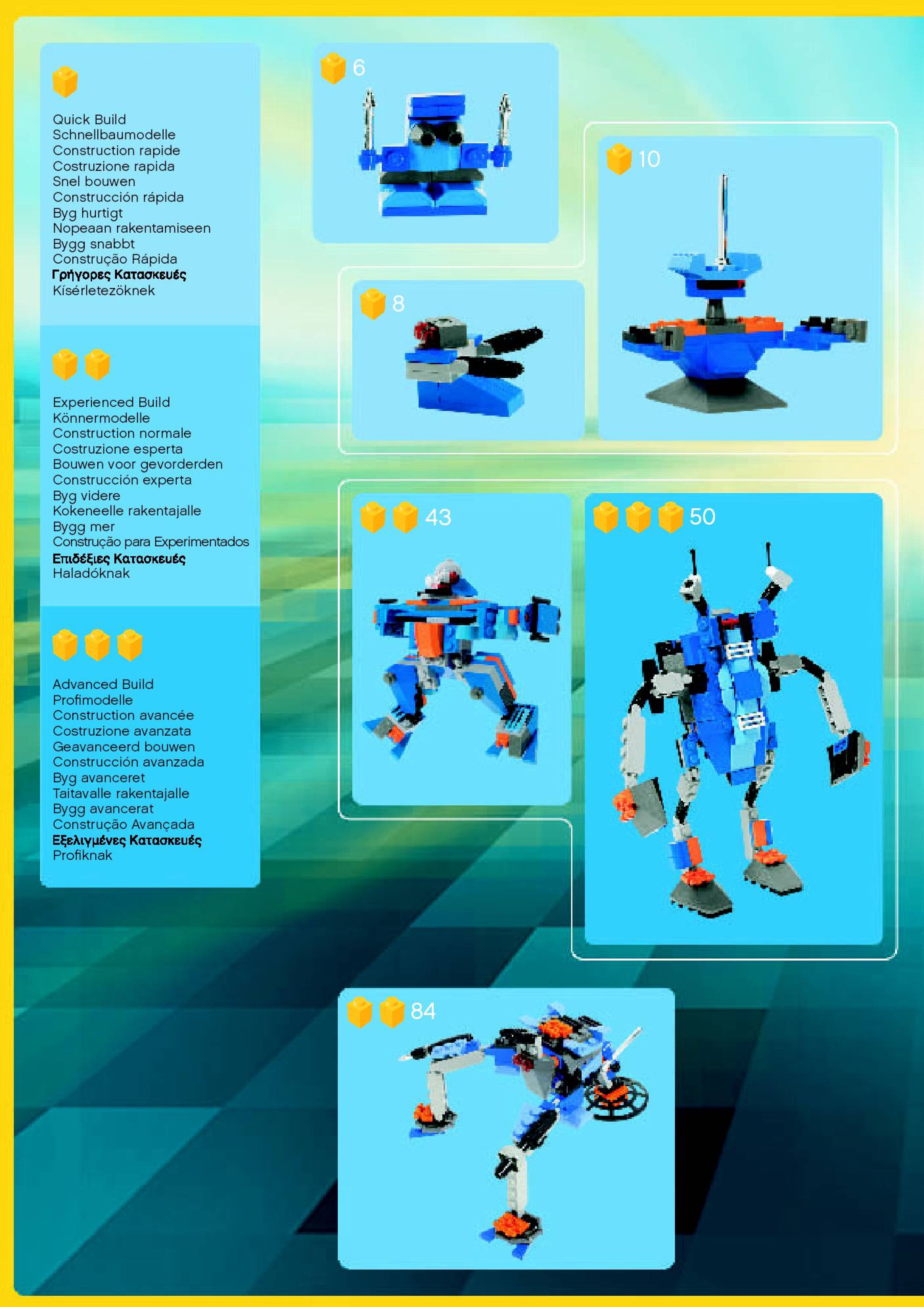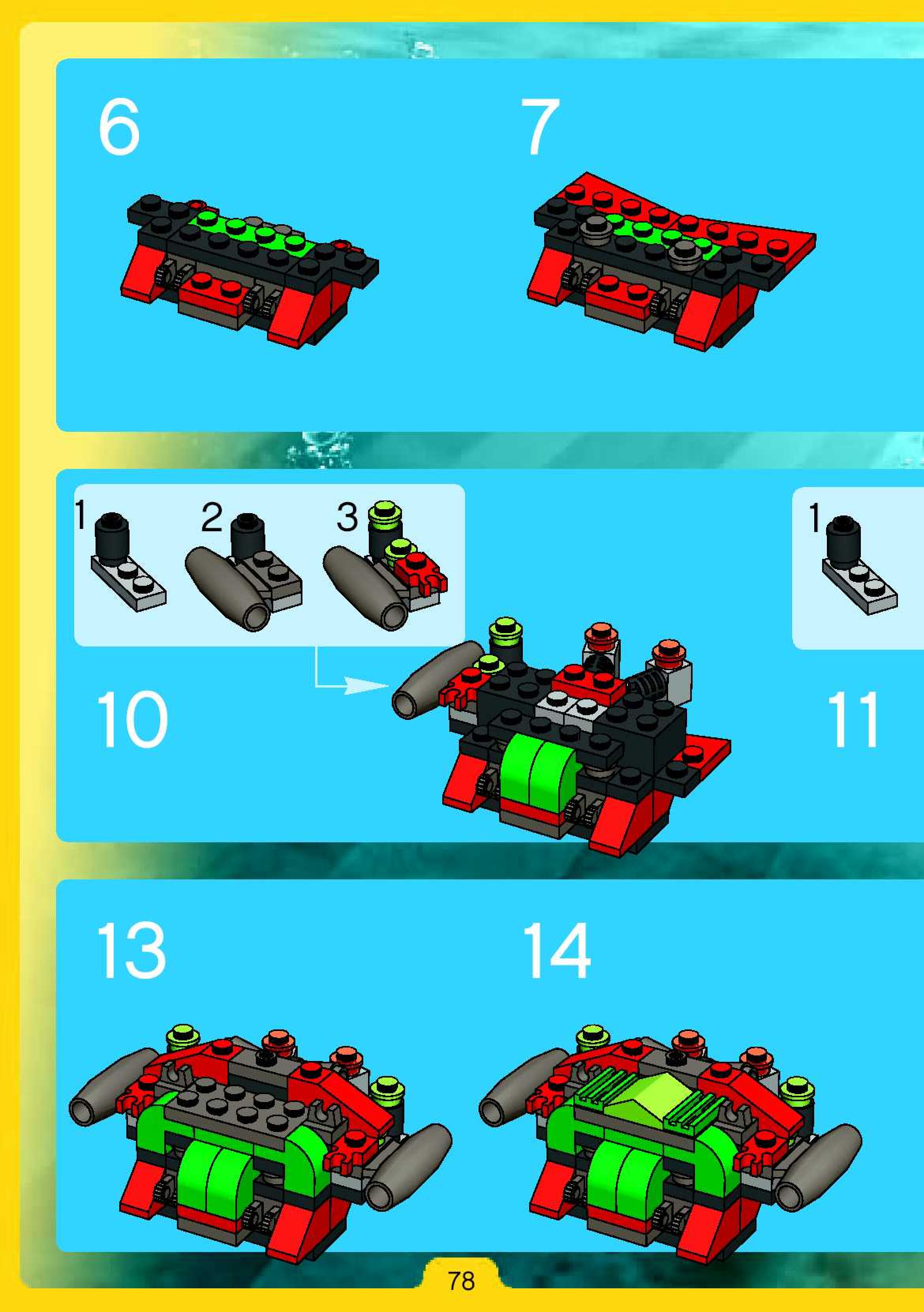 The assembly guide is prepared in a very understandable way for children and adult LEGO enthusiasts. A total of 180 picture galleries are shown, explaining the step-by-step construction stages for 2 different structures.