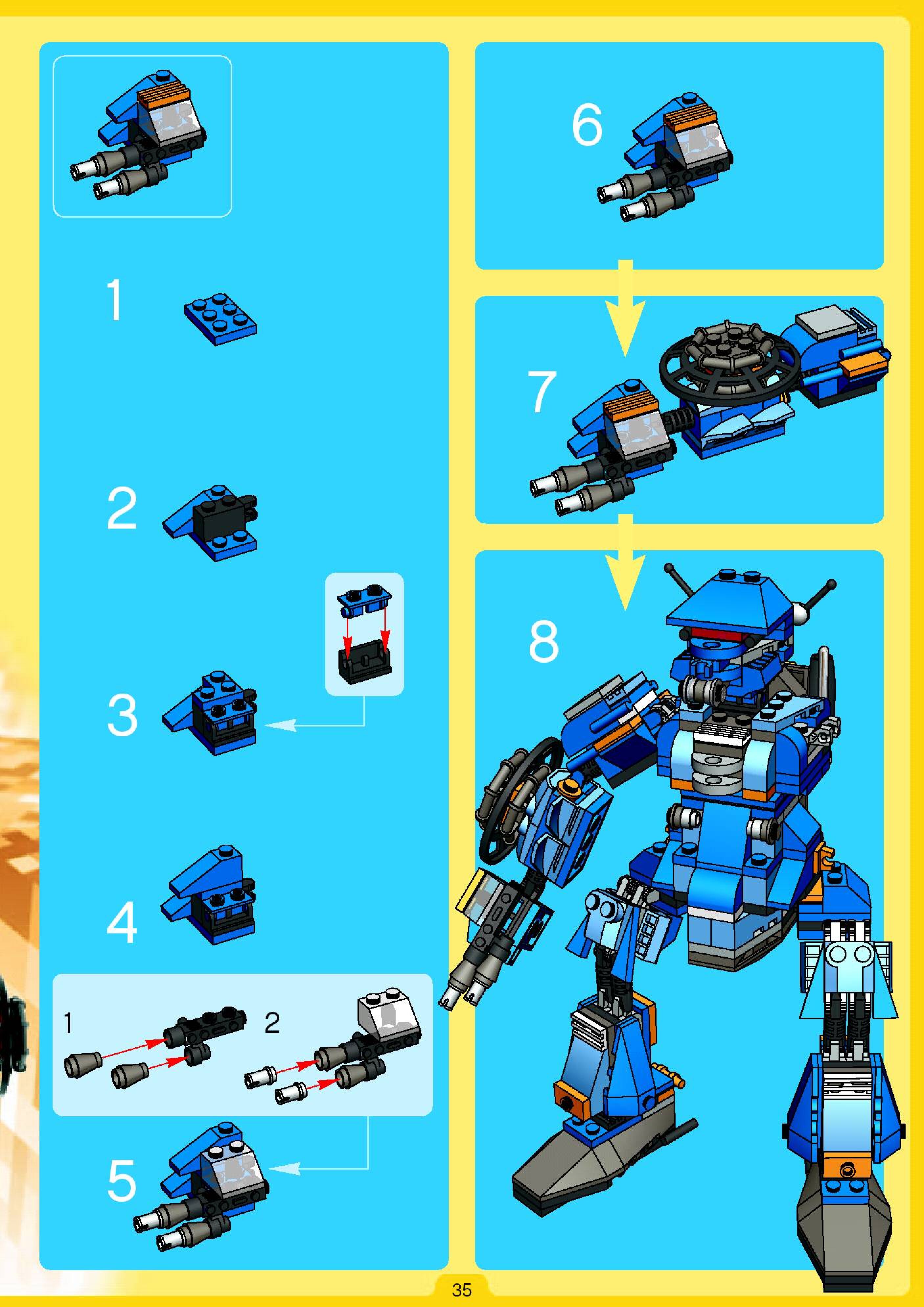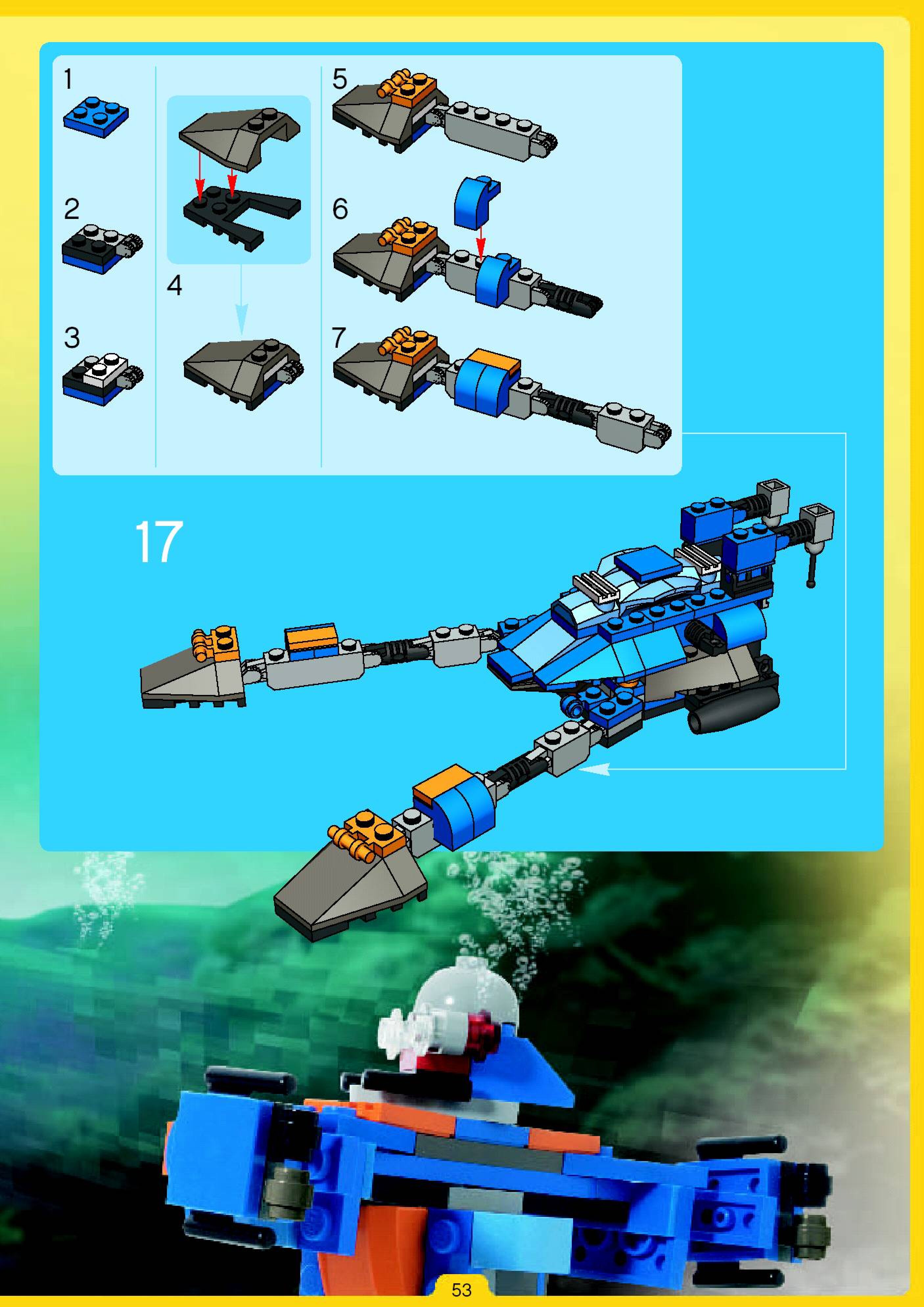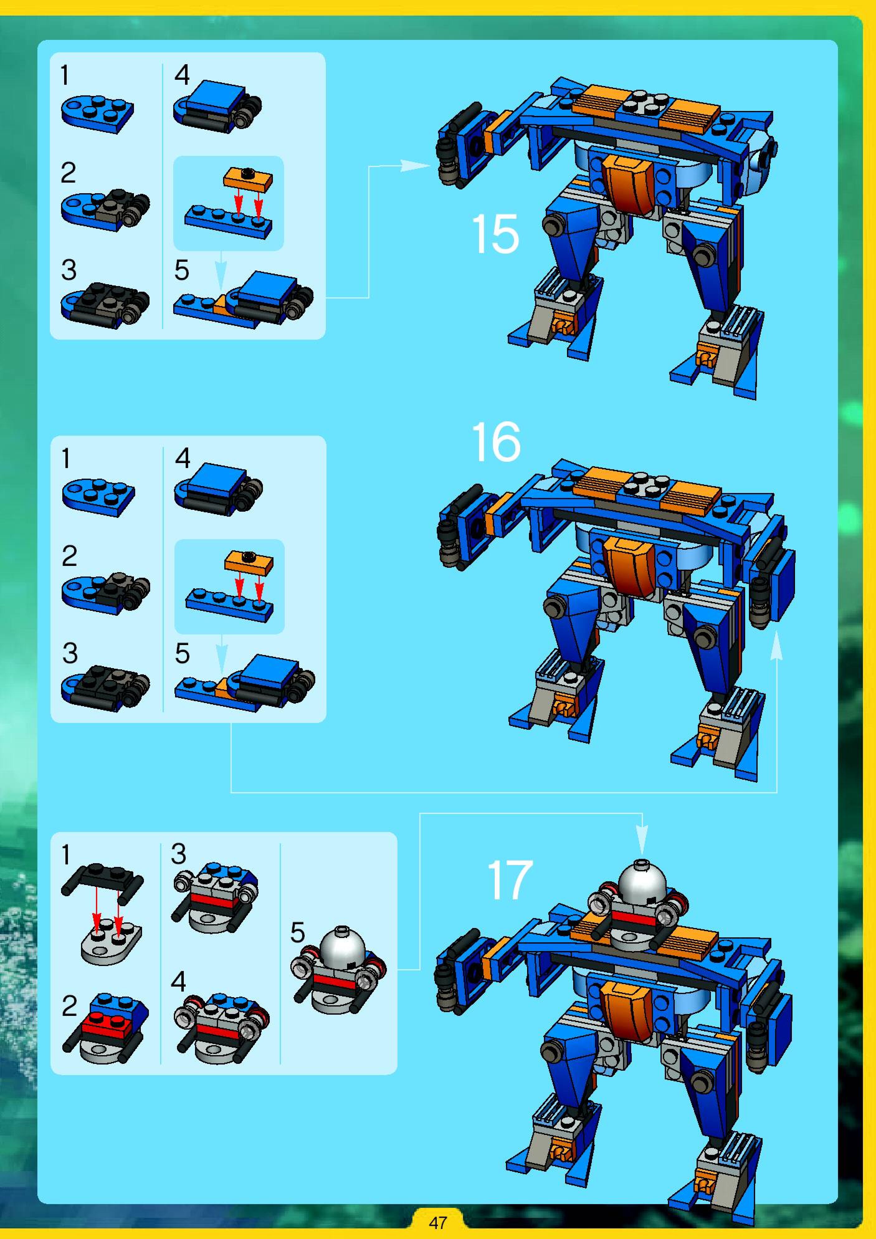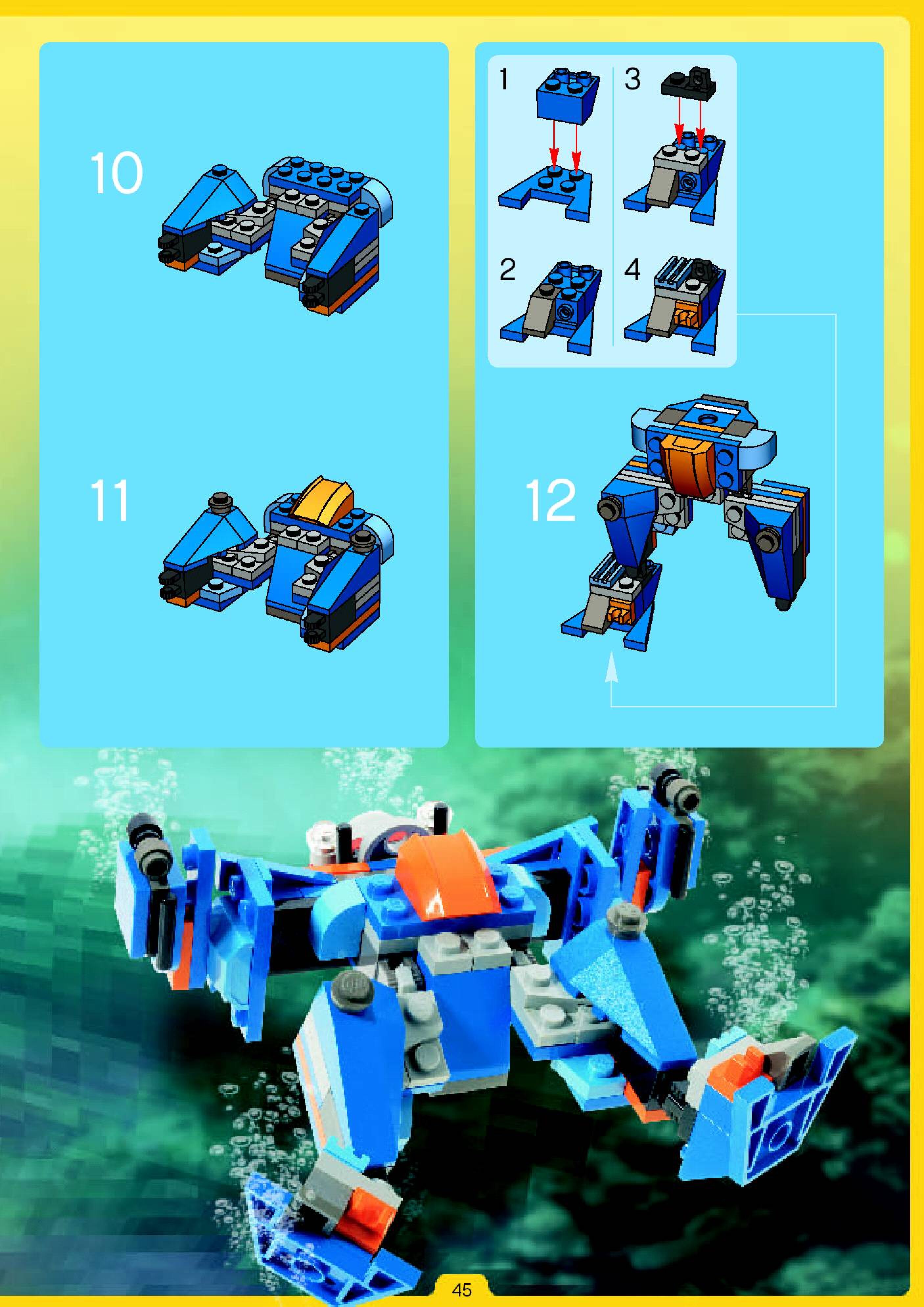 The assembly guide is prepared in a very understandable way for children and adult LEGO enthusiasts. A total of 180 picture galleries are shown, explaining the step-by-step construction stages for 2 different structures.