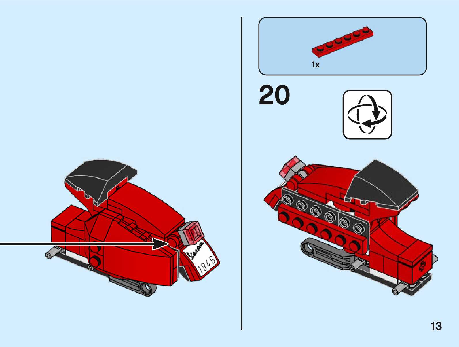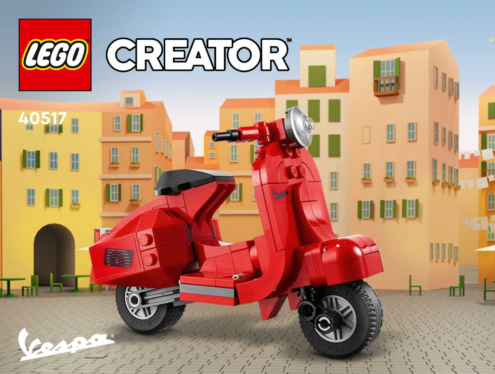 This page shares information about LEGO Vespa manual, LEGO 40517 PDF instructions, LEGO Vespa building guide online, How to build Vespa LEGO.