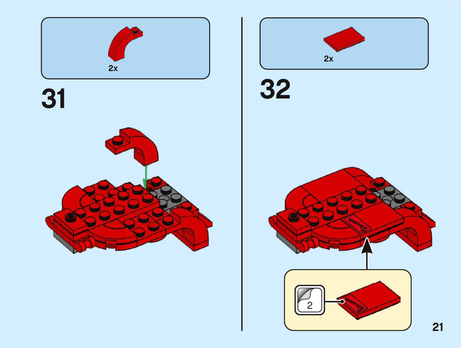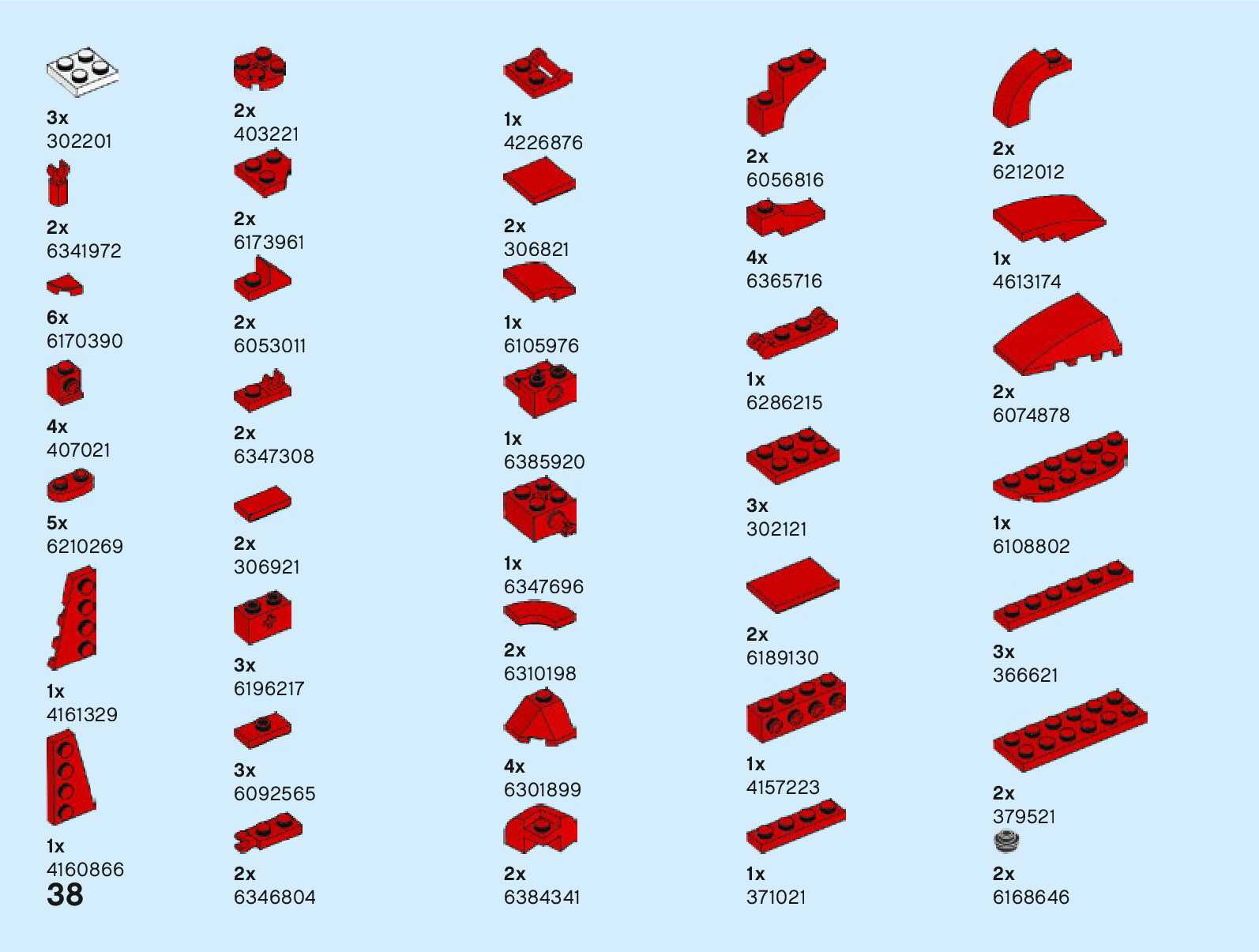 The assembly guide is prepared in a very understandable way for children and adult LEGO enthusiasts. A total of 40 picture galleries are shown, explaining the step-by-step construction stages for 1 different structures.