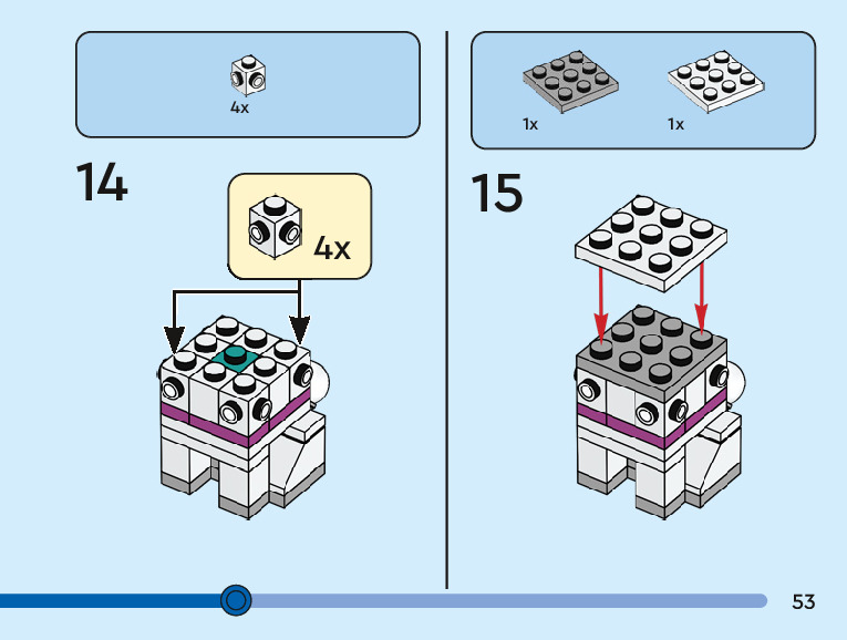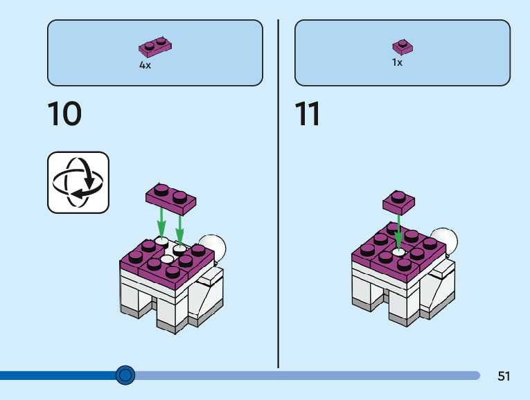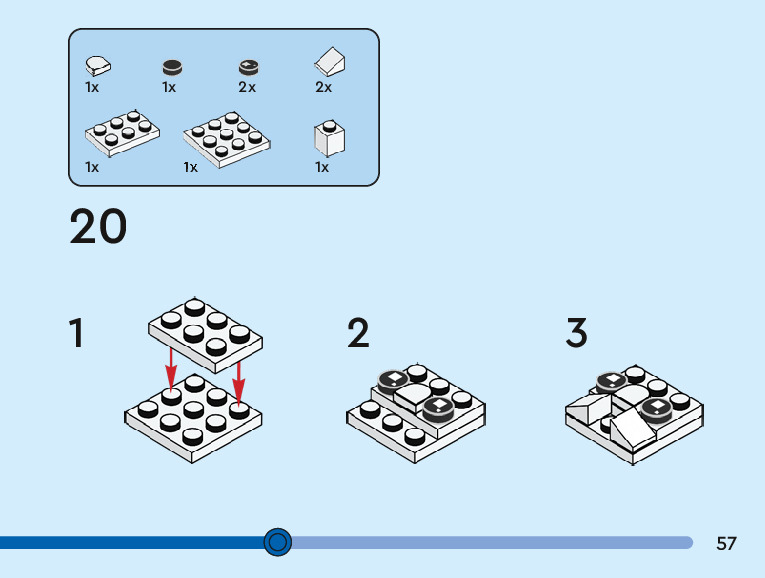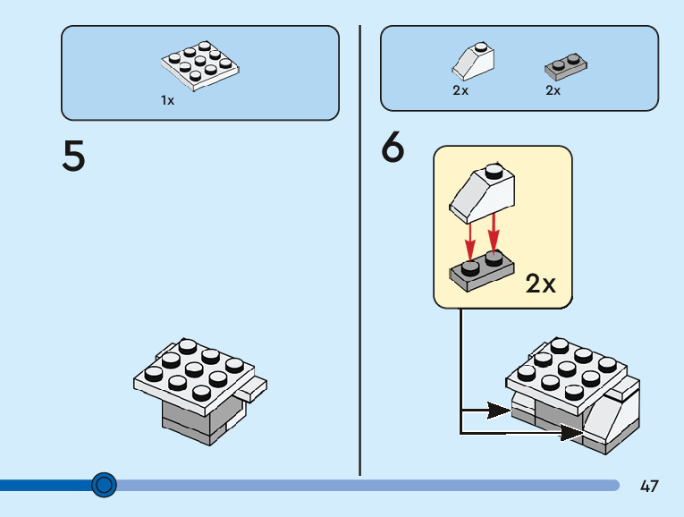 The assembly guide is prepared in a very understandable way for children and adult LEGO enthusiasts. A total of 88 picture galleries are shown, explaining the step-by-step construction stages for 1 different structures.