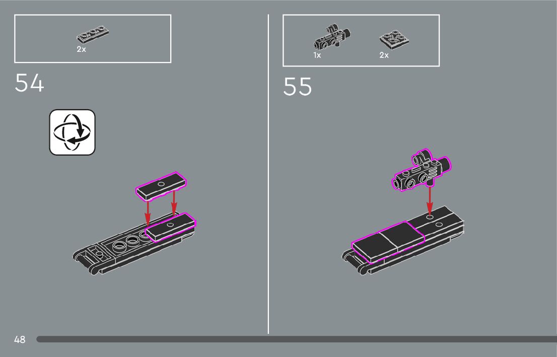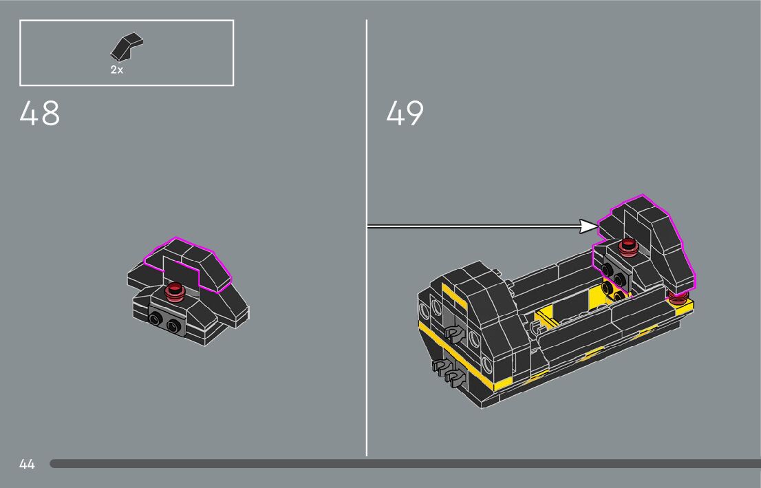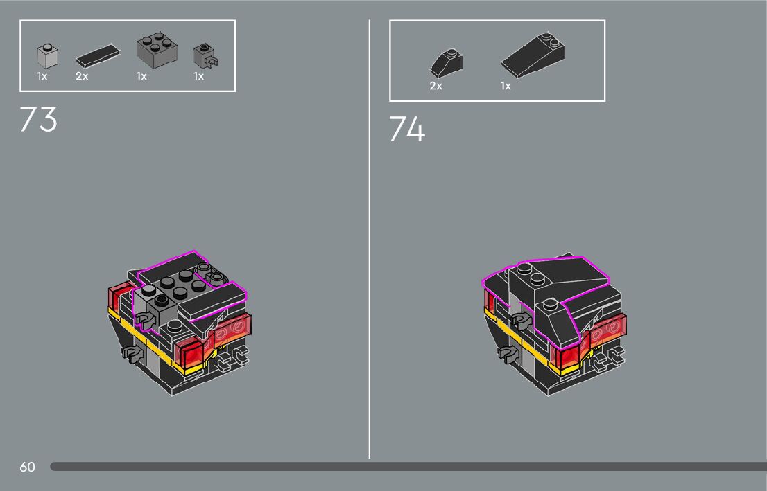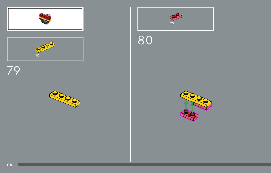 The assembly guide is prepared in a very understandable way for children and adult LEGO enthusiasts. A total of 76 picture galleries are shown, explaining the step-by-step construction stages for 1 different structures.