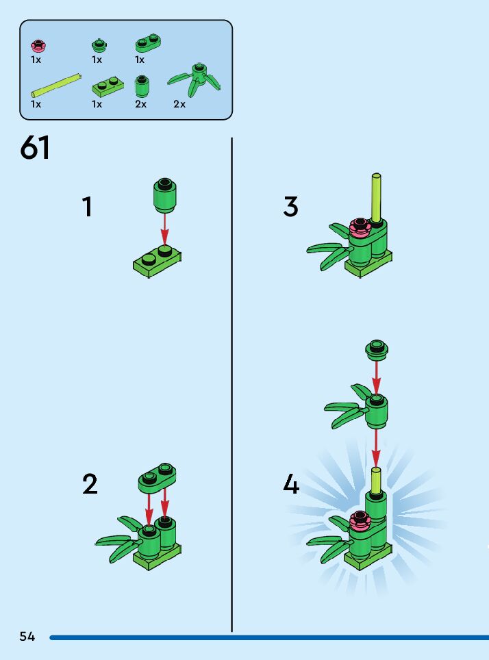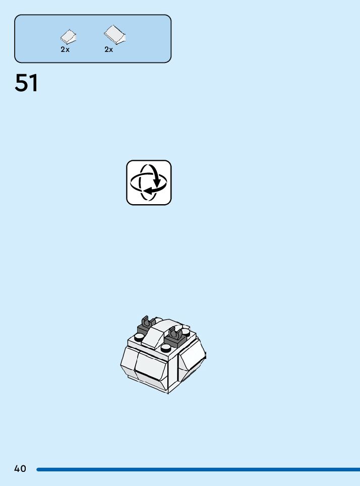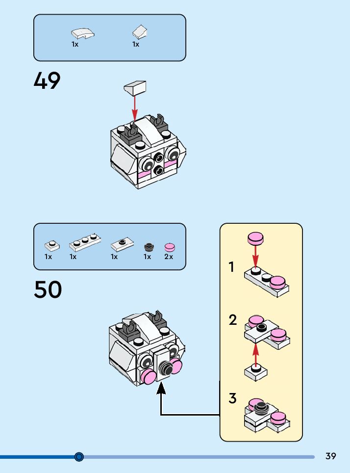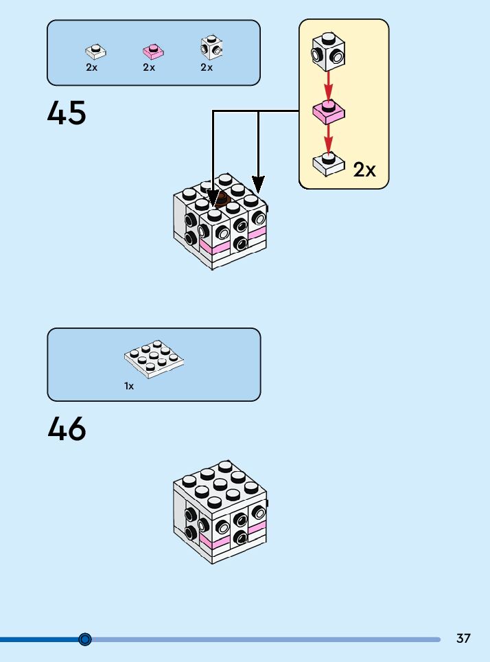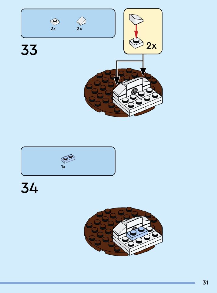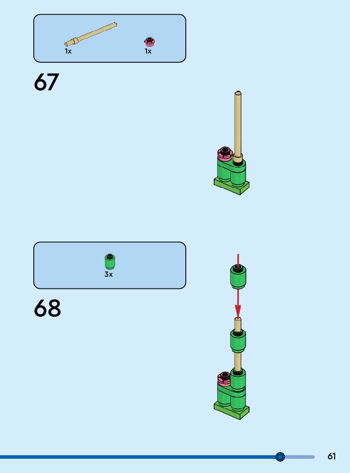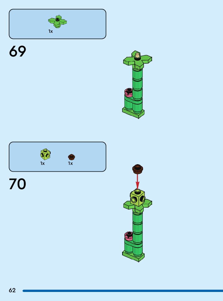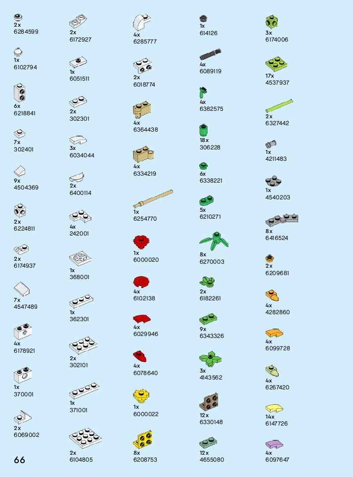 The assembly guide is prepared in a very understandable way for children and adult LEGO enthusiasts. A total of 68 picture galleries are shown, explaining the step-by-step construction stages for 1 different structures.