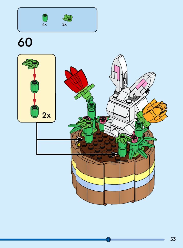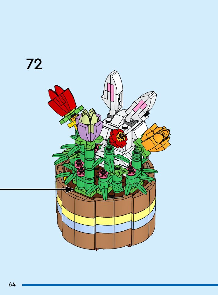 On this page you can find the original construction manual for the LEGO 40587 set. With the assembly manual you can easily learn how to build the 40587 Easter Basket step by step. The set was released in 2023.