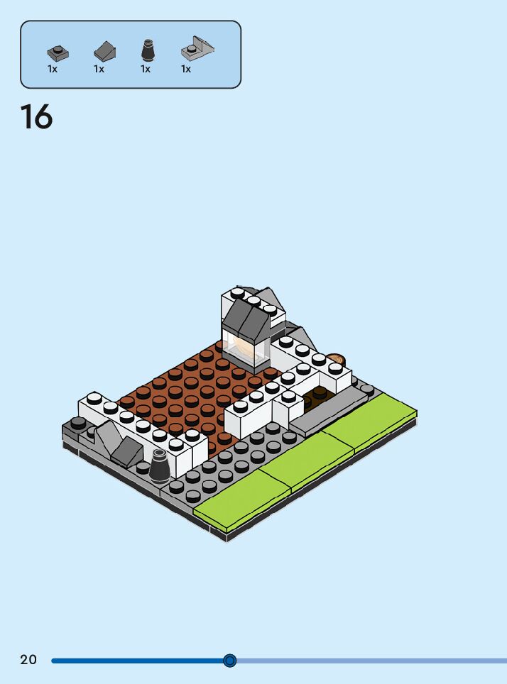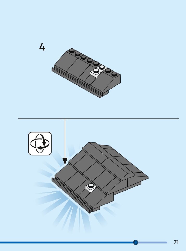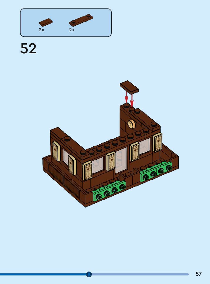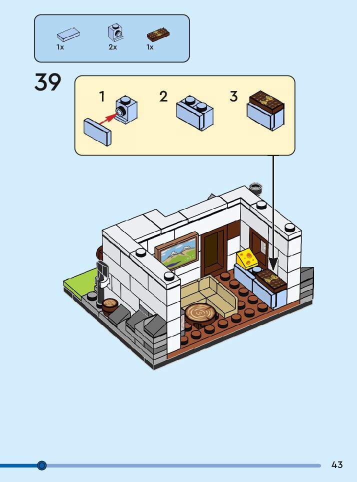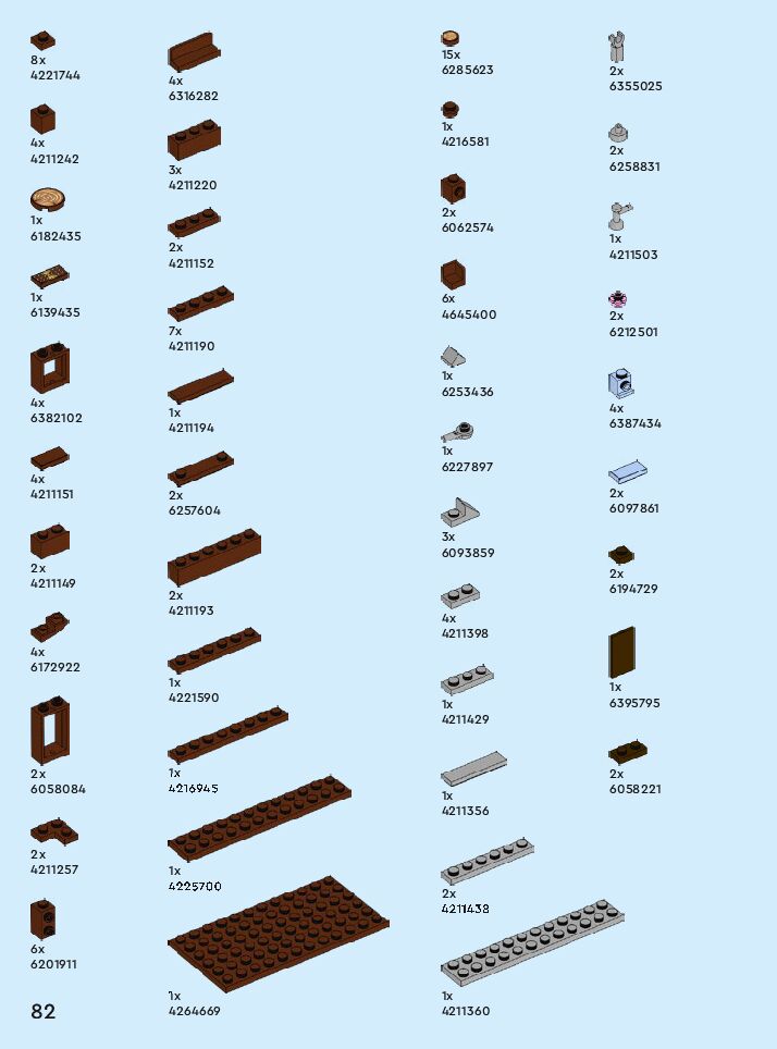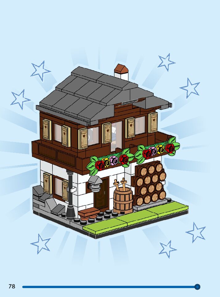 The assembly guide is prepared in a very understandable way for children and adult LEGO enthusiasts. A total of 84 picture galleries are shown, explaining the step-by-step construction stages for 1 different structures.