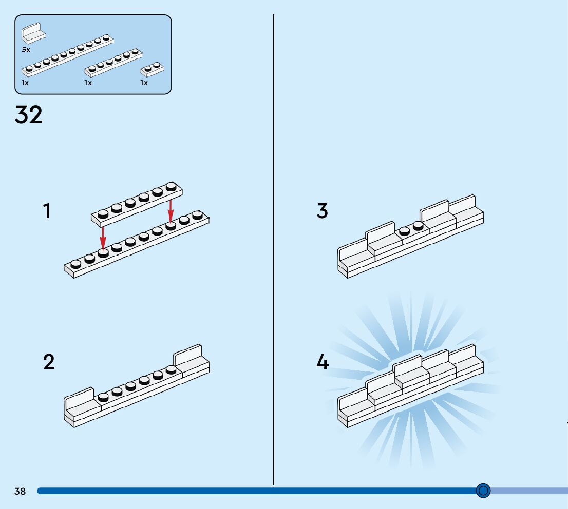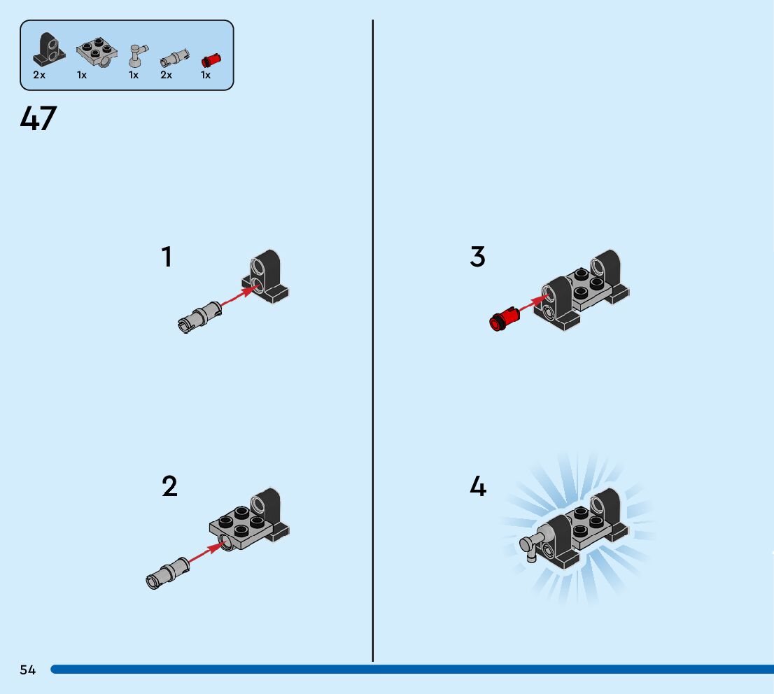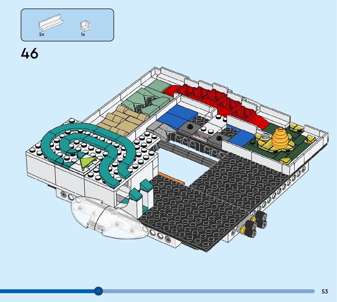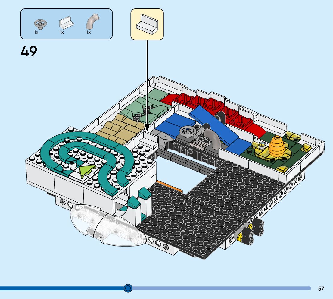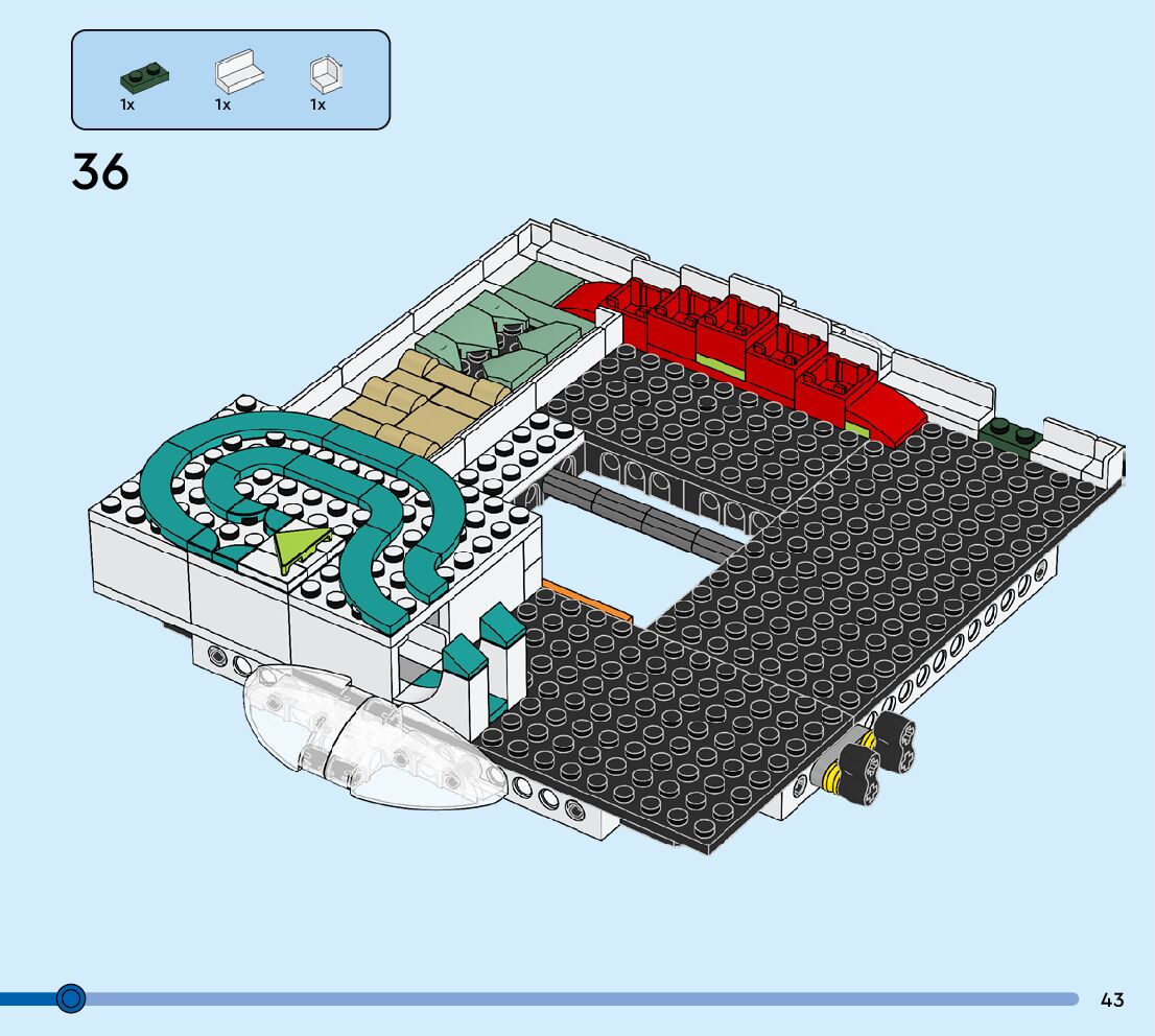 The assembly guide is prepared in a very understandable way for children and adult LEGO enthusiasts. A total of 84 picture galleries are shown, explaining the step-by-step construction stages for 1 different structures.
