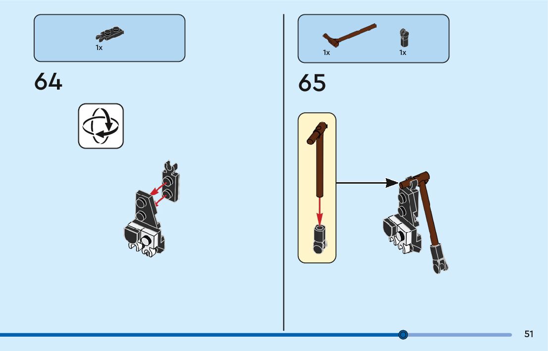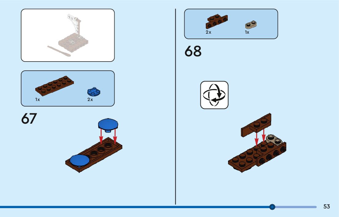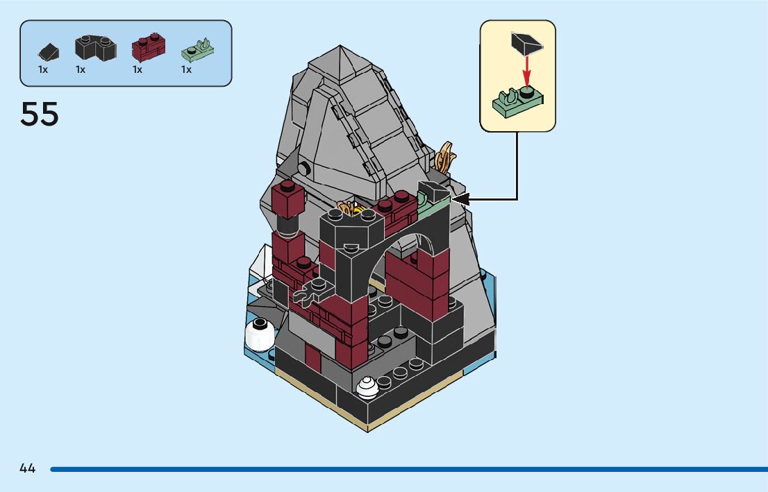 The assembly guide is prepared in a very understandable way for children and adult LEGO enthusiasts. A total of 60 picture galleries are shown, explaining the step-by-step construction stages for 1 different structures.