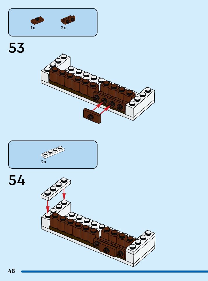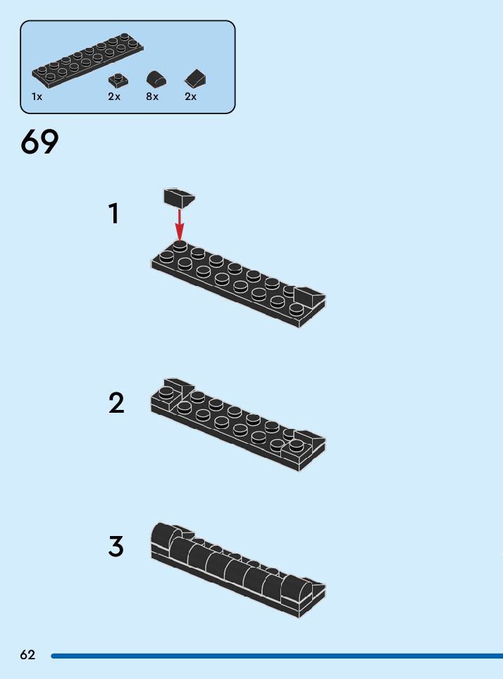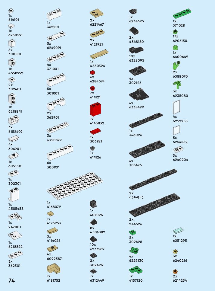 The assembly guide is prepared in a very understandable way for children and adult LEGO enthusiasts. A total of 76 picture galleries are shown, explaining the step-by-step construction stages for 1 different structures.