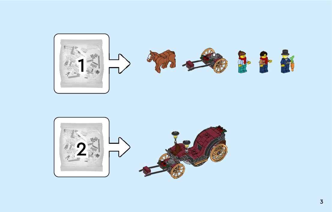 On this page you can find the original construction manual for the LEGO 40603 set. With the assembly manual you can easily learn how to build the 40603 Wintertime Carriage Ride step by step. The set was released in 2023.