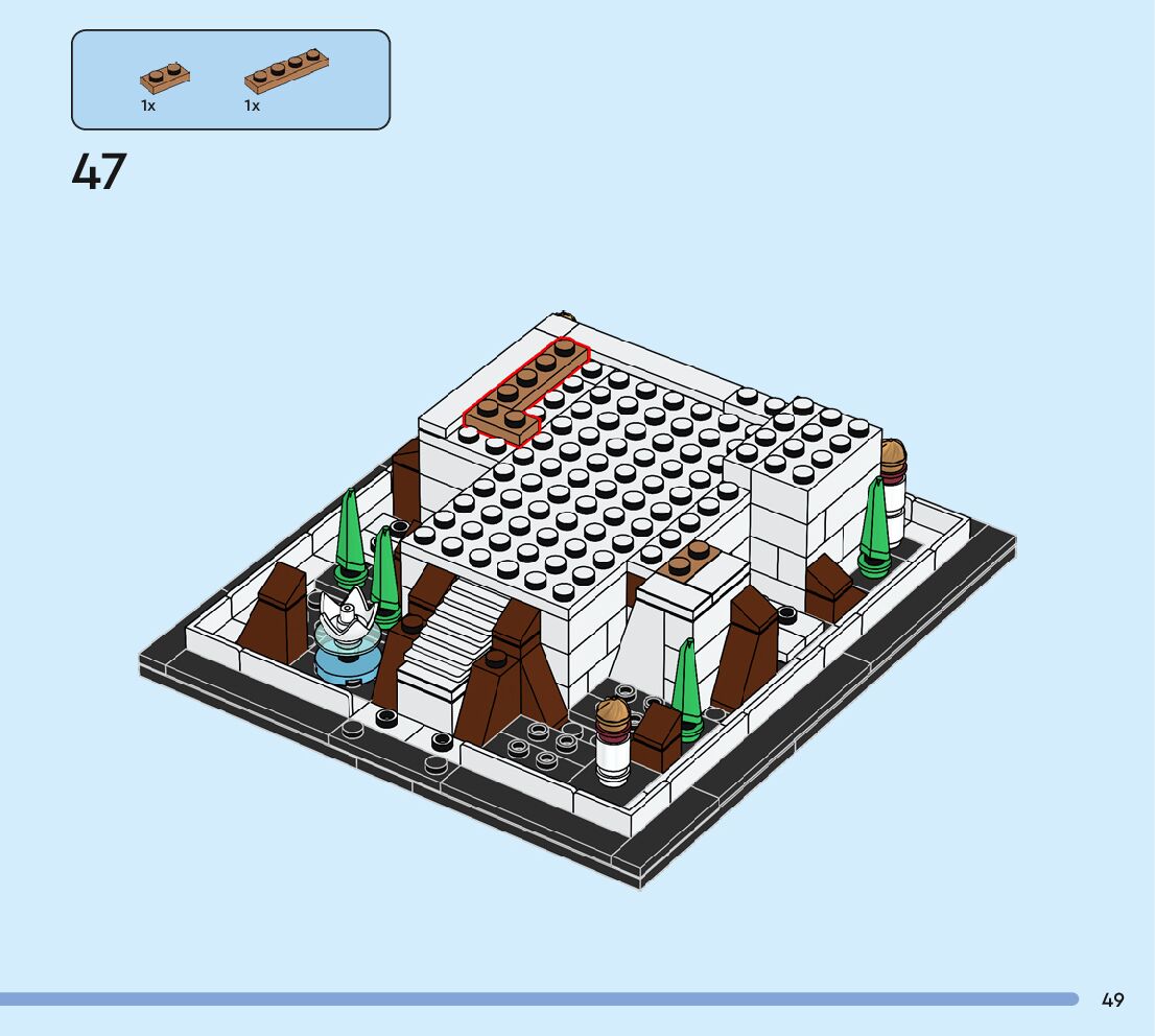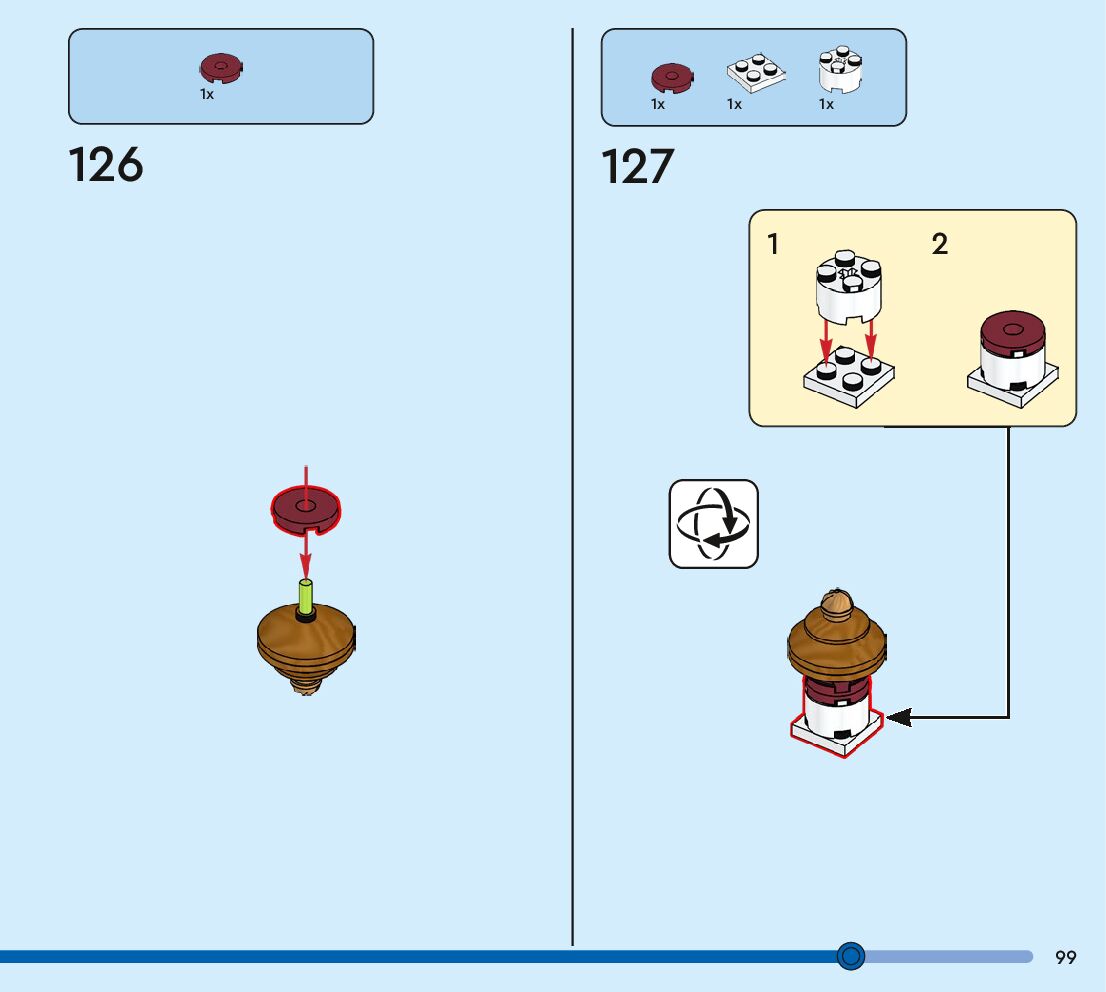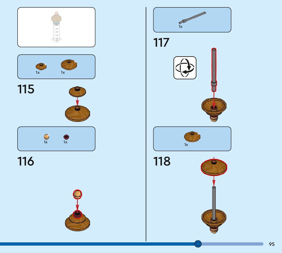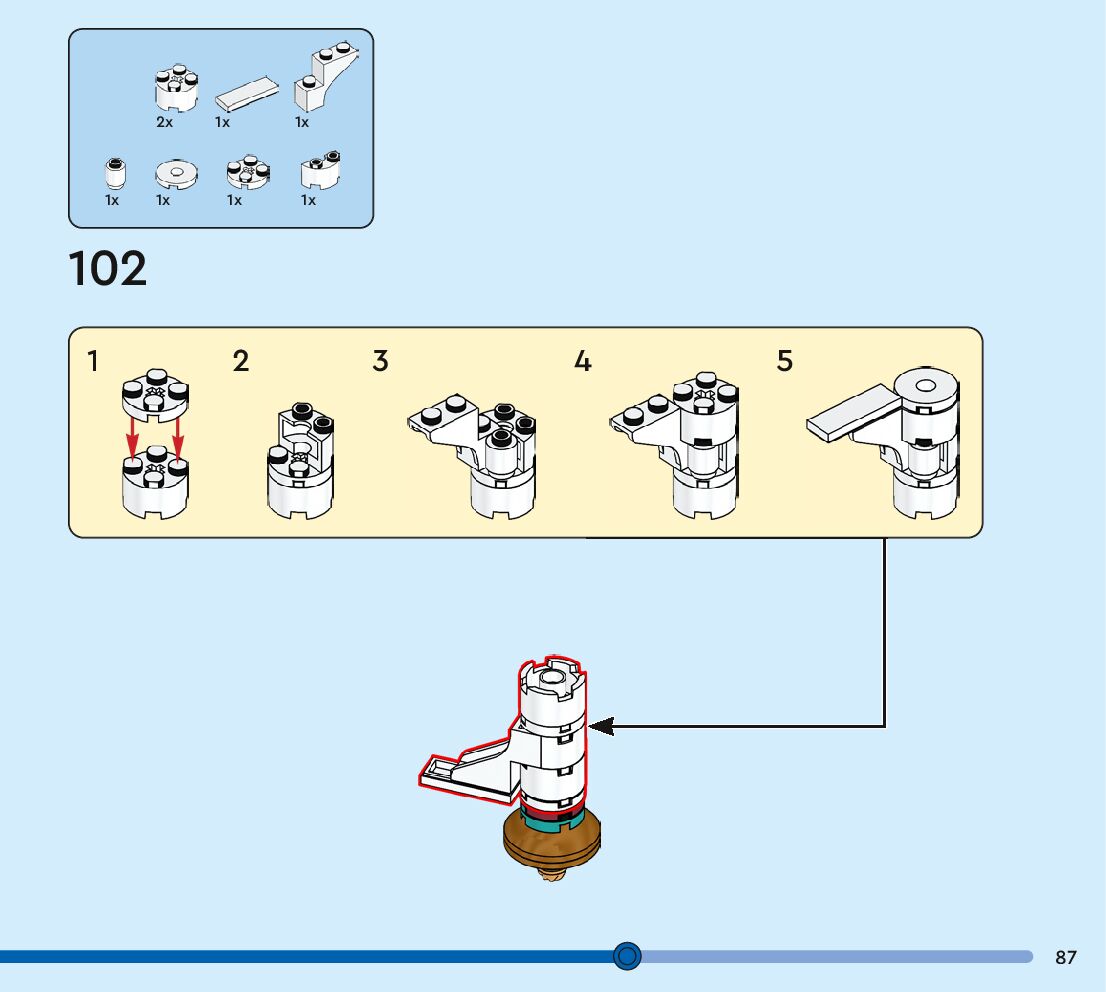 The assembly guide is prepared in a very understandable way for children and adult LEGO enthusiasts. A total of 112 picture galleries are shown, explaining the step-by-step construction stages for 1 different structures.